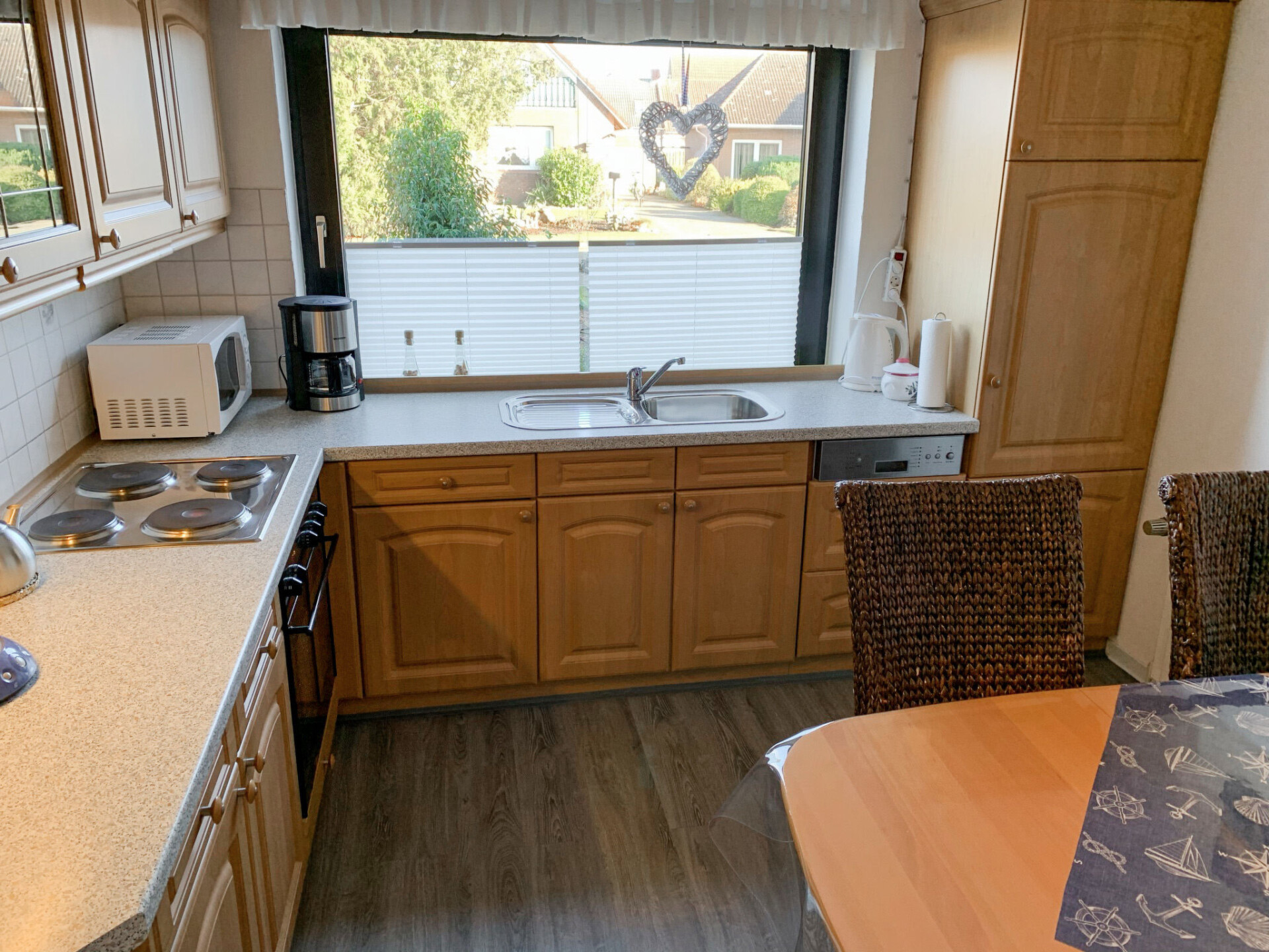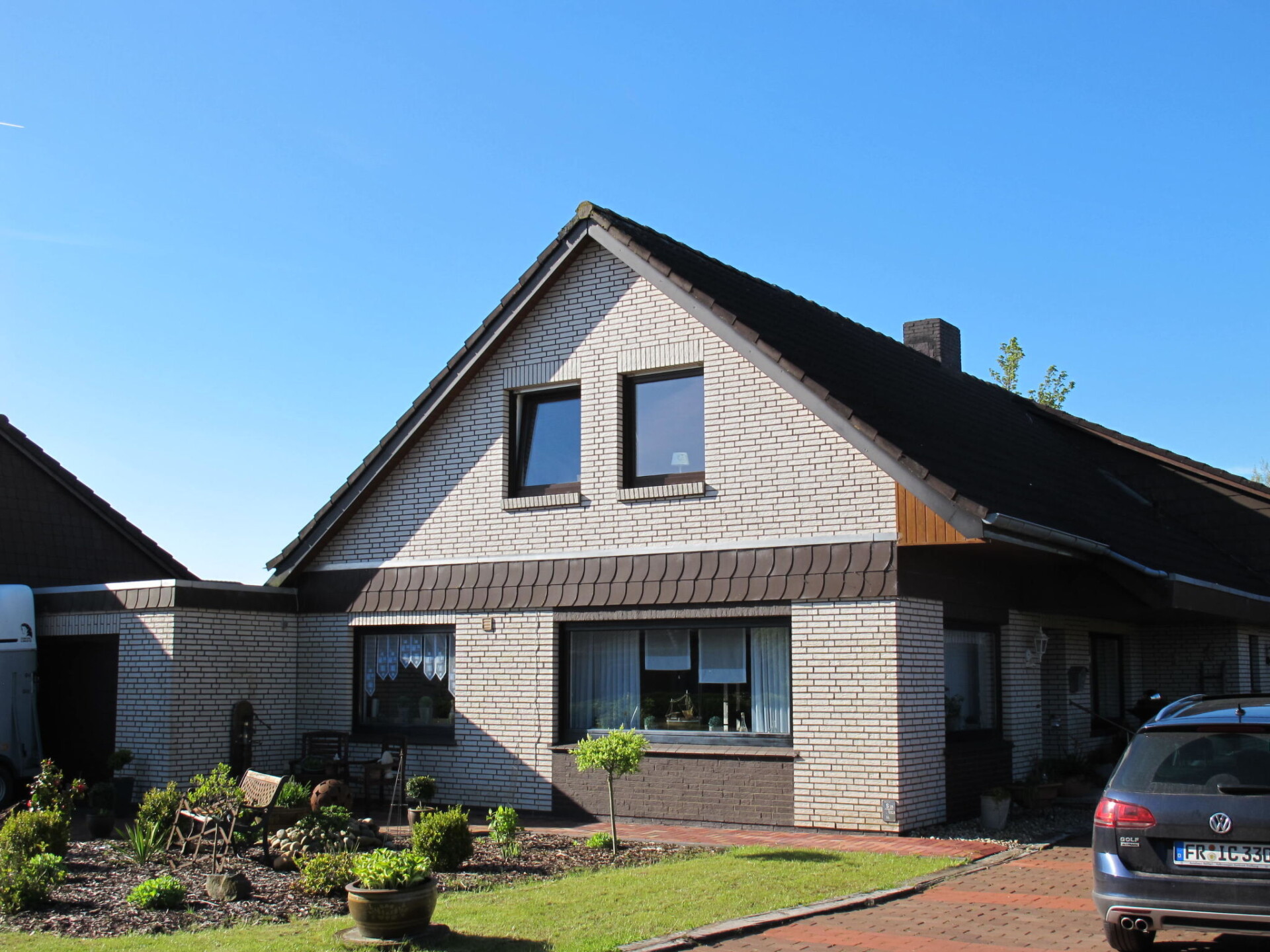 Huis met 2 woningen. In de plaats, 500 m van het centrum van Ditzum, 3 km van zee, 650 m van het kanaal. Voor alleengebruik: kleine tuin met gazon. In het huis: centrale verwarming. Parkeerplaats (voor 2 auto's) bij het huis. Winkel 500 m, restaurant 500 m, bakkerij, café, bushalte 350 m, treinstation "Leer" 22 km, veerboot "Ditzum" 750 m, zandstrand "Norddeich" 88 km, openluchtzwembad 20 km, overdekt zwembad 23 km.