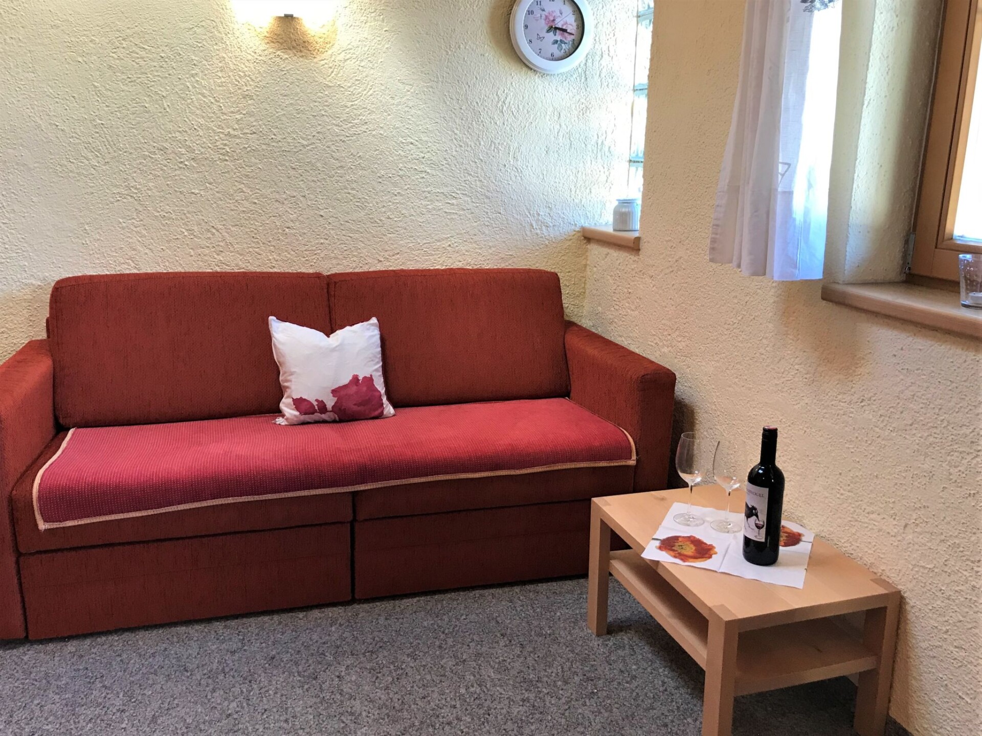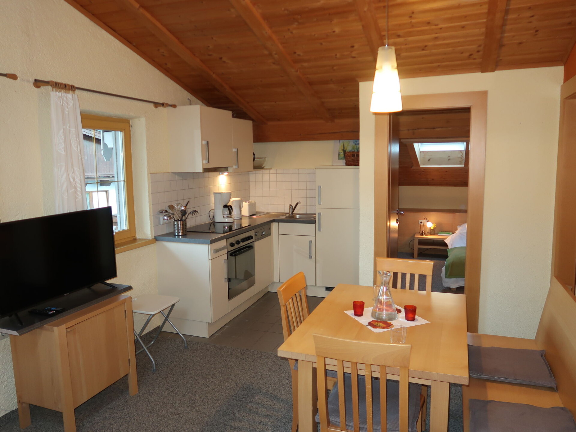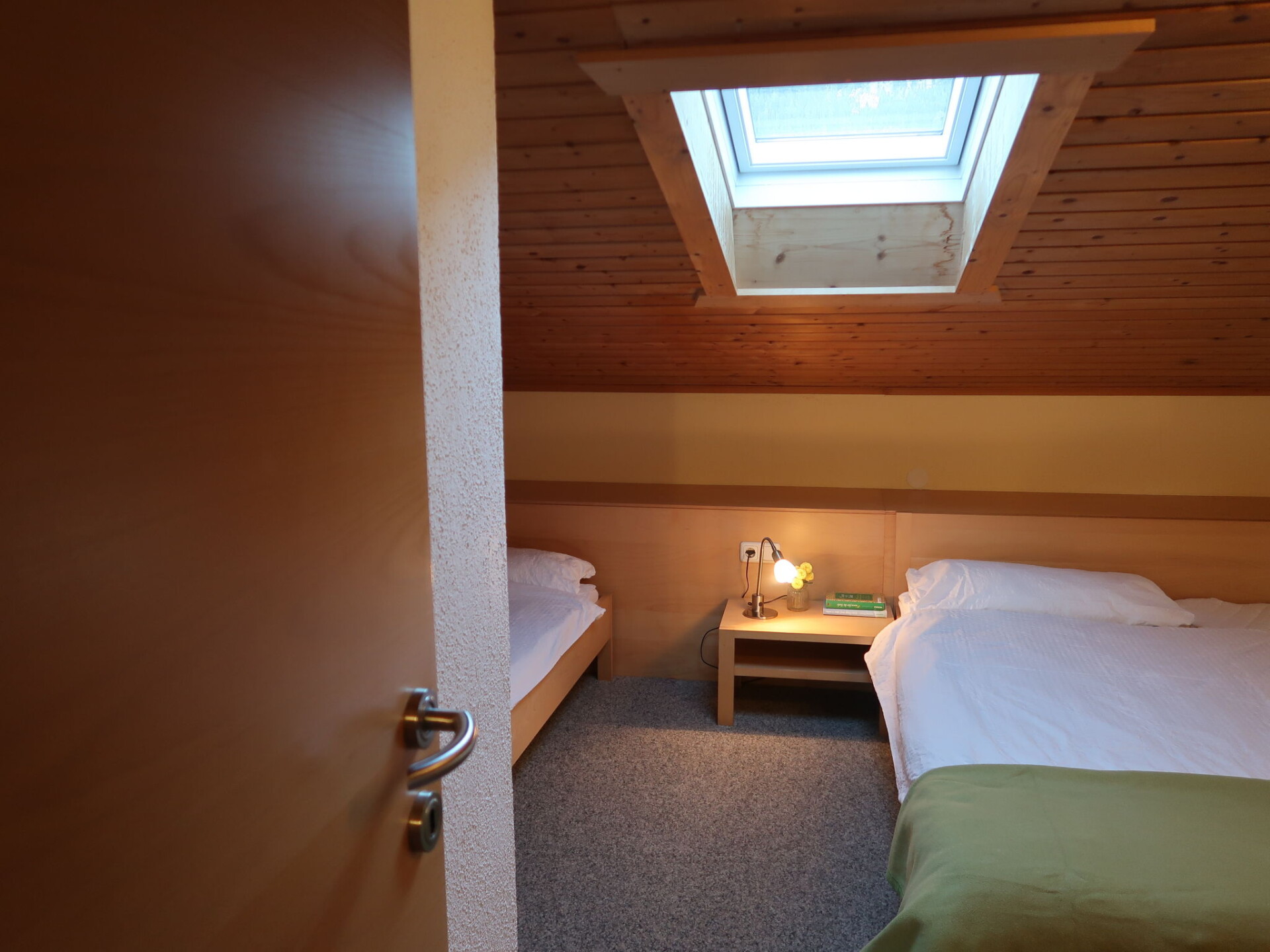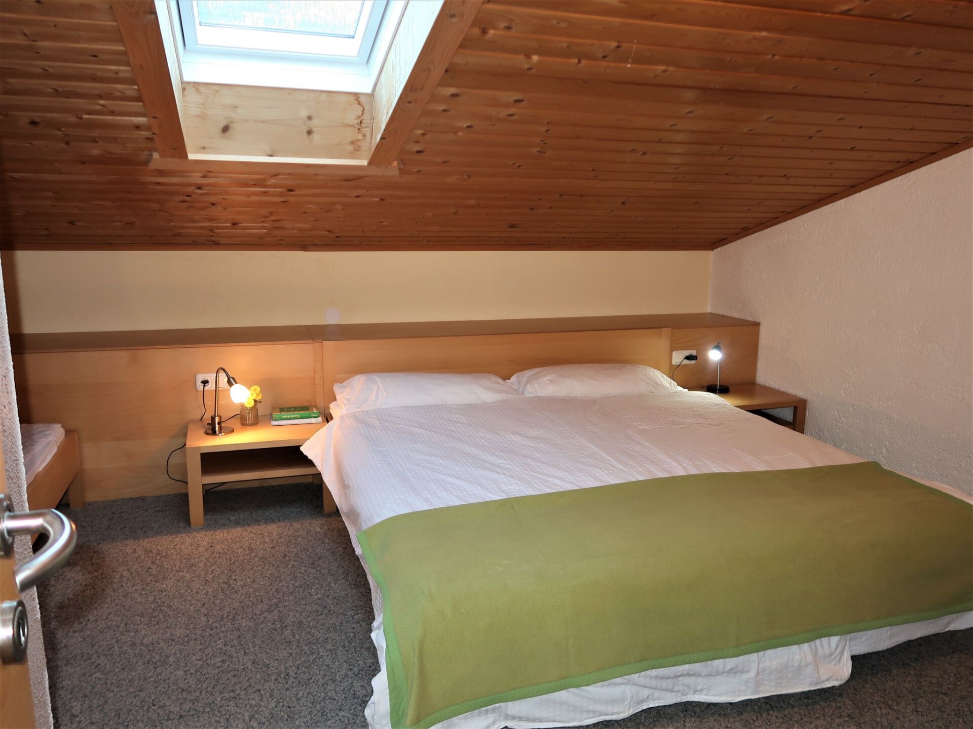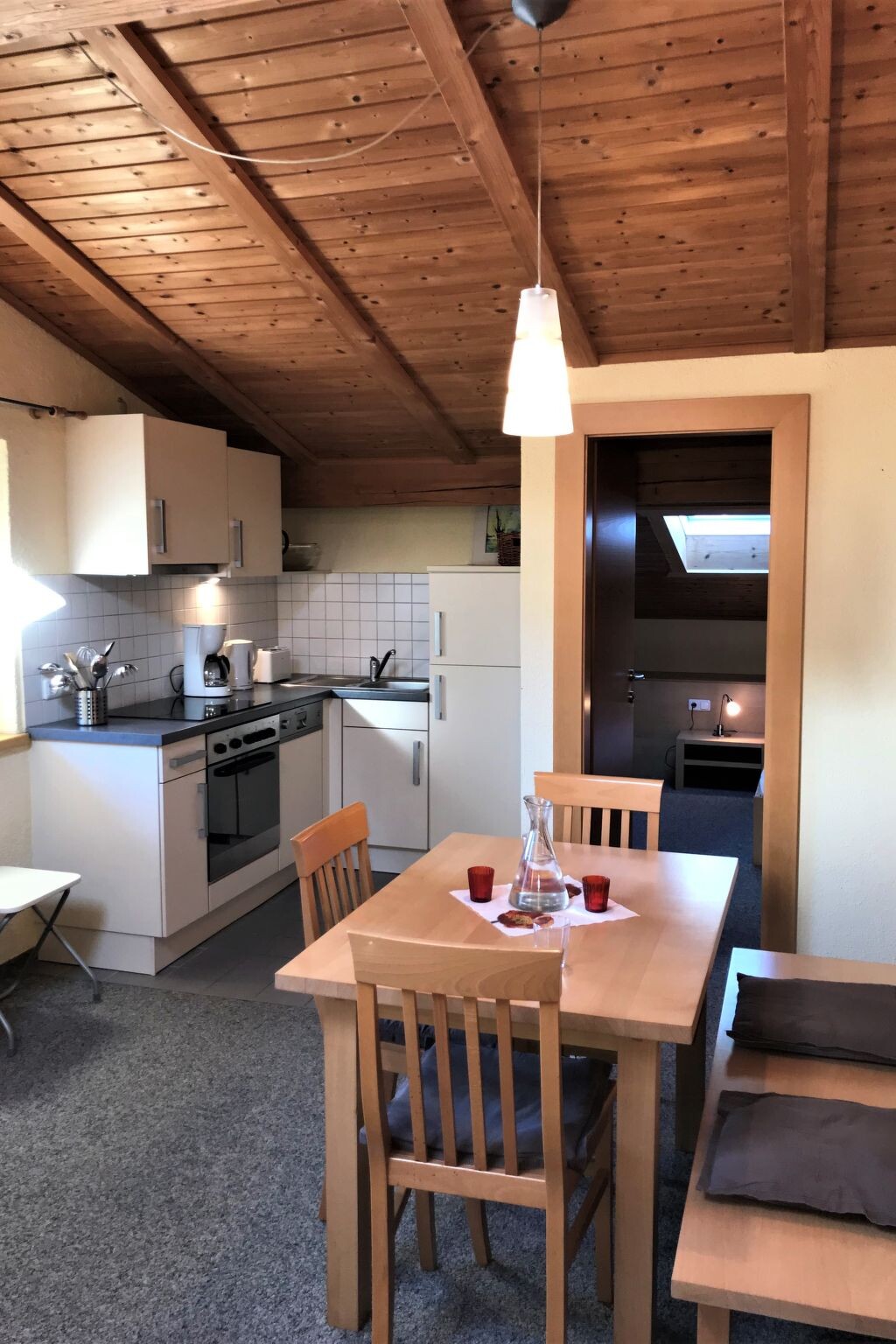 "Christlum", appartement 2-kamers 51 m2, op de bovenste verdieping. Gedeeltelijk afgeschuinde daken, met veel hout ingericht: woon-/slaapkamer met 1 divanbed (140 cm), eettafel en Sat-TV (Flatscreen TV). 1 kamer met 1 bed en 1 2-pers bed. Open keuken (oven, afwasmachine, 4 keramische glas kookplaten, waterkoker, elektrische koffiemachine). Badkamer, aparte WC. Verwarming. Vloerbedekking. Mooi uitzicht op de bergen en het landschap. Ter beschikking: Internet (WiFi, gratis). Parkeerplaats (overdekt, 1 Auto). Niet rokers woning.