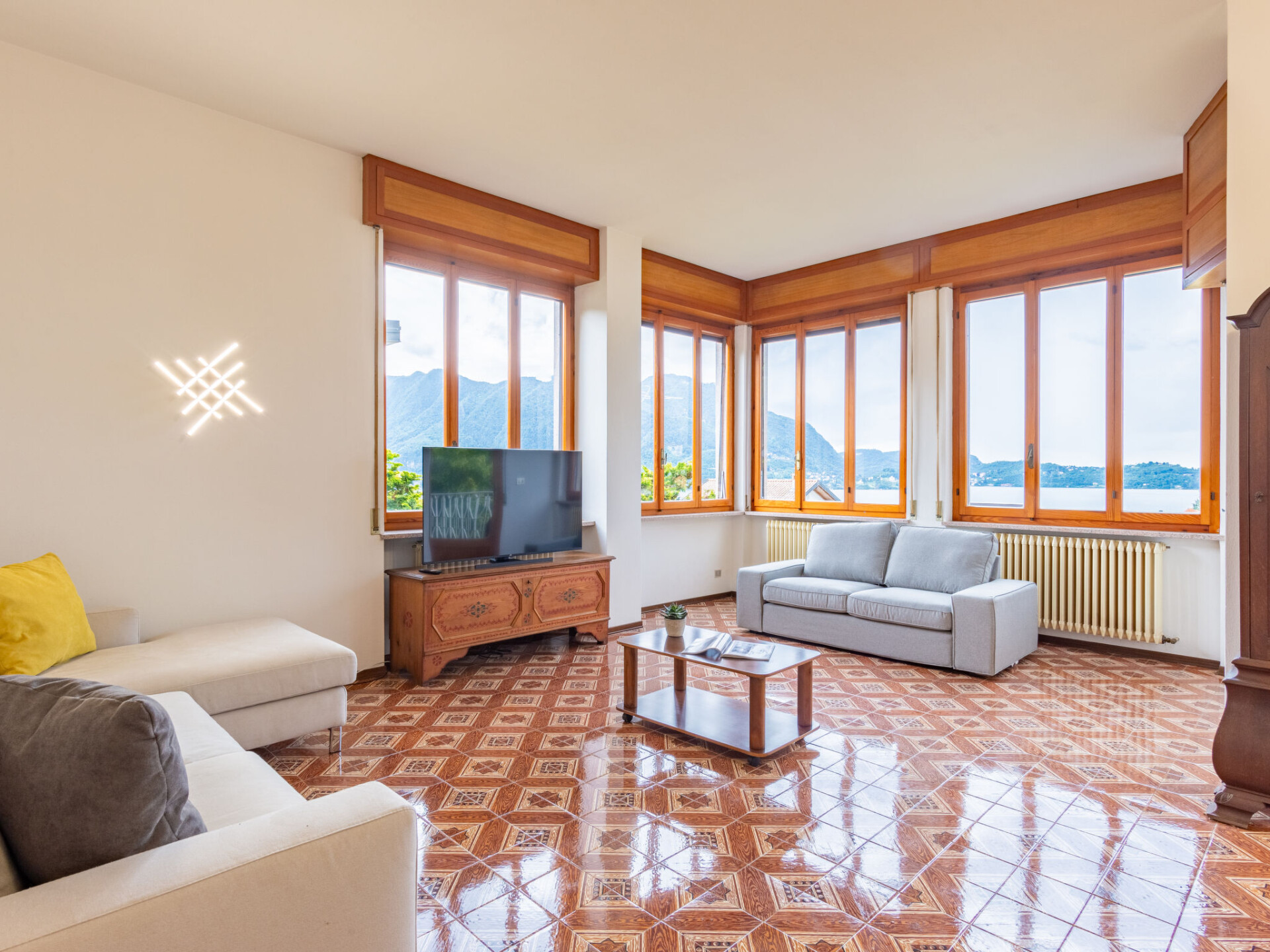 Huis 8-kamers 240 m2 op de 1e verdieping. Doelmatig ingericht: groot woon-/eetkamer met TV. Uitgang naar het balkon. 2 2-pers. kamers. 1 kamer met 1 bed en 1 uitschuifbaar bed. Keuken (4-pits kookplaat, oven, afwasmachine, magnetron, diepvriezer, elektrische koffiemachine). Bad/bidet/WC, douche/bidet/WC. Bovenverdieping: groot woonkamer met TV. Uitgang naar het balkon. 2 2-pers. kamers. 1 kamer met 1 bed. Keuken (4-pits kookplaat, waterkoker, elektrische koffiemachine). Bad/bidet/WC, douche/bidet/WC. Geen verwarmingsmogelijkheid. 2 balkons. Balkonmeubilair. Mooi panoramazicht op het meer. Ter beschikking: wasmachine, haardroger. Internet (WiFi, gratis). Maximaal 2 huisdieren/honden toegestaan. IT103072C2EUU2BNMU
