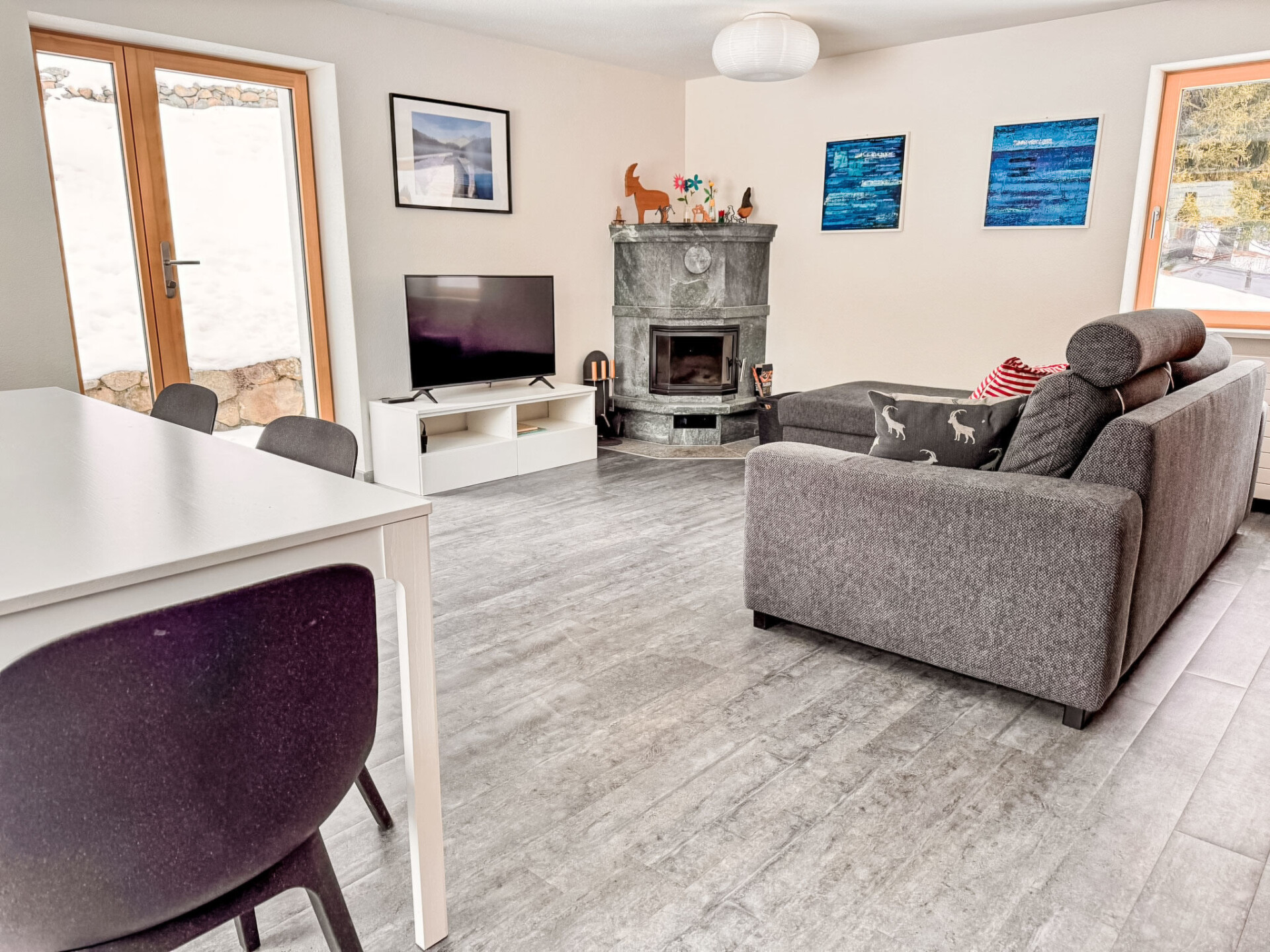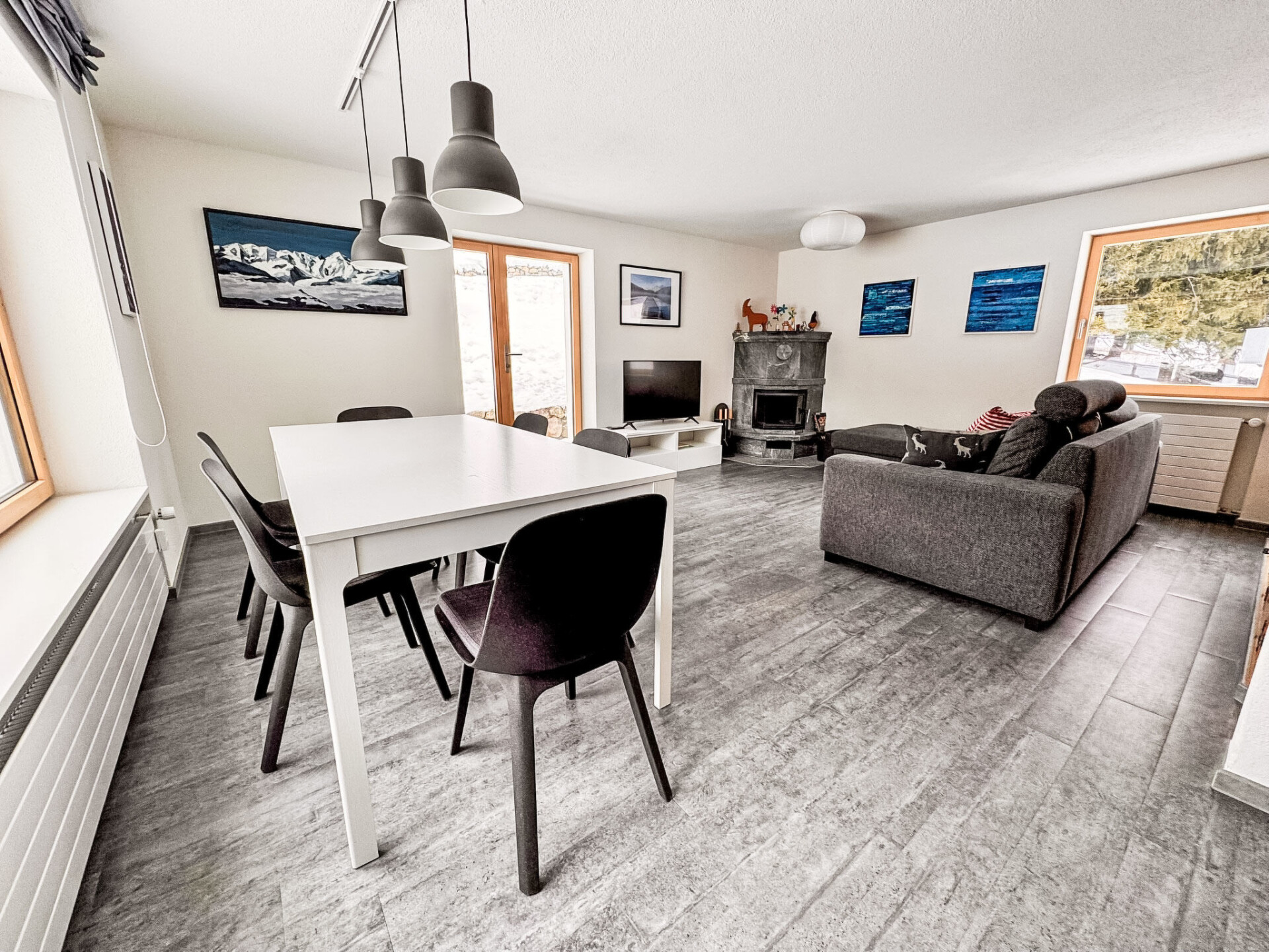 "Clavadels Pontresina", appartement 4-kamers 128 m2 op de 2e verdieping. Modern en stijlvol ingericht: woonkamer met TV. 1 kamer met 1 2-pers bed. 1 kamer met 1 2-pers bed. 1 kamer met 1 x 2 stapelbedden. Open keuken (oven, afwasmachine, 4 inductiekookplaten, broodrooster, magnetron, diepvriezer, elektrische koffiemachine) met eettafel. Douche/WC, aparte WC. Vloerverwarming. Terras 20 m2. Zijdelings uitzicht op de bergen. Ter beschikking: wasmachine, droger, haardroger. Internet (WiFi, gratis). Niet rokers woning. Maximaal 1 huisdier/hond toegestaan. Brandblusser.