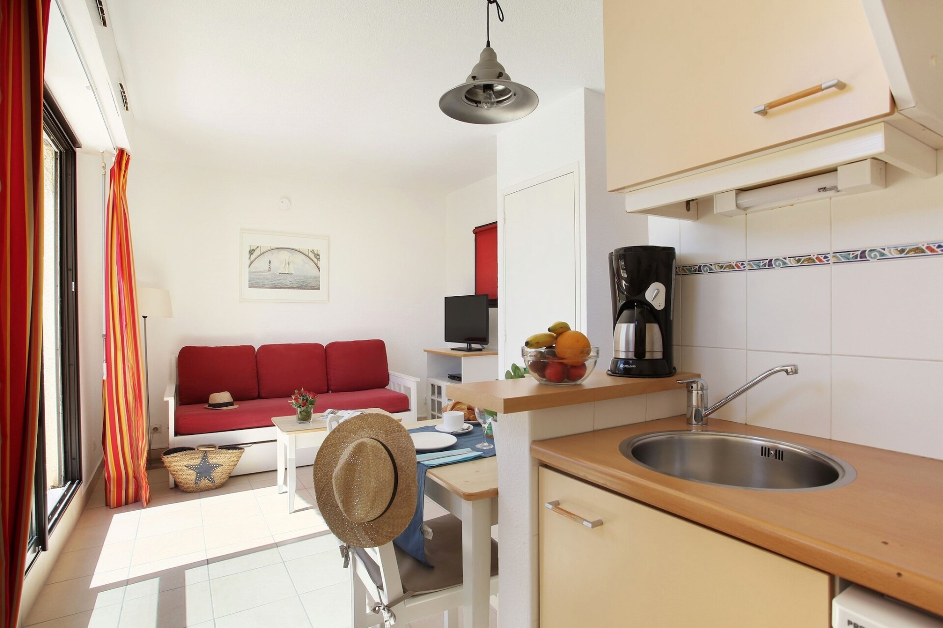 Kom tot rust in dit uitnodigende appartement, verscholen in de serene, autovrije Club Saint-Loup – een vredig domein omringd door torenhoge pijnbomen in het prachtige Cap d'Agde. Of u nu met z'n tweeën, gezin of een kleine groep komt, deze lichte en stijlvolle ruimte biedt alles wat u nodig heeft voor een comfortabel verblijf. Geniet van een rustgevende nacht in de knusse slaapkamer met twee eenpersoonsbedden of strek u uit op de ruime tweepersoonsslaapbank in de woonkamer. De volledig uitgeruste keuken is voorzien van een keramische kookplaat, magnetron en vaatwasser voor uw gemak. Stap op uw eigen balkon of terras en geniet van de Provençaalse zon. Let op: huisdieren zijn niet toegestaan.