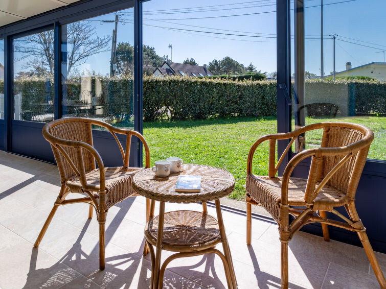 "Colibri", huis 3-kamers 70 m2. Doelmatig ingericht: woon-/eetkamer met veranda met open haard, eettafel en Sat-TV. Uitgang naar het terras. 1 kamer met 1 2-pers bed (140 cm, lengte 190 cm). 1 kamer met 2 bedden (90 cm, lengte 190 cm). Open keuken (1 kookplaat, oven, afwasmachine, 3 kookpitten (vlammen), broodrooster, waterkoker, magnetron, diepvriezer, elektrische koffiemachine) met kleine eettafel. Uitgang naar het terras. Badkamer, aparte WC. Elektrische verwarming. Terras. Terrasmeubelen, barbecue (verrijdbaar), ligstoelen (4), bergruimte. Ter beschikking: wasmachine, strijkijzer, kinderstoel, kinderbed, haardhout (gratis). Internet (Internet (WiFi), gratis). Garage (1 Auto). Rookvrij huis. Maximaal 1 huisdier/hond toegestaan.