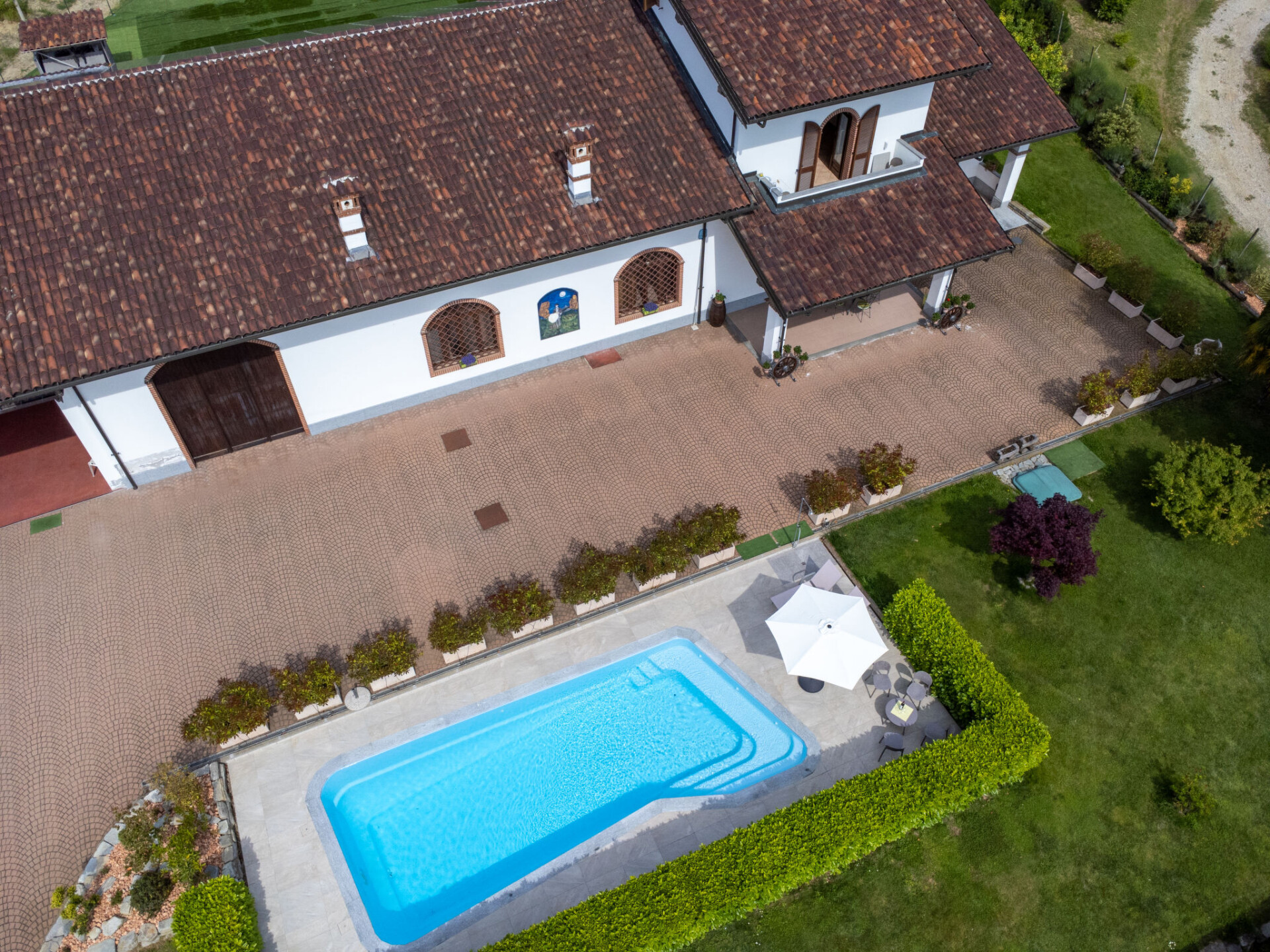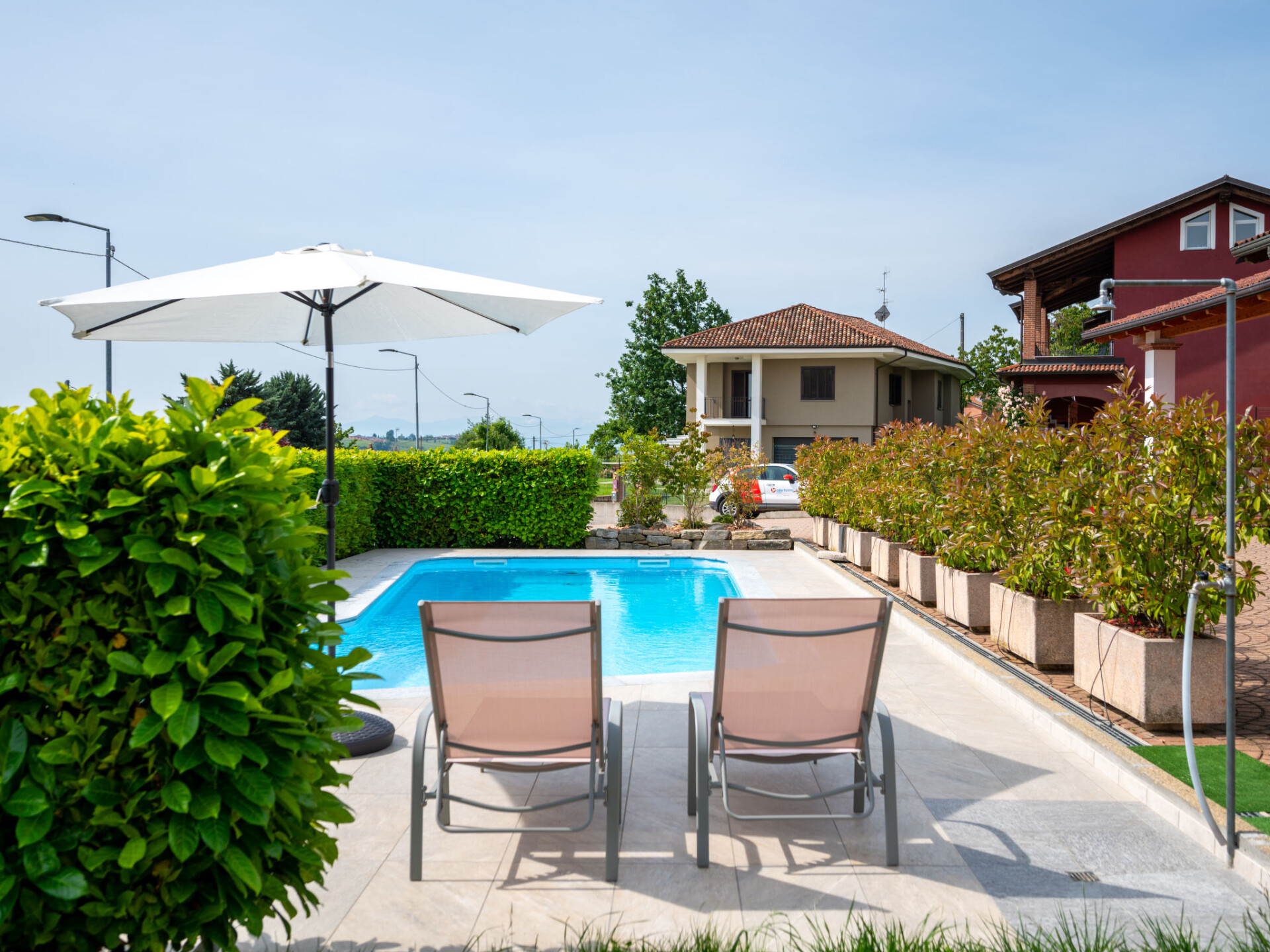Op het wijngoed "Collina San Ponzio". 3 km van het centrum van Barolo, aan de rand van de plaats, 2 km van het centrum van La Morra, 15 km van het centrum van Alba, aan een weg. Voor medegebruik: terrein 5.000 m2 (omheind), verzorgde tuin met gazon en planten, binnenplaats. Voor alleengebruik: openluchtzwembad (10 x 4 m, 100 - 190 cm diepte, seizoensgebonden beschikbaarheid: 01.Mei. - 04.Nov.). Buitendouche, parkeerplaats (voor 2 auto's) bij het huis op het terrein. Winkel 500 m, supermarkt 2 km, bushalte 300 m, treinstation "Alba" 15 km. Eigenaar maakt gebruik van de ruimtes in het huis. Badmuts verplicht.