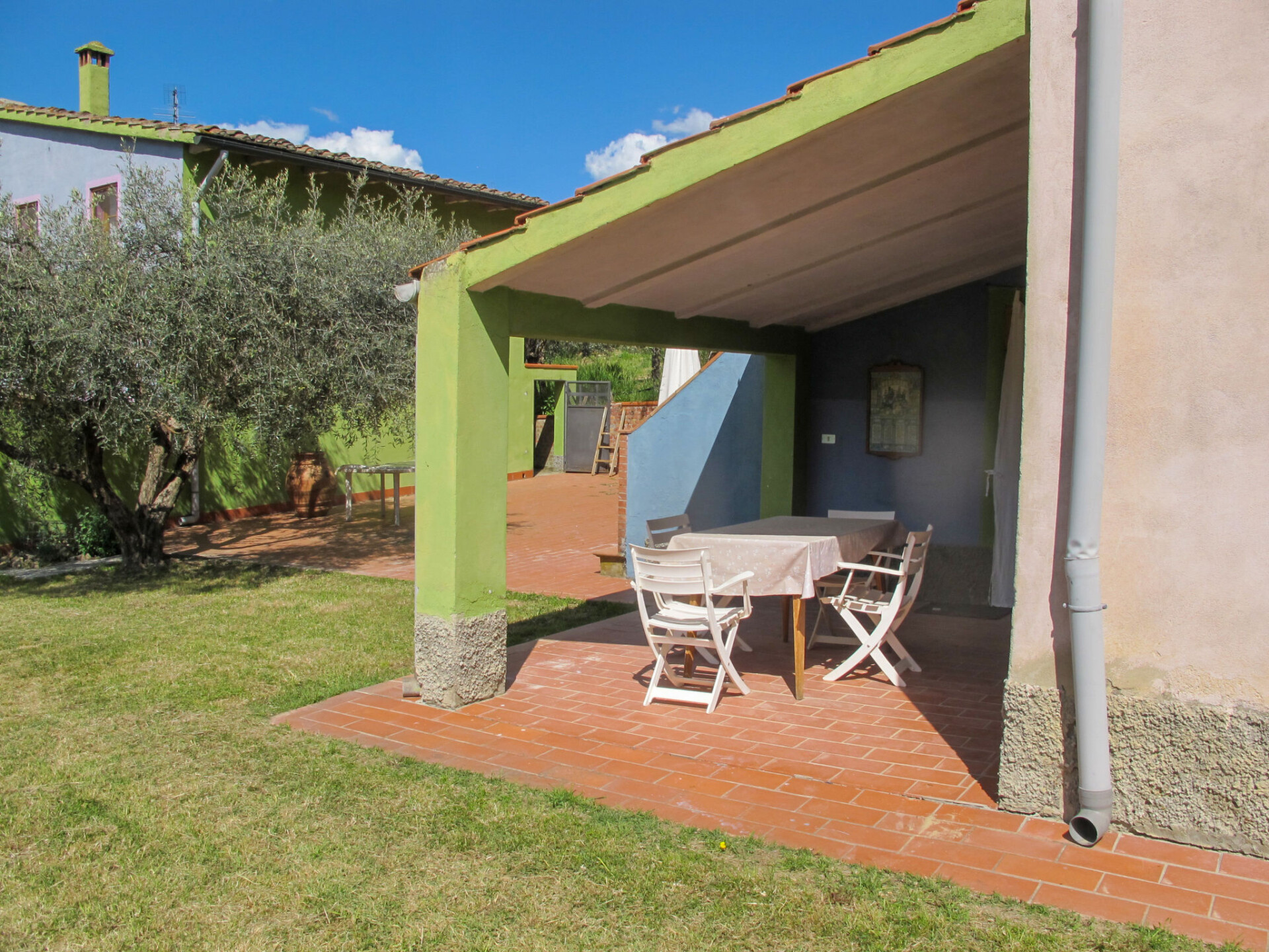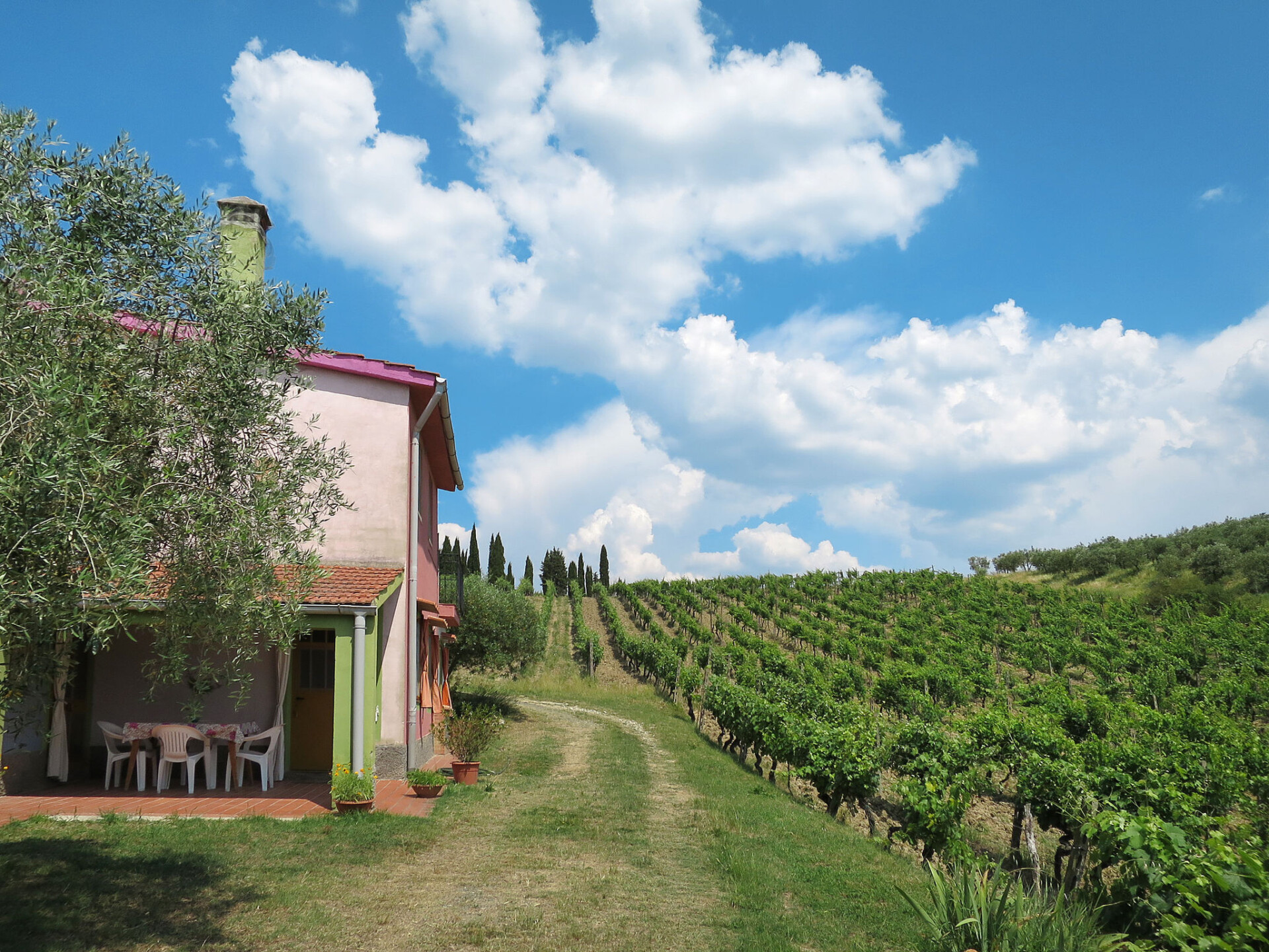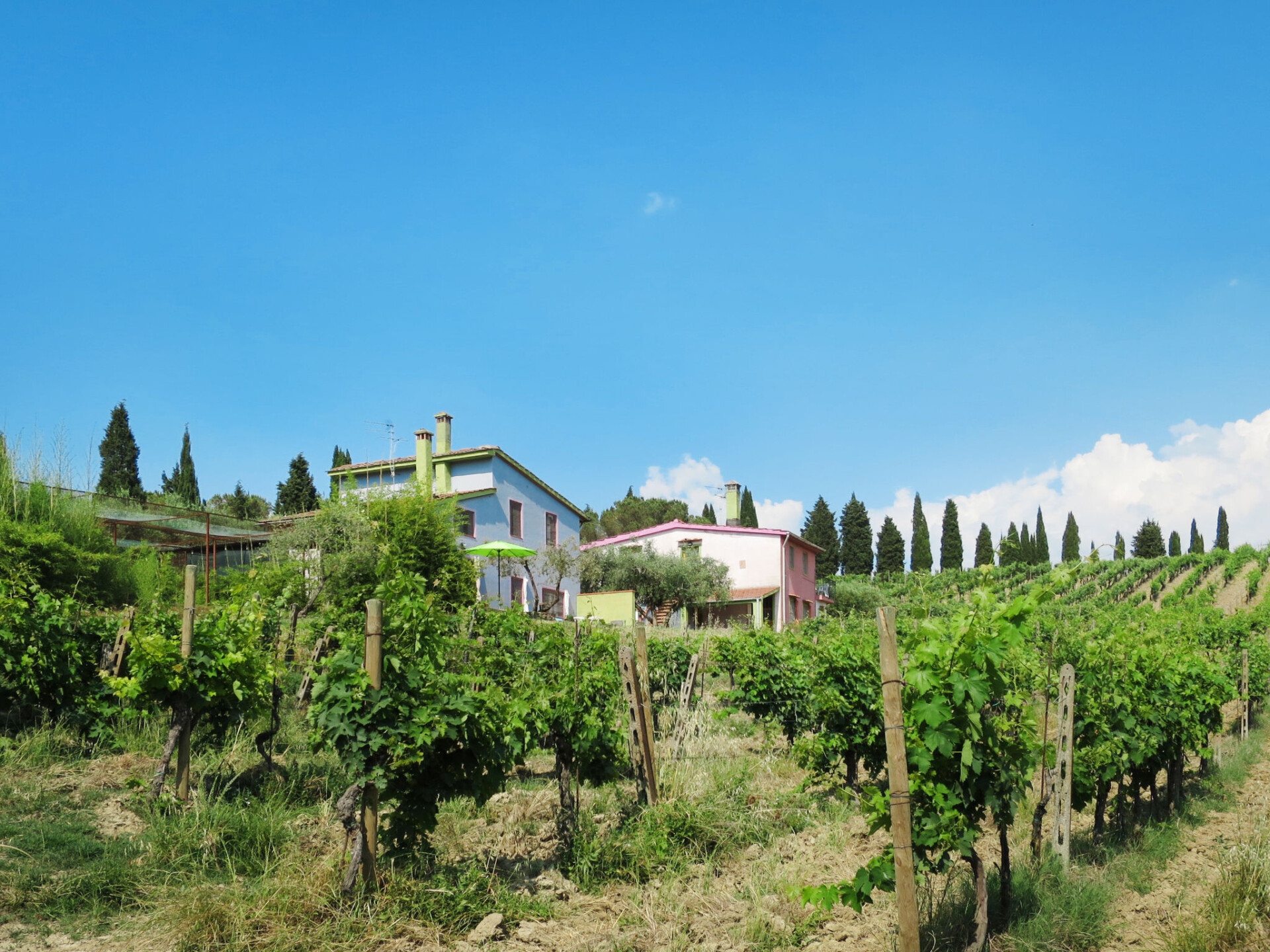 Certaldo: Gezellig op het wijngoed landbouwbedrijfje "Podere Conte Francesco", omgeven door bomen, velden en wijngaarden. 7 appartementen in de woning. 4 km van het centrum van Certaldo, 13 km van het centrum van San Gimignano, 57 km van het centrum van Firenze, geïsoleerde, zonnige, verhoogde ligging tegen een helling, 80 km van zee, 80 km van het strand, te midden van groen. Voor medegebruik: wild terrein met planten en bomen, wilde tuin, weide, boomgaard, openluchtzwembad (10 x 5 m, 150 cm diepte, seizoensgebonden beschikbaarheid: 02.Mei. - 03.Okt.). Buitendouche, tuinmeubelen, onderhoud zwembad door de eigenaar/tuinman. In het complex: Internet (WiFi), wasmachine (voor medegebruik, extra). 1.5 km lange toegangsweg (onverharde weg). Parkeerplaats op het terrein. Levensmiddelenwinkel 3 km, supermarkt 7 km, restaurant 7 km, bar 3 km, bushalte 3 km, treinstation "Certaldo" 7 km, zandstrand "Cecina Mare" 80 km, overdekt zwembad 7 km. Golfterrein (18 holes) 27 km, tennis 7 km, manege 3 km. Attracties in de buurt: Siena 45 km, Volterra 40 km, Pisa 83 km. Auto noodzakelijk. Baby uitrusting op aanvraag (incl.). De eigenaar woont op hetzelfde terrein. De woningen kunnen onderling van inrichting verschillen.