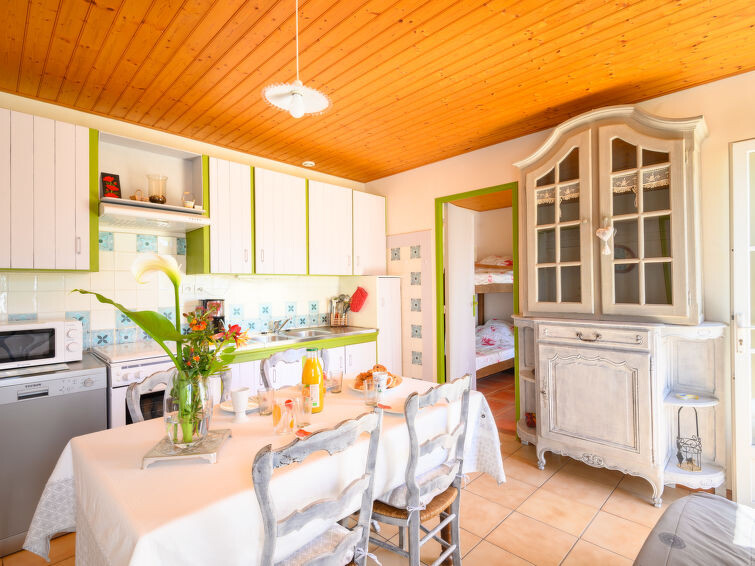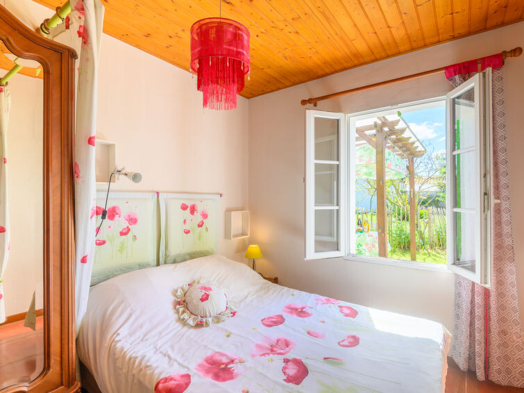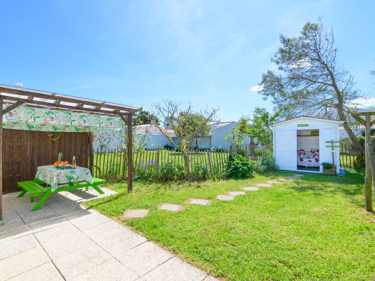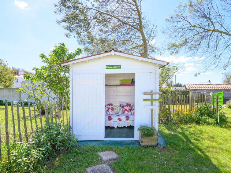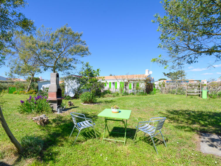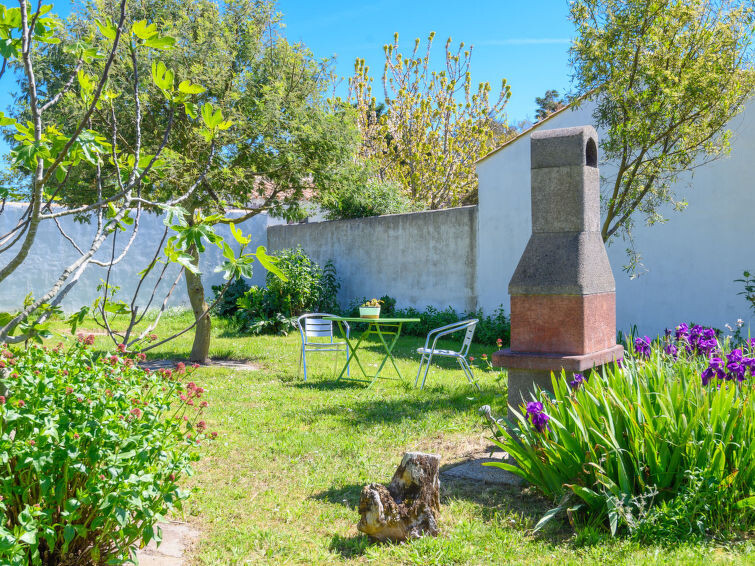 Rijtjeshuis. 600 m van het centrum van Le Vieil, 3 km van het centrum van Noirmoutier-en-L'Ile, in een woonwijk, 250 m van zee, 250 m van het strand. Voor medegebruik: terrein (omheind) met gazon en bloemen, mooie tuin ter ontspanning. Barbecue, kinderspeelplaats (schommel). Voor alleengebruik: tuin 100 m2 (omheind) met gazon. Prieel, terras, tuinmeubelen. In het huis: bergruimte voor fietsen. Parkeerplaats op het terrein. Supermarkt 600 m, bushalte "Centre de Noirmoutier" 3 km, zandstrand "de la Madeleine" 250 m. Jachthaven 4 km, zeilschool 200 m.