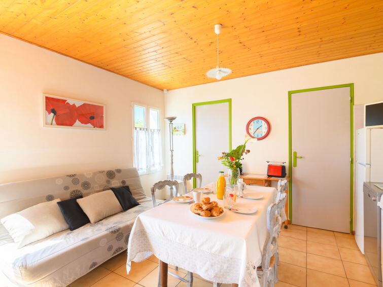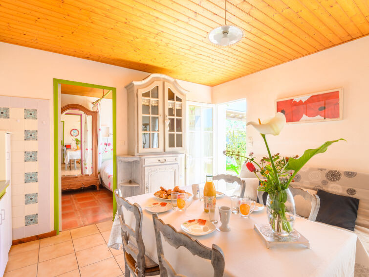 "Coquelicot", huis in een rij 2-kamers 28 m2. Het objekt is geschikt voor 2 volwassenen + 2 kinderen. Mooi ingericht: woon-/eetkamer met 1 2-pers divanbed (125 cm, lengte 190 cm), eethoek, kookhoek en TV (Flatscreen TV). Uitgang naar de tuin, naar het terras. 1 kamer met 2 stapelbedden (80 cm, lengte 190 cm), 1 2-pers bed (140 cm, lengte 190 cm). Kookhoek (4-pits kookplaat, oven, afwasmachine, broodrooster, waterkoker, magnetron, diepvriezer, elektrische koffiemachine). Douche/WC. Elektrische verwarming. Terras, op het zuiden gelegen, prieel. Terrasmeubelen. Ter beschikking: wasmachine, droger, strijkijzer. Internet (WiFi, gratis). Parkeerplaats bij het huis. Maximaal 1 huisdier/hond toegestaan. Privé ingang, rookmelders. Bedindeling is flexibel. Er zijn meer slaapmogelijkheden beschikbaar dan het maximaal toegestane aantal personen dat echter niet mag worden overschreden. Aanbod door een particulier volgens art. 155, IV van CGI.