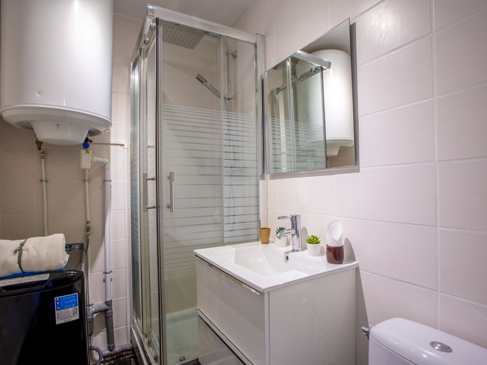 Studio 1-kamer 20 m2 op de 1e verdieping. Eenvoudig ingericht: woon-/eetkamer met 1 2-pers divanbed (140 cm, lengte 190 cm), TV (Flatscreen TV). Uitgang naar het balkon. Kookhoek (oven, 3 keramische glas kookplaten, broodrooster, waterkoker, magnetron, elektrische koffiemachine). Douche/WC. Elektrische verwarming. Klein balkon 5 m2. Balkonmeubilair. Ter beschikking: wasmachine. Internet (WiFi, extra). Woning aan de straatzijde. Koelkast zonder vriesvak, geen parkeerplaats. Maximaal 1 huisdier/hond toegestaan. TV alleen FR. Rookmelders, geen lift. 830190005851Z