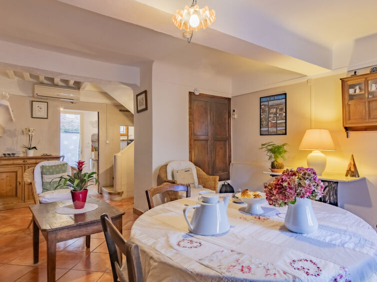 "Côté Place", huis in een rij 3-kamers 60 m2 op 2 verdiepingen. Gerenoveerd in 2008, mooi en gezellig ingericht: woon-/eetkamer met eettafel. Kleine keuken (1 kookplaat, afwasmachine, 3 kookpitten (vlammen), broodrooster, waterkoker, elektrische koffiemachine, combimagnetron) met kleine eettafel. Douche/WC. Bovenverdieping: 1 kamer met 1 2-pers bed (1 x 140 cm, lengte 200 cm). 1 kleine kamer met 1 x 2 stapelbedden (90 cm, lengte 200 cm), aparte WC. Elektrische verwarming. Ter beschikking: wasmachine, kinderstoel, kinderbed. Internet (Internet (WiFi), gratis). Rookvrij huis. 8414509002