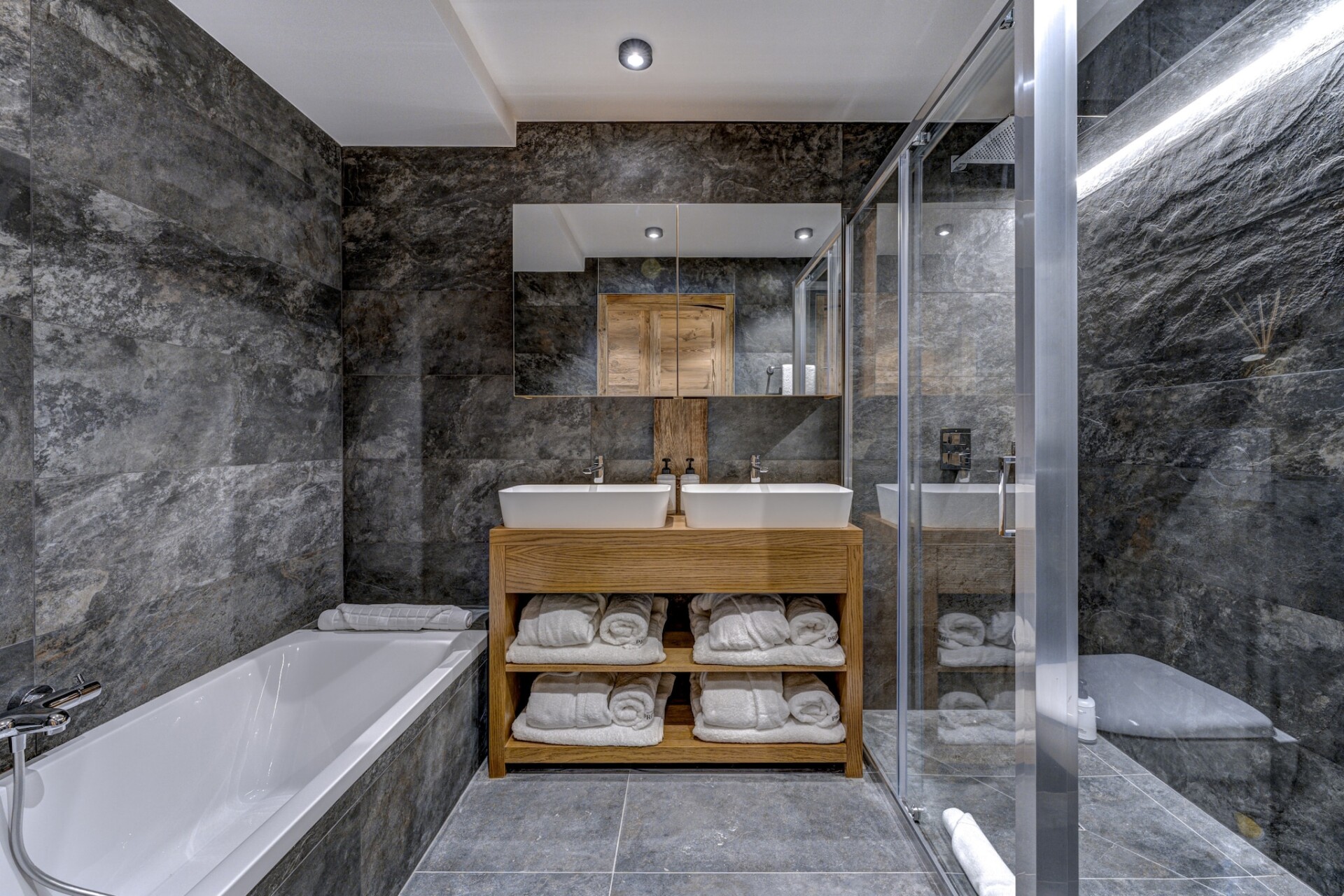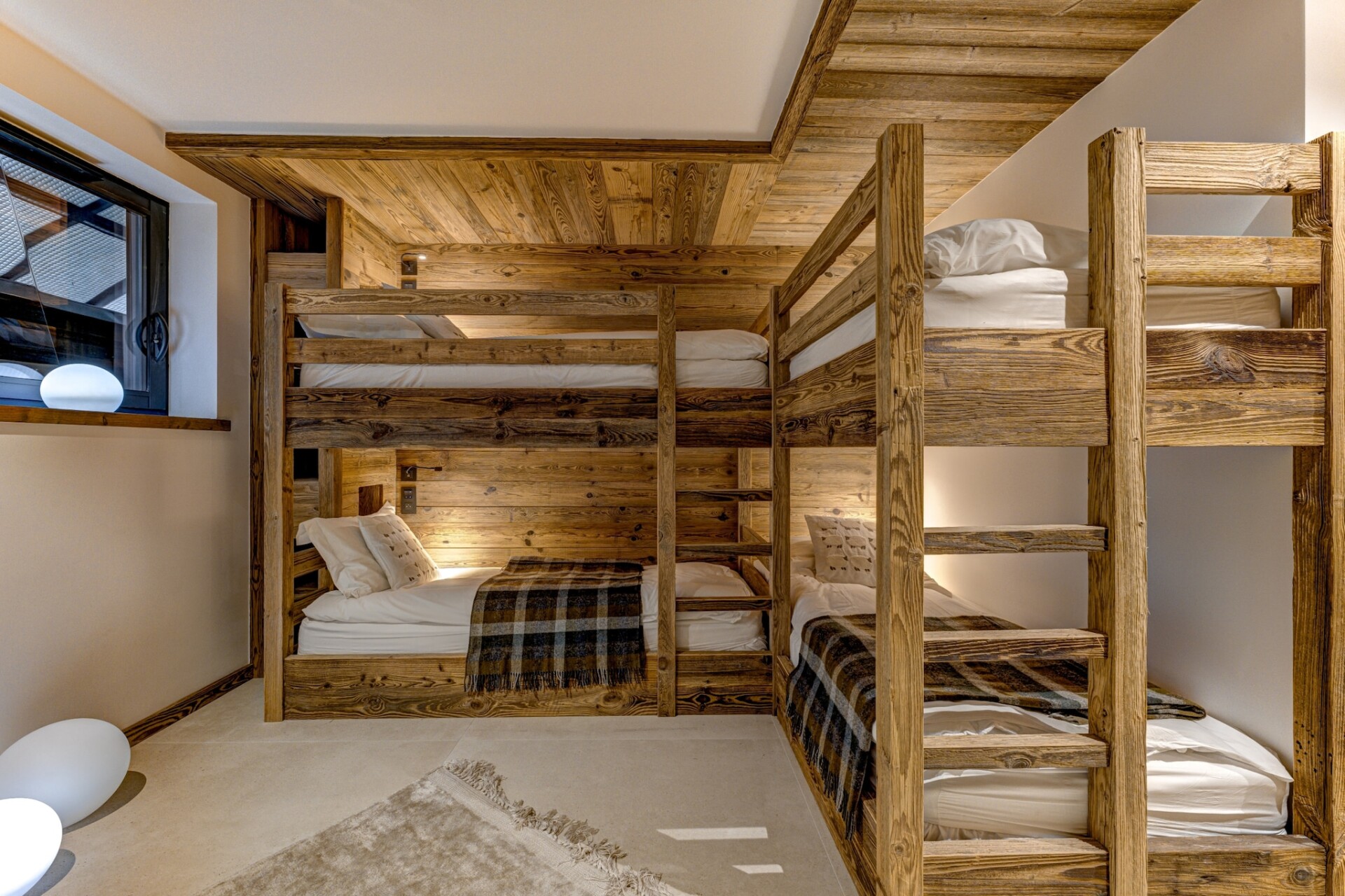 Het interieur beschikt over een lichte en ruime woonkamer met een open haard, grote ramen en toegang tot een privétuin en terras. De volledig uitgeruste inductiekeuken is voorzien van moderne apparatuur zoals een oven, magnetron, koelkast, vriezer, vaatwasser, koffiezetapparaat, broodrooster en waterkoker — ideaal voor zowel informele maaltijden als diners met een groep. Gasten kunnen zich volledig ontspannen in luxe met een privésauna, bubbelbad en verwarmd zwembad, of binnen relaxen met meerdere tv's, wifi en stijlvolle loungeruimtes. Het chalet beschikt ook over een lift voor extra gemak en airconditioning in de woonkamer voor extra comfort.