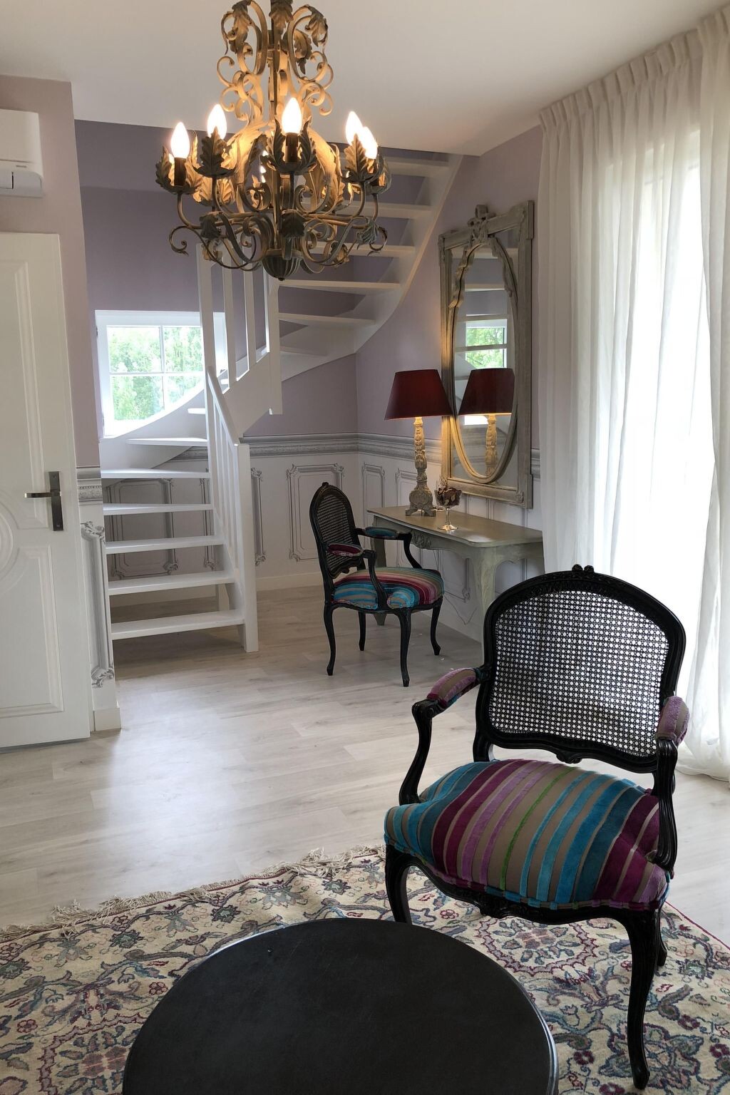 Maximaal 1 huisdier/hond toegestaan. Located on the edge of Touraine, in the heart of the Loire châteaux, in the historic village of Azay-le-Rideau, Domaine Plessis Gallu dates back to the 14th and 18th centuries. Full of charm, the estate is nestled in a green setting. Altered several times over the course of its history, it was recently restored in 2017, for prestige holiday flat rentals just 700 m from the Château d'Azay-le-Rideau. The owners, who are passionate about history and architecture, have preserved the estate, including the château and the 2-hectare park with its century-old trees, and offer 4 cottage flats and a villa for holiday rental in the small hamlet of Domaine Plessis Gallu. Spring and autumn stay 4 nights minimum SUMMER SEASON 7 nights minimum Saturday to Saturday (June to September)2 terraces70 m² duplex cottage for 2 people - 1 bedroom - 2 bathrooms- 70 m² duplex cottage, with on the ground floor: a living room, a fitted kitchen, a laundry room, a terrace overlooking the garden and a private belvedere terrace with a view of the Lys valley and the Château d'Azay-le-Rideau. Upstairs, a bedroom with bathroom and dressing room. Cottage arranged for 2 people, with the option of 1 or 2 children. Rental from Saturday to Saturday. Secure car park.park and gardenSmall hamlet of 5 luxury cottages, in a peaceful setting, with every comfort. Weekly rental from Saturday to Saturday from June to the end of September. Weekend rentals (3 nights minimum) from March to June and from late September to early January. The cottages are ideal for relaxing and getting away from it all in the estate's verdant grounds, with their panoramic views over the Lys valley and the Château d'Azay le Rideau, or for taking advantage of the various services and activities on offer. Fr50452166127