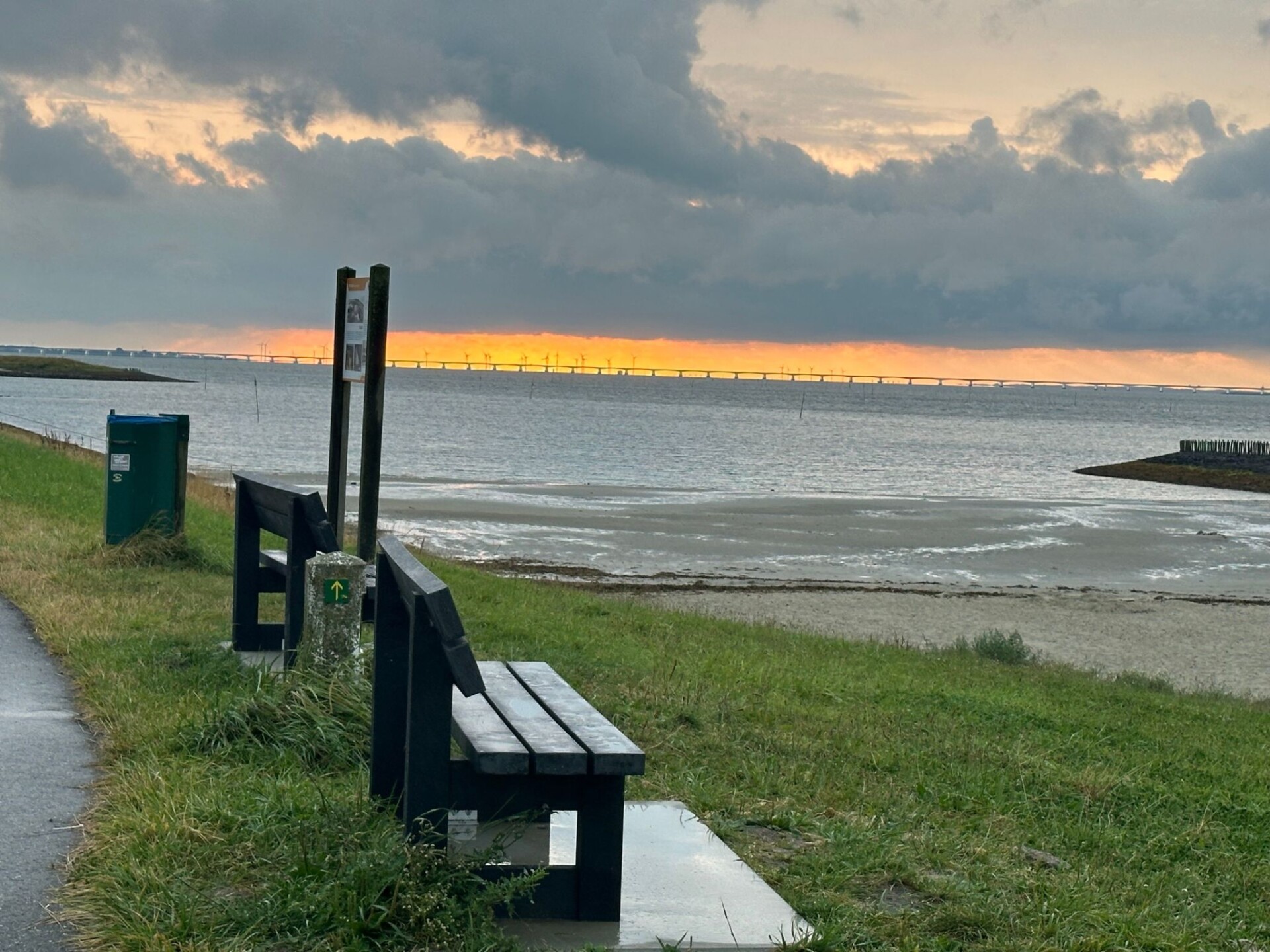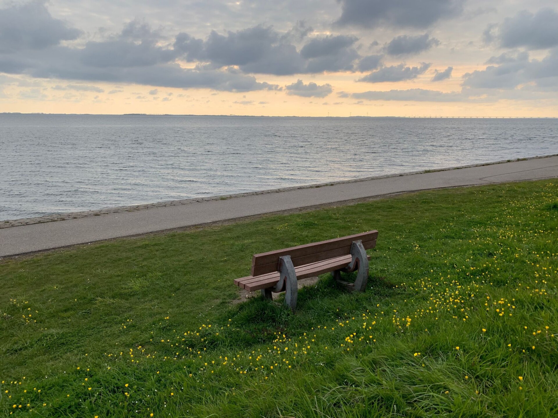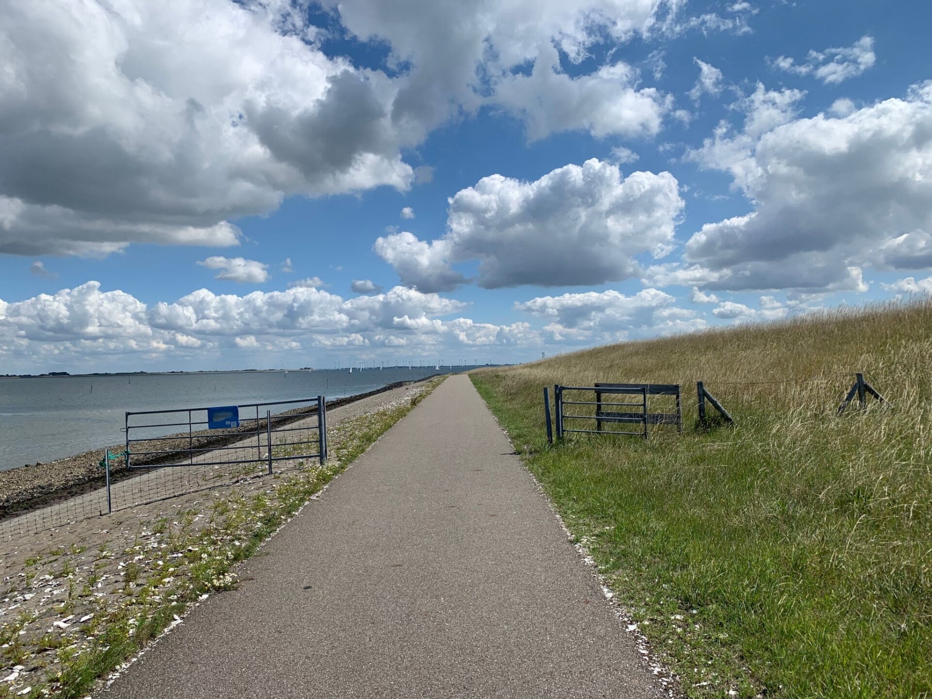 De geasfalteerde paden lopen langs de zee.