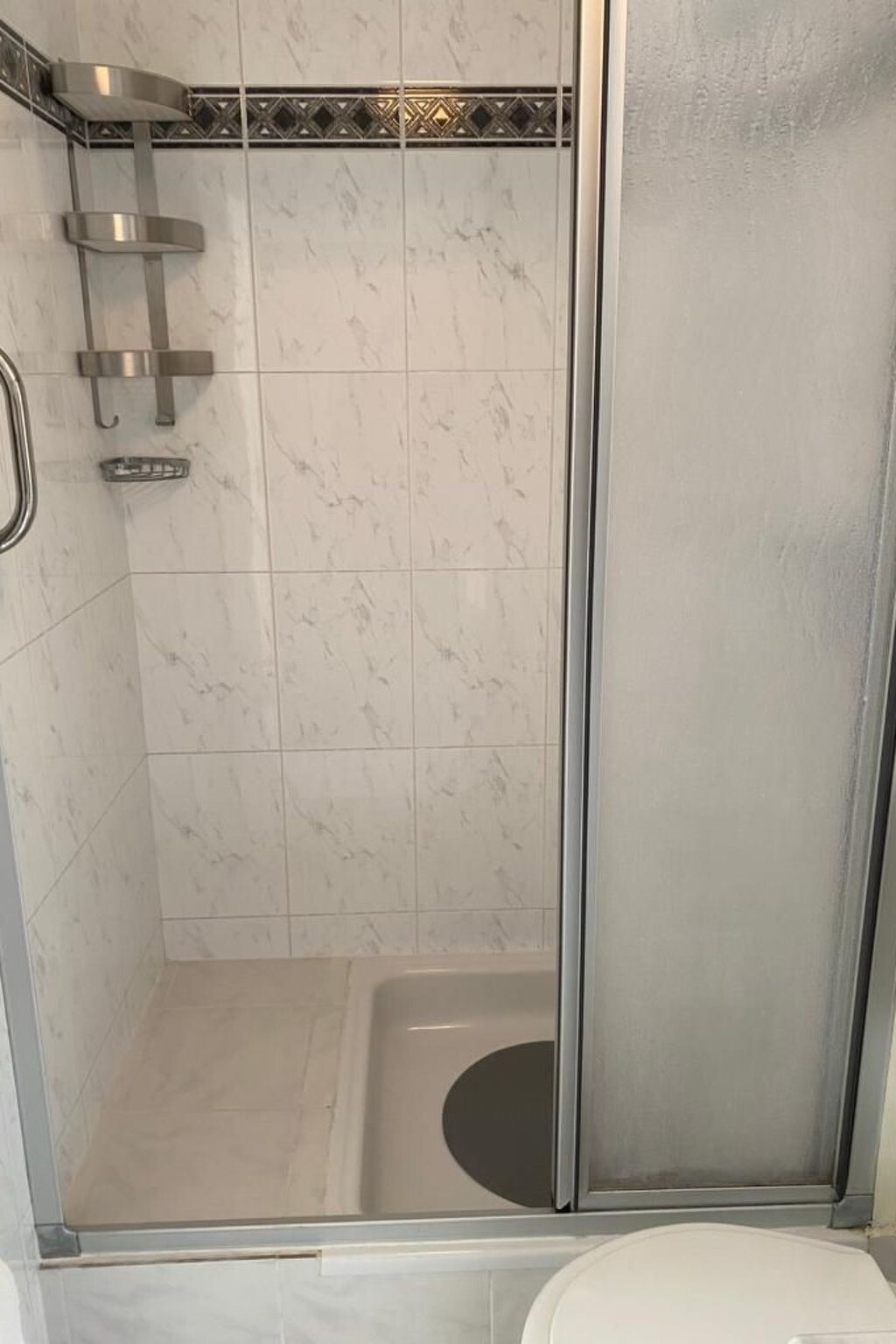 Aansluitend is er de badkamer met douchecabine, wastafel en toilet.