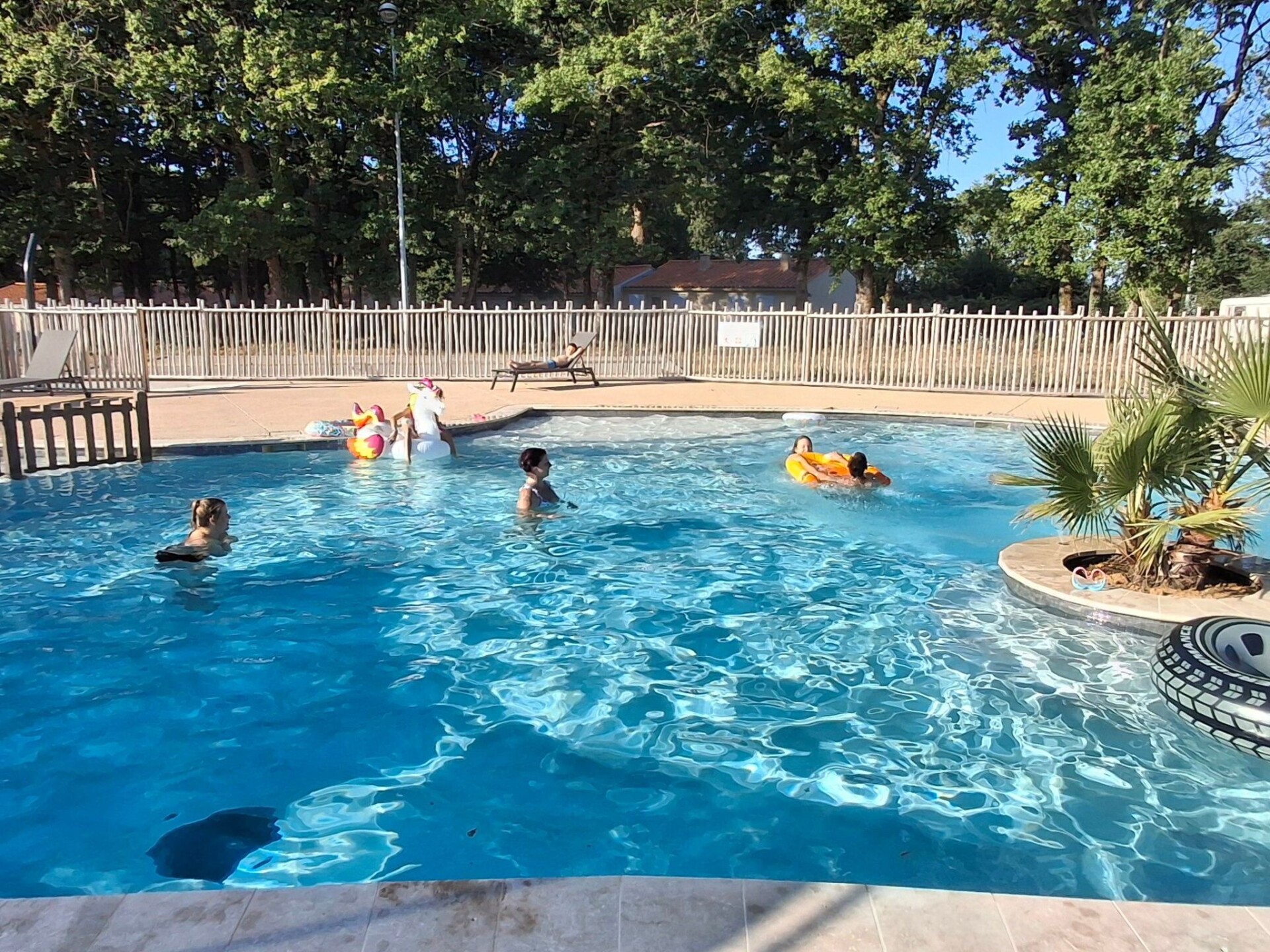 Maximaal 2 huisdieren/honden toegestaan. At Camping & Village Vacances Couleurs Vendée, 64² cottage with 3 bedrooms, 2 shower rooms and 2 terraces with forest views, in a quiet location close to everything (shops, puy du Fou, beach, etc.). Bedroom 1 with double bed 160/200, bedroom 2 with 2 beds 80/190, bedroom 3 with 2 bunk beds 80/180. Fully equipped kitchen, dishwasher, fridge-freezer, microwave... and crockery for 8 people. Garden furniture, parasol and outdoor sofas. Comfortable Italian shower. The spa pool is open in season (mid-June/mid-September, weather permitting). Snack bar/restaurant on site in the evening. Small farmers' market in the Holiday Village. Small events (welcome drink, aperitif, pétanque...)Campsite facilities: Petanque pitch, table tennis, large swimming pool with paddling pool, bouncy castle (weather permitting).Hiking trails from the Village Vacances, access to the centre of the village of Mareuil sur Lay in 20 minutes on foot.Ocean 30 minutes away, Puy du Fou 50 minutes, La Tranche sur Mer 30 minutes. 253000d02