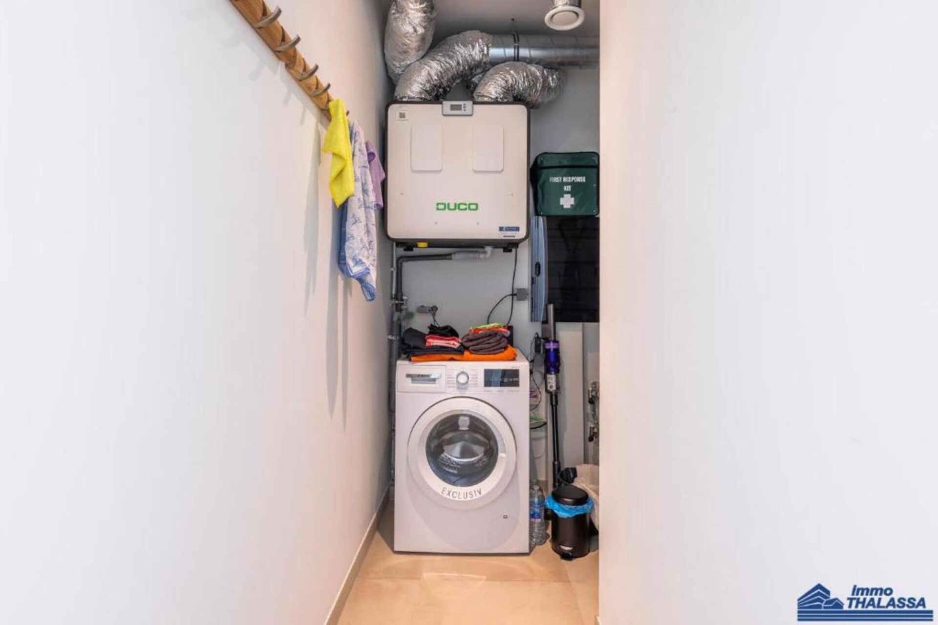 De open eetkamer biedt comfortabel plaats aan zes gasten, terwijl de goed uitgeruste keuken is voorzien van een vaatwasser, koelkast met vriesvak, inductiekookplaat en alle benodigde keukengerei. Een bijkeuken biedt extra gemak met een wasmachine en droger. De strakke badkamer heeft een wastafel en een inloopdouche in Italiaanse stijl. Het appartement beschikt over twee slaapkamers: één met een tweepersoonsbed (1,80 m) en een tweepersoonsdekbed, en de andere met een stapelbed (2 x 90 cm) en eenpersoonsdekbedden. Centrale verwarming op gas, voor comfort het hele jaar door. Roken is ten strengste verboden. Kleine huisdieren zijn op aanvraag toegestaan.