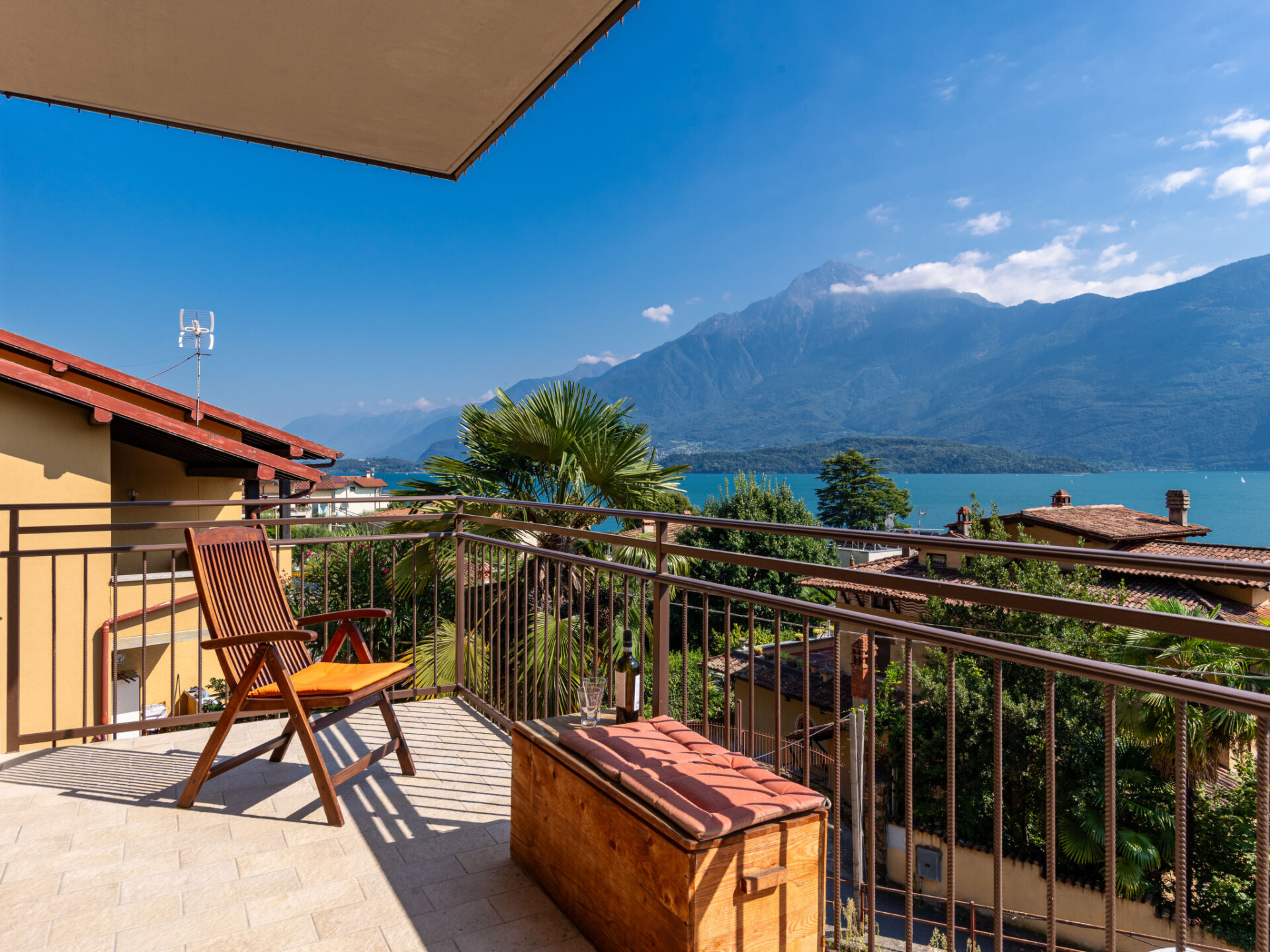 Appartement 3-kamers 90 m2 op 2 verdiepingen, op verhoogde begane grond. Comfortabel ingericht: groot woon-/eetkamer met open haard en eettafel. Uitgang naar het terras. Open keuken (oven, Gasfornuis, 4 kookpitten (vlammen), broodrooster). Bovenverdieping: (wenteltrap), 1 2-pers. kamer. Uitgang naar het balkon. 1 kleine kamer met 1 2-pers divanbed (140 cm). Douche/WC. Gas-verwarming. Groot balkon, groot terras. Barbecue, ligstoelen (2). Mooi uitzicht op het meer en de bergen. Ter beschikking: kinderstoel, kinderbed tot 2 jaar. Internet (WiFi, gratis). Parkeerplaats (1 Auto), garage (1 Auto). Niet rokers woning. Maximaal 1 huisdier/hond toegestaan. Privé ingang. IT013089C2FZXTR28T