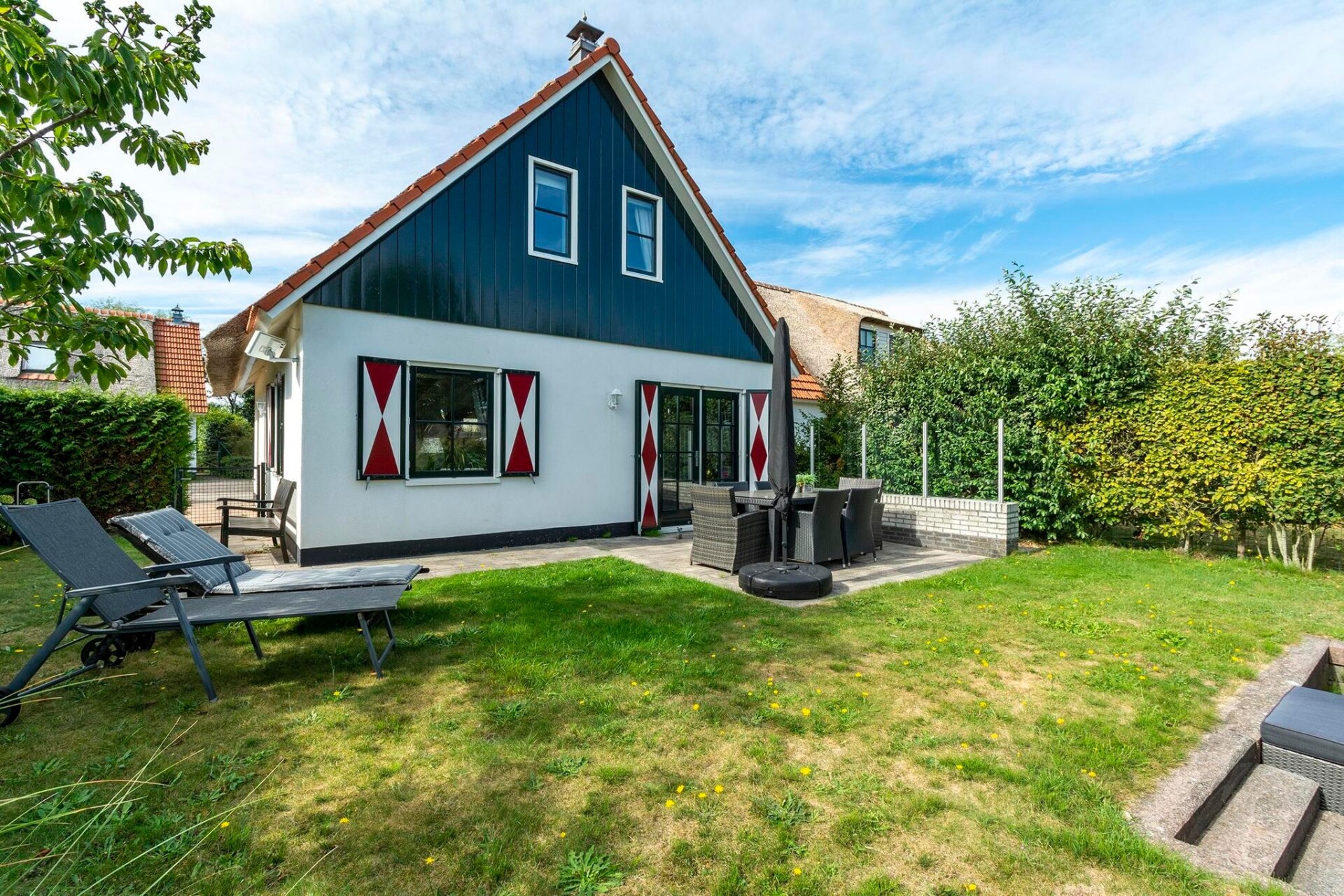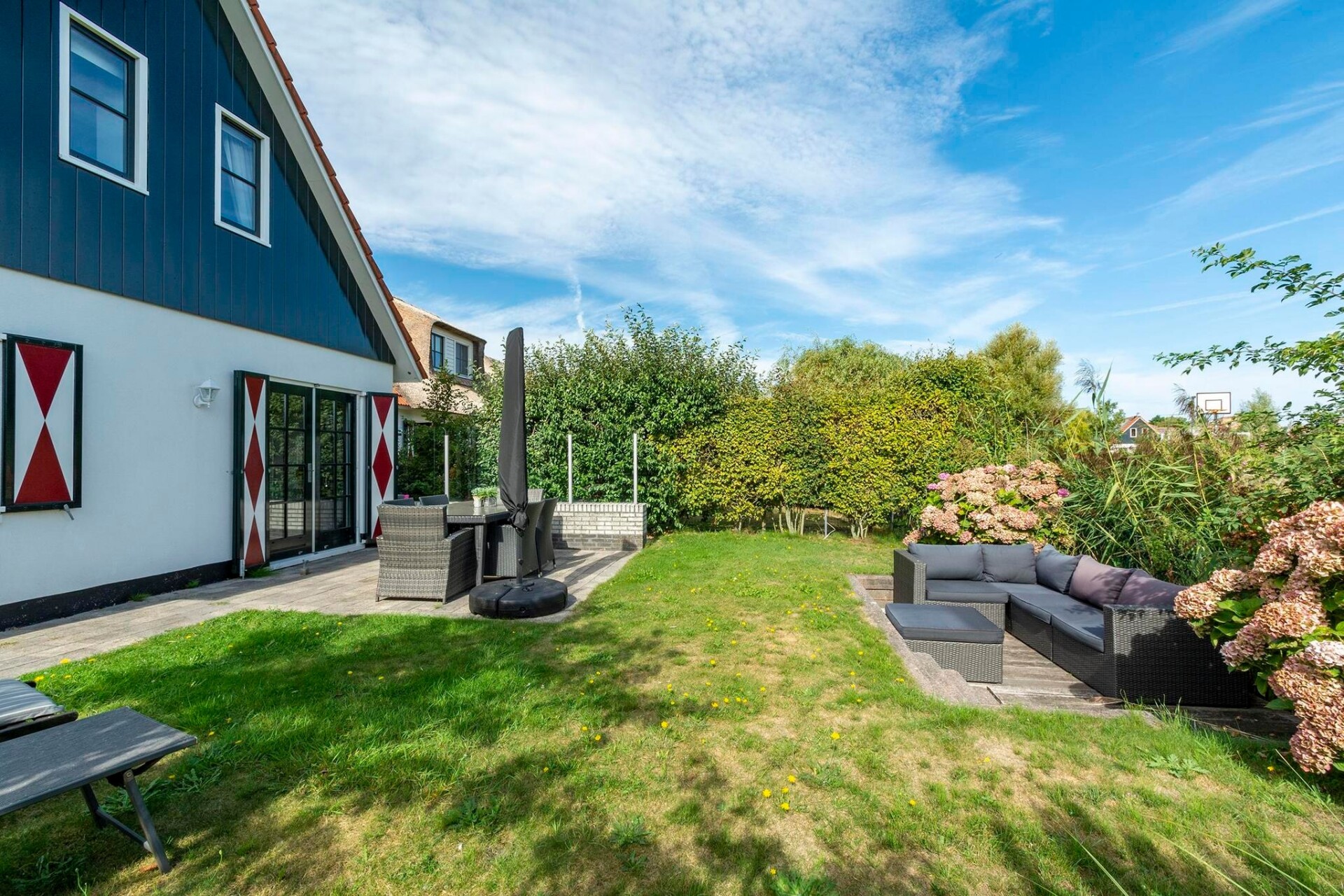 Openslaande deuren geven toegang tot een zonnig terras dat uitkomt op een tuin aan het water, met twee zitgedeeltes: één bij het huis met ligstoelen en één aan het water met een loungeset. De omheinde tuin biedt een veilige plek voor kinderen om te spelen terwijl ouders ontspannen en genieten van het uitzicht. Met parkeergelegenheid voor de deur, gemakkelijke toegang tot het strand en een huisdiervrije omgeving, biedt deze villa een perfecte ontsnapping voor gezinnen die op zoek zijn naar zowel avontuur als rust in de charmante badplaats Callantsoog.