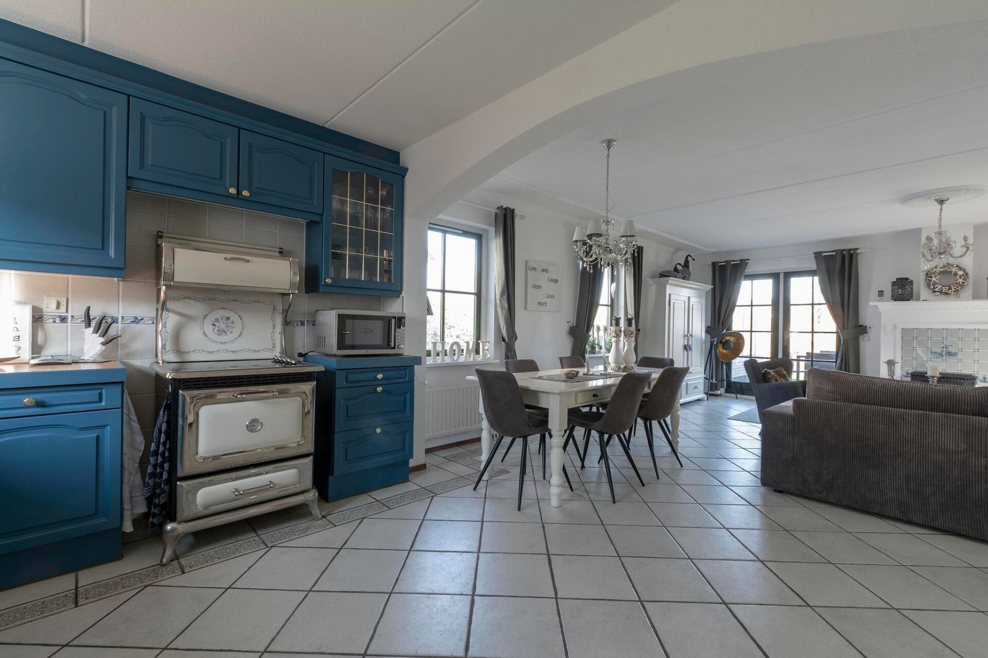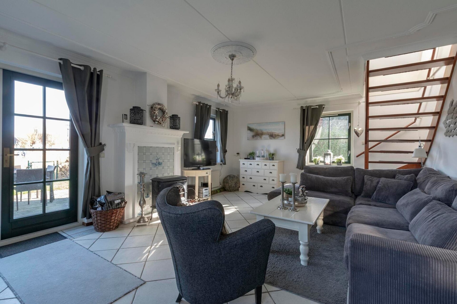 De villa beschikt over een lichte en ruime woonkamer met een gezellige zithoek en een houtkachel, wat een warme en gastvrije sfeer creëert. De open keuken is volledig uitgerust met moderne apparatuur en een bijkeuken met een wasmachine en droger zorgt voor extra gemak. Boven vindt u twee ruime slaapkamers, waarvan één met een tv, en een stijlvolle badkamer met een ligbad, douche, wastafel en toilet.