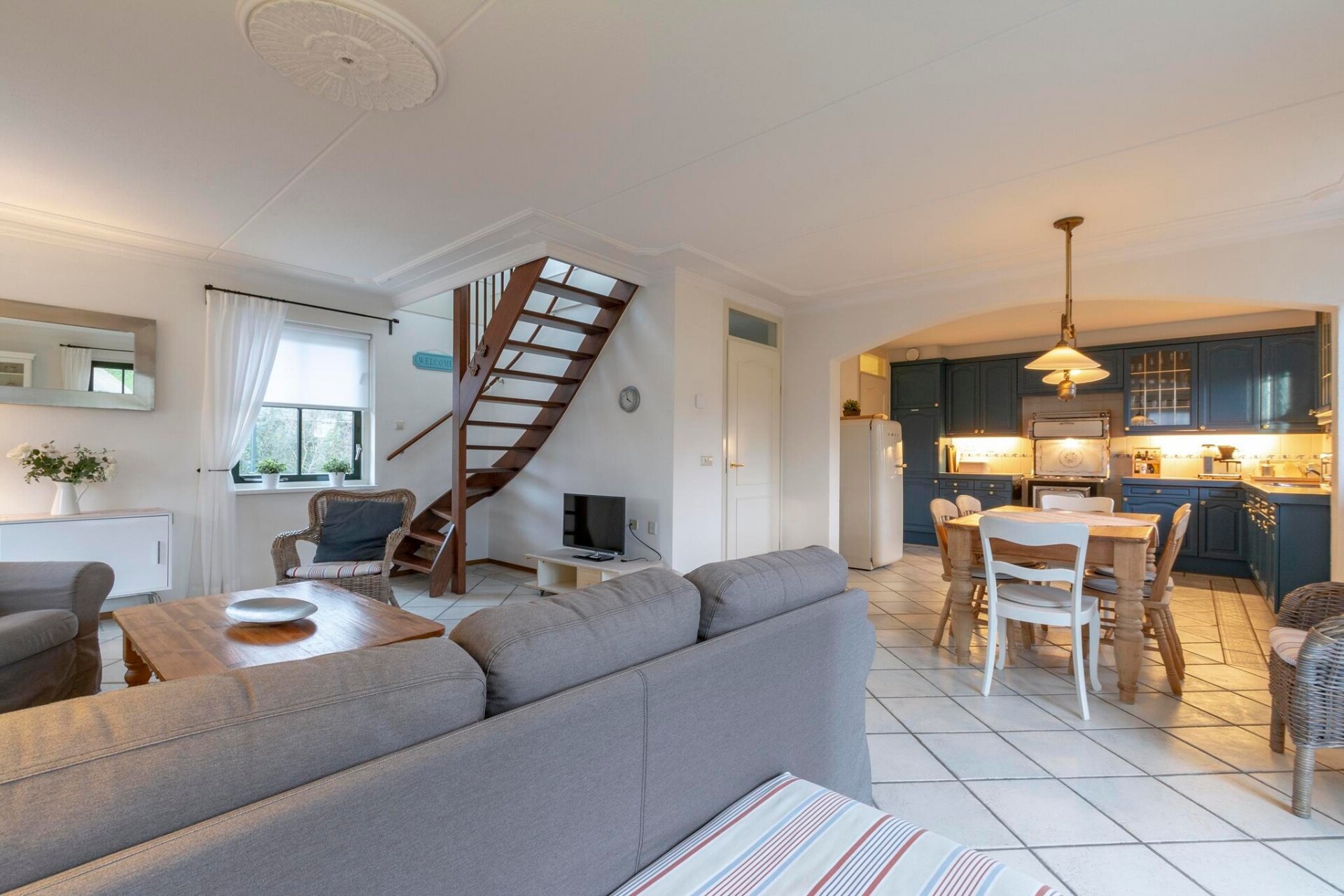 Waar de duinen de horizon raken en de geur van de zee door de lucht zweeft, biedt deze gastvrije villa een echt voorproefje van het Nederlandse kustleven. Perfect voor gezinnen, vrienden en hun viervoeters, voelt het moeiteloos huiselijk, licht, warm en omgeven door het rustige ritme van de kust. Gelegen aan de ingang van vakantiepark De Buitenplaats, biedt de villa comfortabel plaats aan maximaal zes gasten in een ruimte die comfort combineert met kustcharme. De open woonkamer is licht en uitnodigend, met grote openslaande deuren die naar een zonnig terras en een privétuin leiden. Een houtkachel zorgt voor warmte en sfeer en creëert de perfecte setting voor rustige avonden na een strandwandeling. De moderne keuken en de grote eettafel maken van elke maaltijd een moment om van te genieten, van een eenvoudig ontbijt tot een zelfgemaakt diner met het gezin.