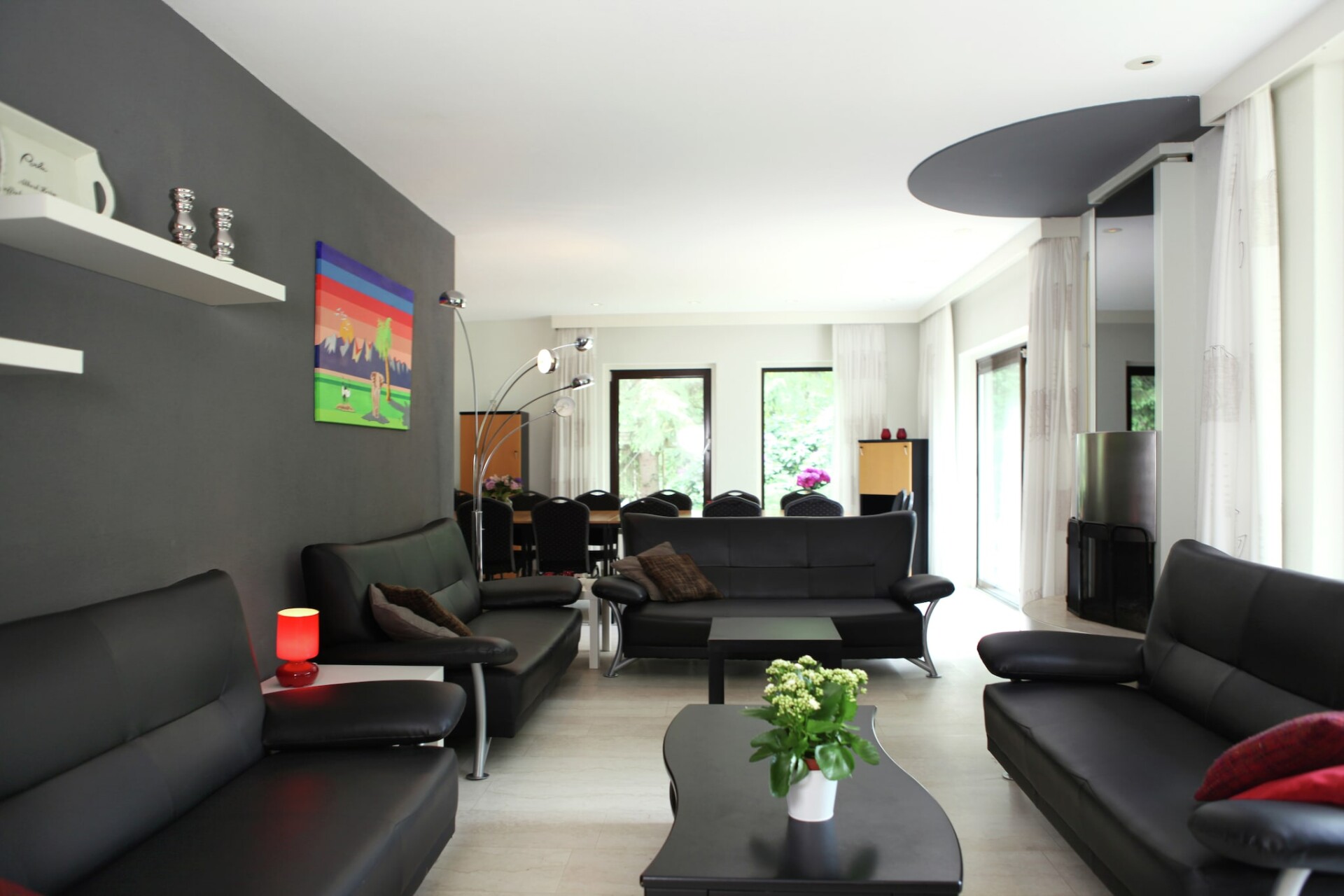 Het vakantiehuis is volledig uitgerust voor groepsverblijven en is bijzonder geschikt voor gezinnen met kinderen. Binnen geniet u van ruimte en comfort, terwijl buiten een grote, groene tuin met diverse terrassen uitnodigt tot ontspanning en gezelligheid. Het hoogtepunt is de ruime, deels overdekte vuurplaats, waar u tot in de vroege uurtjes kunt samenkomen voor lange, knusse avonden.