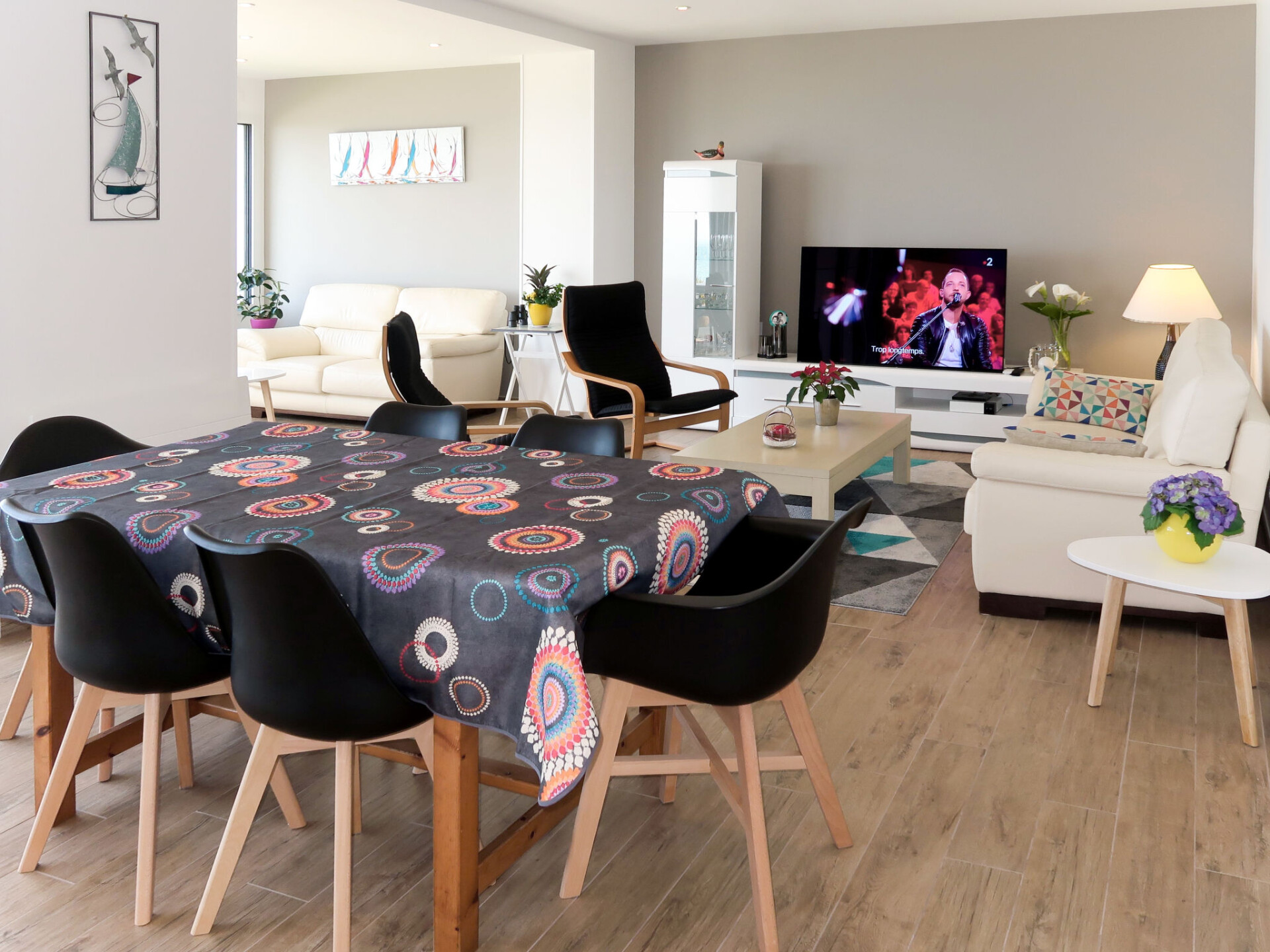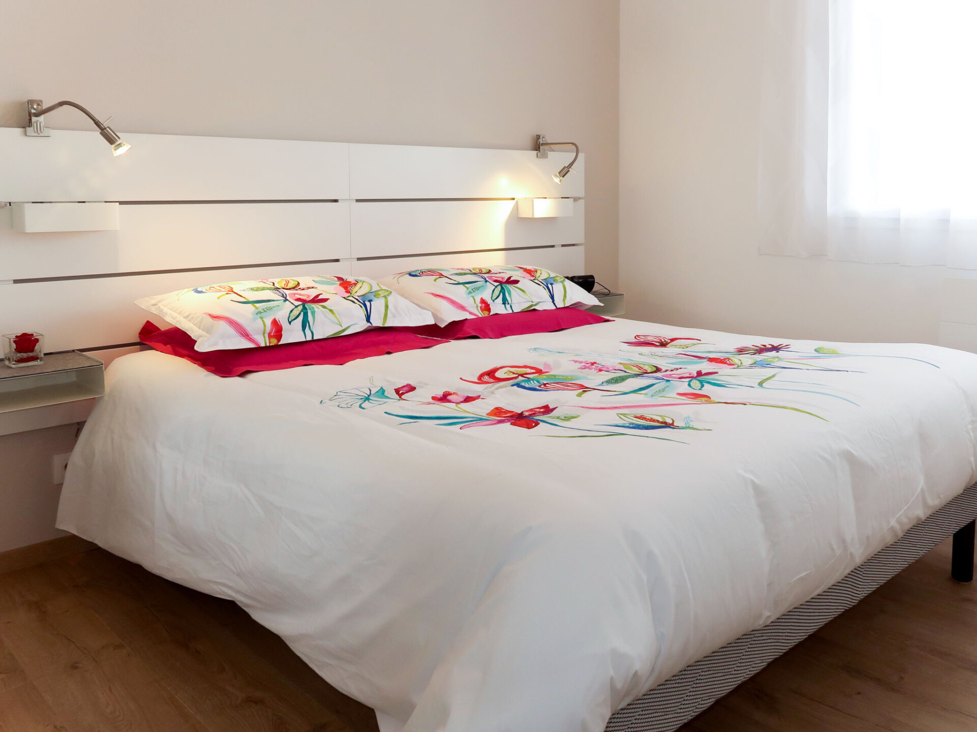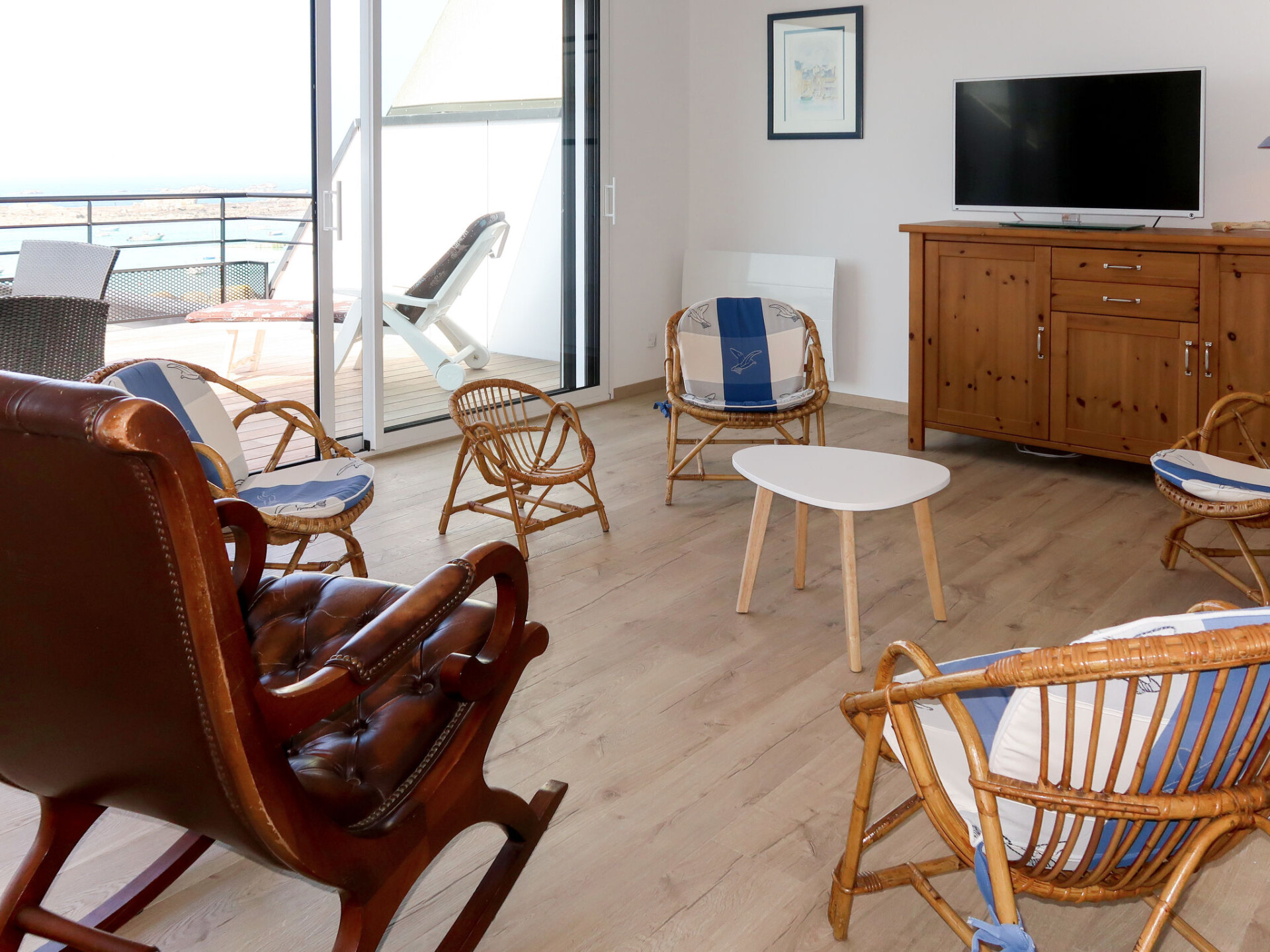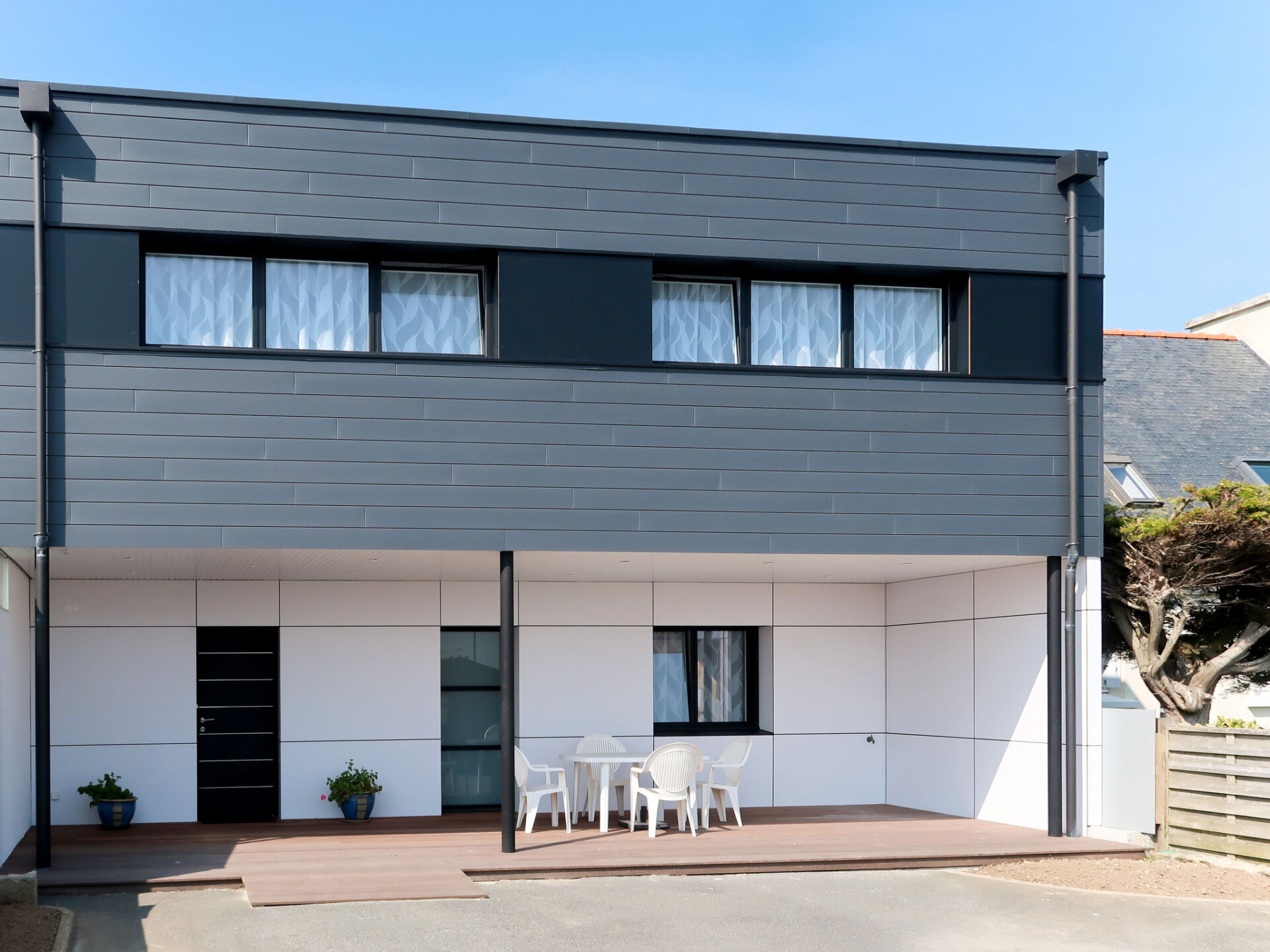 "De la Digue", huis in een rij 4-kamers 130 m2 op 2 verdiepingen. Licht, volledig gerenoveerd in 2019, mooi en modern ingericht: woon-/eetkamer met zwedenkachel, eettafel en TV. Uitgang naar het terras. 1 kamer met 1 2-pers bed (160 cm, lengte 200 cm), douche/WC. Uitgang naar het terras. Open keuken (oven, afwasmachine, 4 keramische glas kookplaten, broodrooster, waterkoker, magnetron, diepvriezer, elektrische koffiemachine). Aparte WC. Bovenverdieping: open galerij met TV. Uitgang naar het balkon. 1 kamer met 2 bedden (90 cm, lengte 190 cm). 1 kamer met 1 2-pers bed (160 cm, lengte 200 cm). Douche/WC, dubbele wastafels. Elektrische verwarming. Parketvloeren. Groot balkon, terras gedeeltelijk overdekt, klein terras. Terrasmeubelen, balkonmeubilair, barbecue (verrijdbaar), ligstoelen (5). Mooi panoramazicht op zee. Ter beschikking: wasmachine, droger, strijkijzer, kinderstoel, kinderbed. Internet (Internet (WiFi), gratis). Rookvrij huis. Rookmelders. In plaats van een afgesloten slaapkamer bevinden sommige slaapgedeeltes zich in een open ruimte (galerij, nis, etc.).