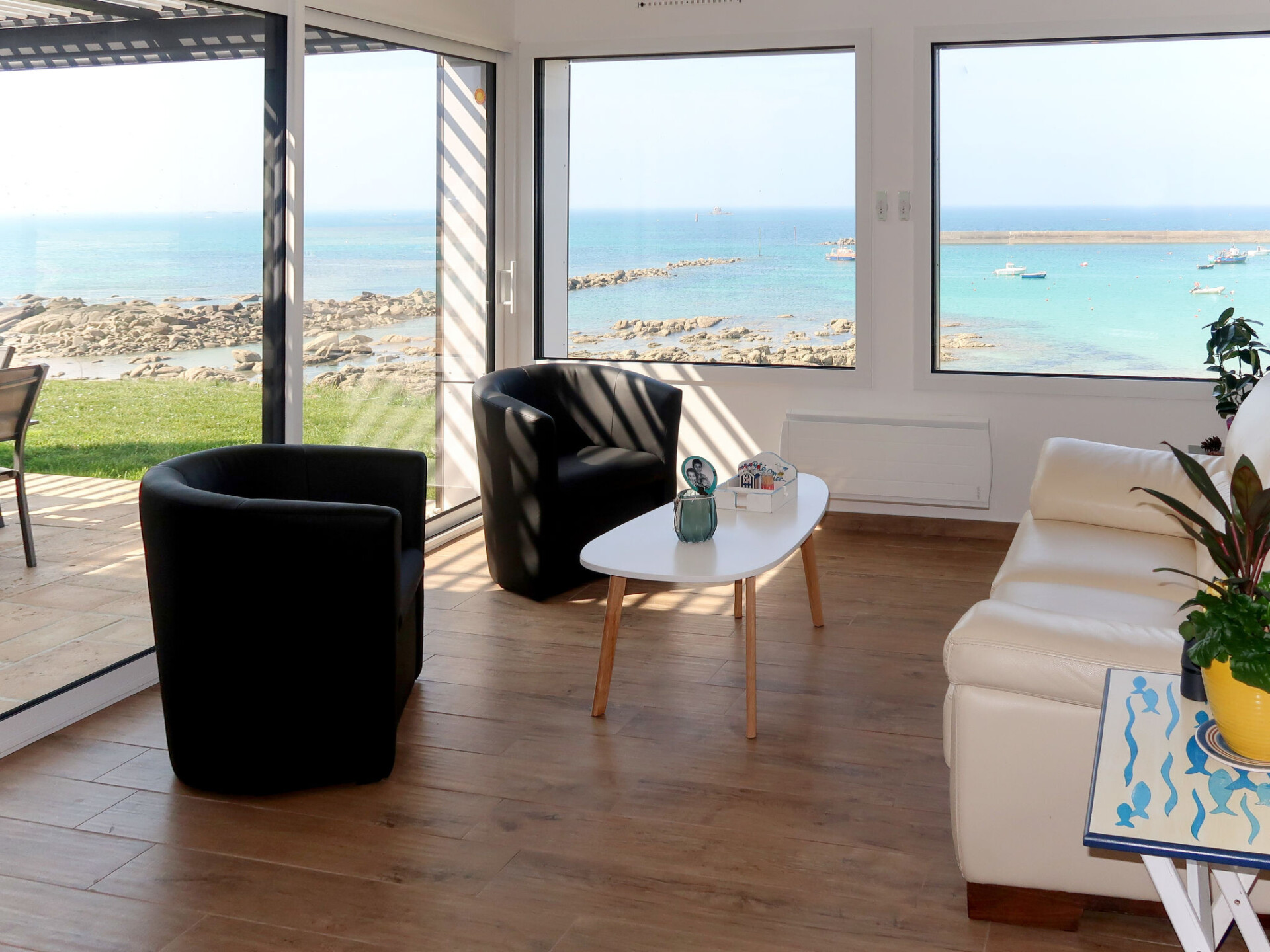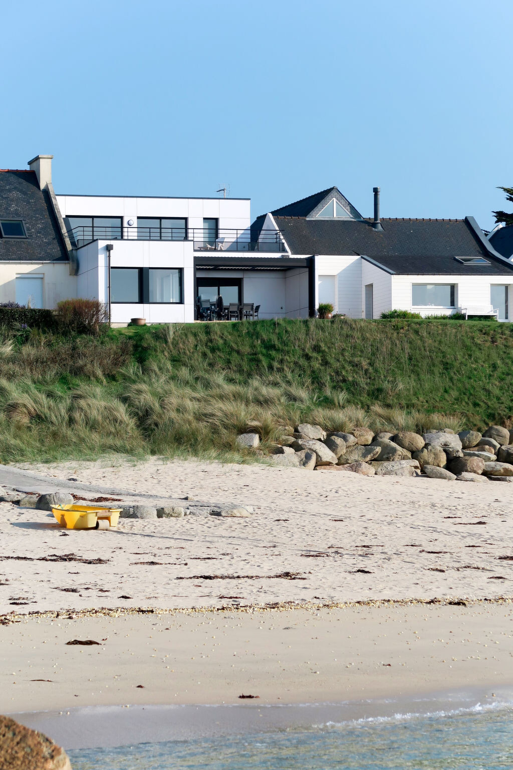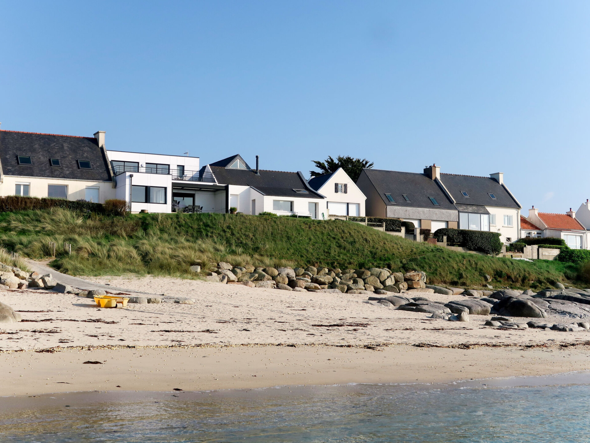 Moderne rijtjeshuis "de la Digue". In de wijk Pors Meur, 3.5 km van het centrum van Plouescat, 19.5 km van het centrum van Saint Pol de Léon, 18.5 km van het centrum van Lesneven, 30 m van zee, 30 m van het strand, directe toegang tot het strand. Voor alleengebruik: terrein 330 m2, tuin (omheind) met planten. In het huis: bergruimte voor fietsen. Parkeerplaats (voor 2 auto's) op het terrein. Winkel 450 m, supermarkt 3.5 km, restaurant 200 m, bakkerij 3.5 km, bushalte 2.7 km, zandstrand "Pors Meur" 30 m, thermaalbad "Thalasso Roscoff" 24 km. Golfterrein (9 holes) 7 km, surfschool, zeilschool 300 m, wandelroutes 10 m vanaf het huis. Attracties in de buurt: Réserve ornithologique Keremma 10 km, Roscoff et Jardin exotique, Île de Batz 24 km, Château de Kerjean 32 km, Morlaix 38 km, Océanopolis Brest 50 km, Carantec 28 km. Wandelgebied GR34, sentier des douaniers 20 m.