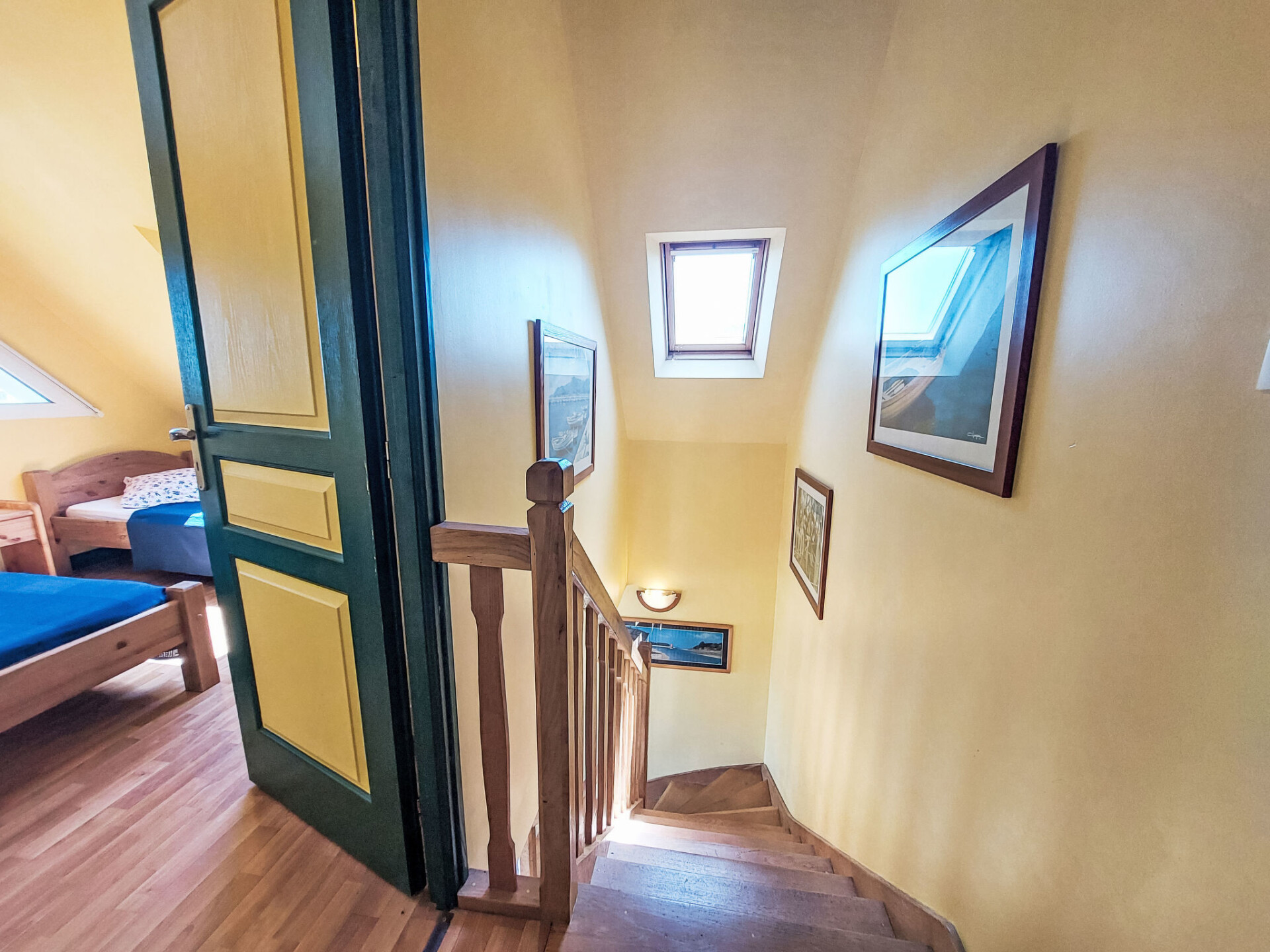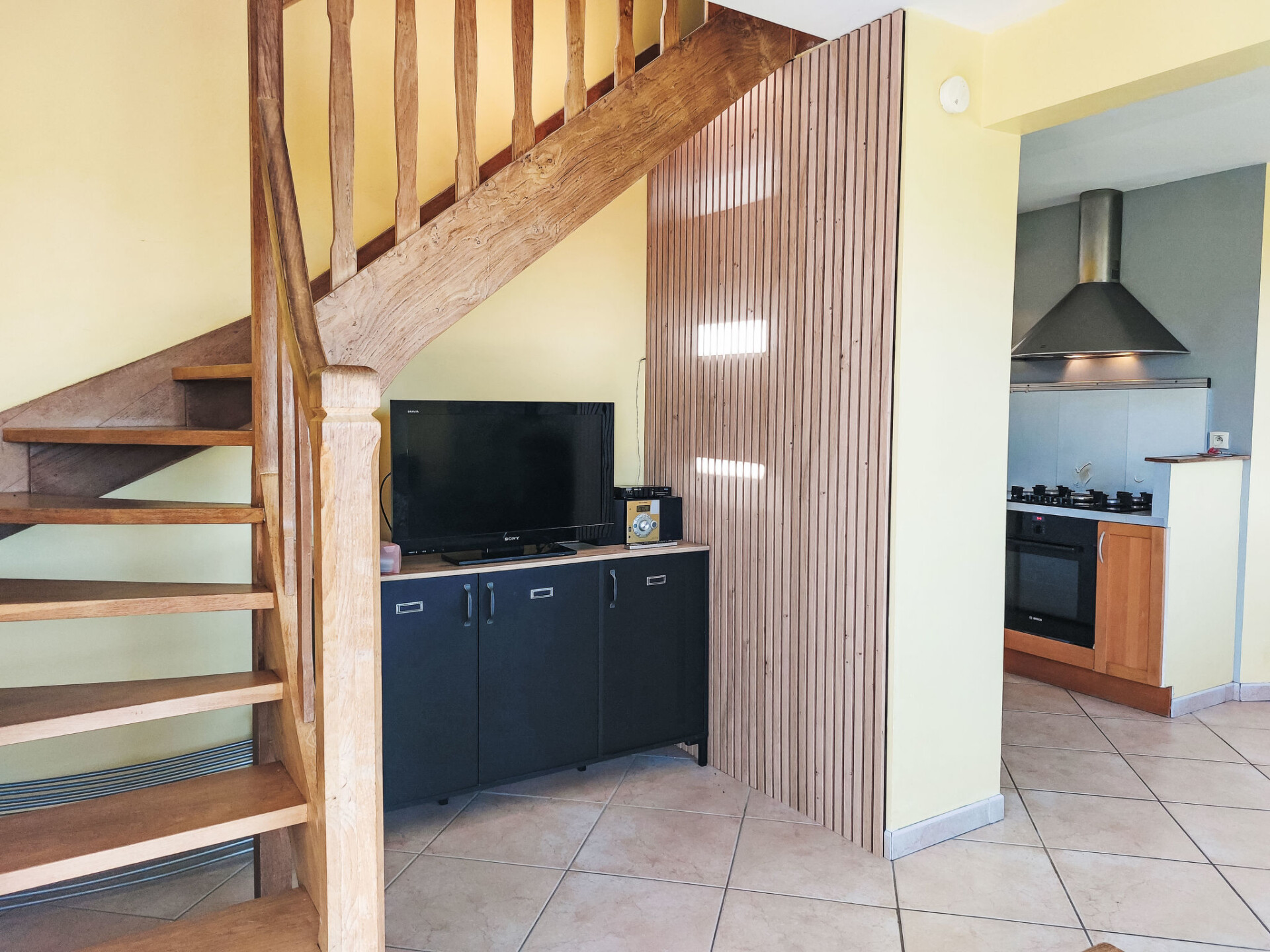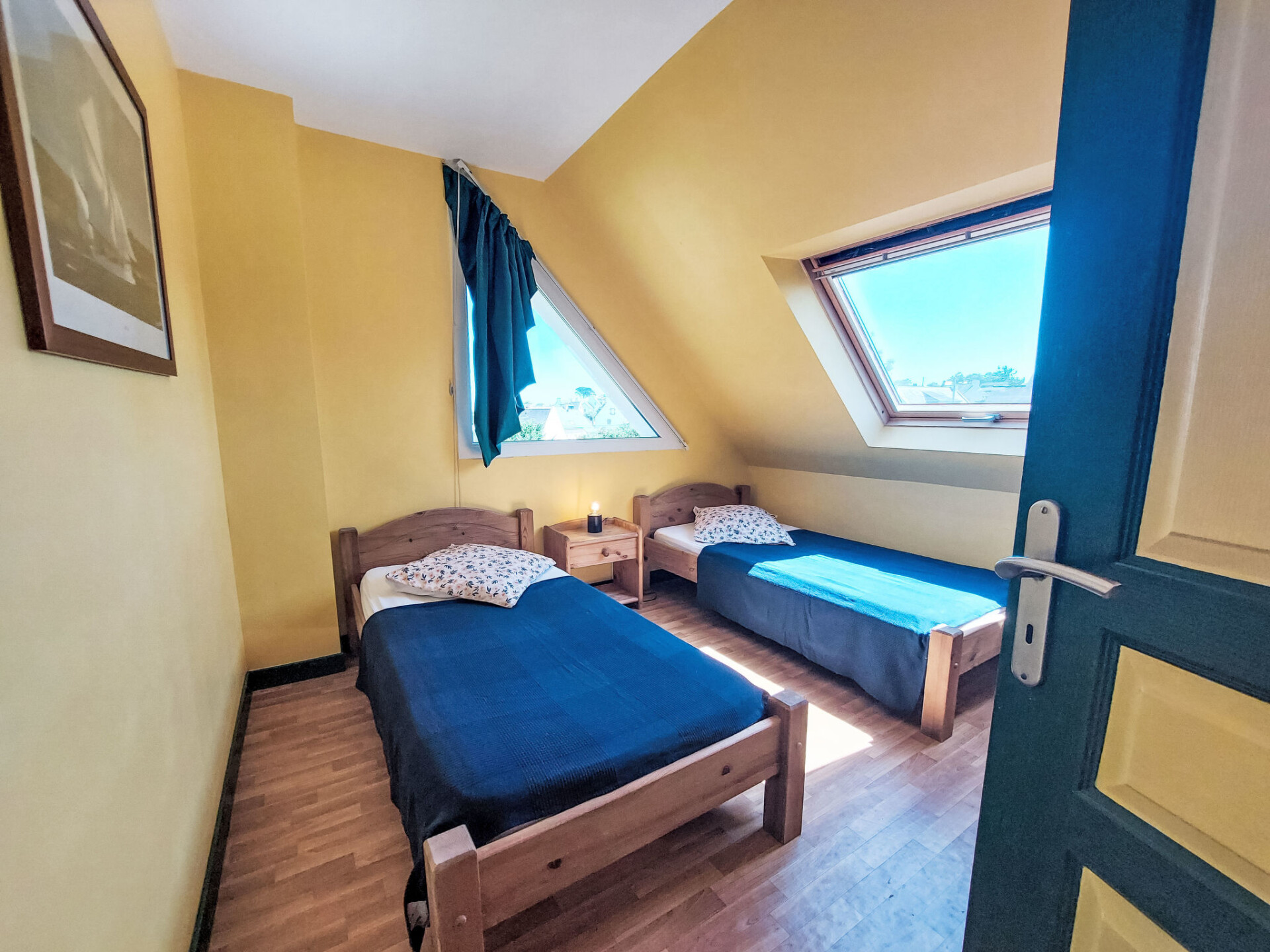 "de la Plage", huis 4-kamers 80 m2 op 2 verdiepingen. Mooi en gezellig ingericht: woon-/eetkamer met zwedenkachel, eettafel en Sat-TV (Flatscreen TV), stereo-installatie en DVD. Open keuken (oven, afwasmachine, 5 kookpitten (vlammen), broodrooster, waterkoker, magnetron, diepvriezer, elektrische koffiemachine). Uitgang naar de zitplaats in de tuin. Douche, aparte WC, dubbele wastafels. Bovenverdieping: 1 kamer met afgeschuinde daken met 1 2-pers bed (140 cm, lengte 190 cm). 2 kamers met afgeschuinde daken, elke kamer heeft 2 bedden (90 cm, lengte 190 cm). Elektrische verwarming. Terrasmeubelen, barbecue, ligstoelen (2). Ter beschikking: wasmachine, strijkijzer, kinderstoel, kinderbed. Rookvrij huis. Maximaal 1 huisdier/hond toegestaan. Rookmelders.