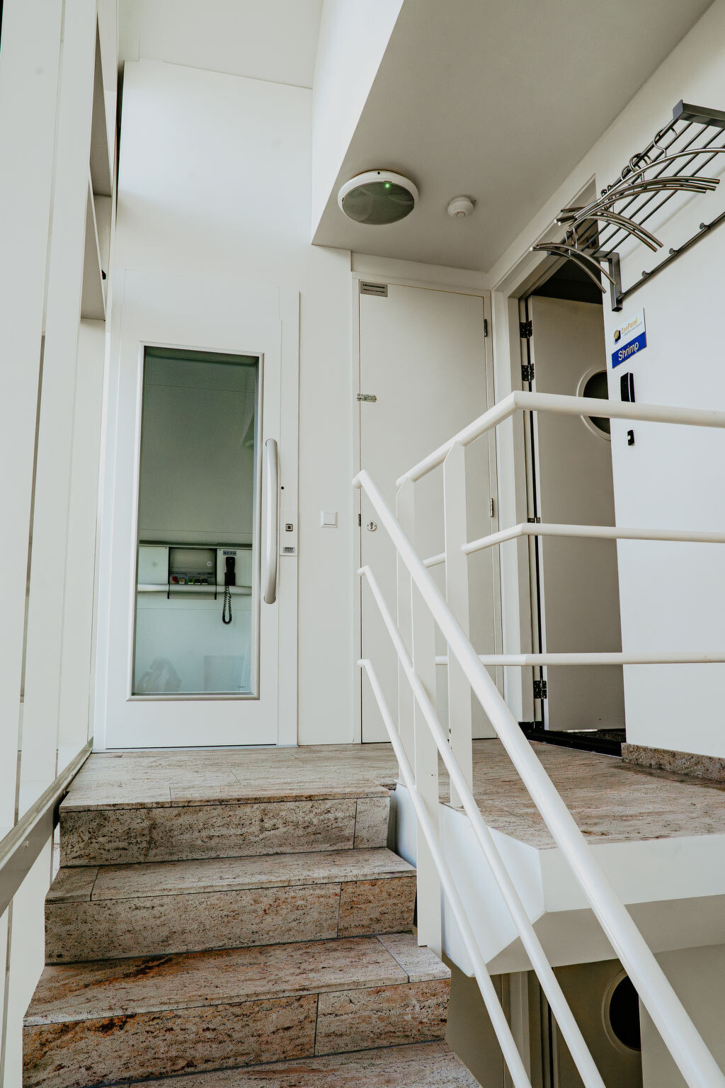 "Shrimp", appartement 4-kamers 210 m2 op de 2e verdieping. Licht, stijlvol ingericht: woon-/eetkamer met eettafel, internationale TV-zenders, Flatscreen TV en radio. Uitgang naar het balkon. 1 kamer met 1 bed. Open keuken (oven, afwasmachine, Gasfornuis, magnetron, elektrische koffiemachine). Douche, aparte WC. Verwarming. Bovenverdieping: met afgeschuinde daken, 1 2-pers. kamer met 2 bedden, bad/douche/bidet/WC en dubbele wastafels. 1 2-pers. kamer met 2 bedden. Groot balkon. Balkonmeubilair. Zeer mooi panoramazicht op zee. Ter beschikking: wasmachine, droger. Internet (WiFi, gratis). Rookvrij huis. Maximaal 2 huisdieren/honden toegestaan. Rookmelders. Deze accommodatie heeft het Green Key certificaat.