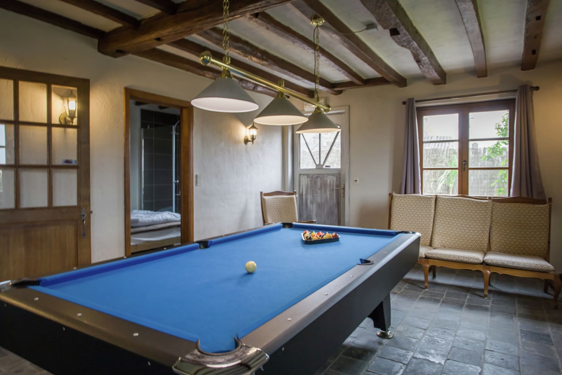 Dit vakantiehuis met 7 slaapkamers in Alveringem biedt comfortabel plaats aan maximaal 28 gasten en is ideaal voor familiebijeenkomsten, reünies of groepsuitjes. Verdeeld over meerdere verdiepingen combineert het huis comfort met plezier, met onder andere een biljarttafel, tafeltennistafel, tafelvoetbal en zelfs een sjoelbak. Jongere gasten kunnen genieten van de glijbaan, klimtoren en zandbak, terwijl volwassenen ontspannen in de sauna of verhalen delen in de privébar. Omringd door het rustige platteland van West-Vlaanderen biedt het huis directe toegang tot fiets- en wandelpaden. Geschiedenisliefhebbers zullen genieten van gemakkelijke uitstapjes naar Ieper en Diksmuide, waar musea en monumenten de erfenis van de Eerste Wereldoorlog delen. Gezinnen kunnen een dagje naar pretpark Plopsaland (18 km) plannen, Kasteel Beauvoorde (6 km) verkennen of de nabijgelegen dierentuin in Oostvleteren bezoeken. Ook uitstapjes naar de kust zijn vlakbij, met De Panne en Nieuwpoort op korte rijafstand, met zandstranden en uitzicht op zee. Na een dagje buiten kunt u heerlijk ontspannen in de omheinde tuin met barbecuefaciliteiten en voldoende zitgelegenheid. Gasten kunnen in de buurt genieten van regionale gerechten, zoals restaurants zoals De Schreve (2,2 km), waar lokale Vlaamse gerechten worden geserveerd. Een korte rit naar Veurne of Westvleteren brengt u naar meer eetgelegenheden en de beroemde Belgische biercultuur. Met kindvriendelijke voorzieningen, parkeergelegenheid op het terrein en gemakkelijke toegang tot de luchthaven Oostende-Brugge (32 km), combineert dit huis ontspanning, recreatie en ontdekking, waardoor uw verblijf vanaf het eerste moment onvergetelijk wordt.