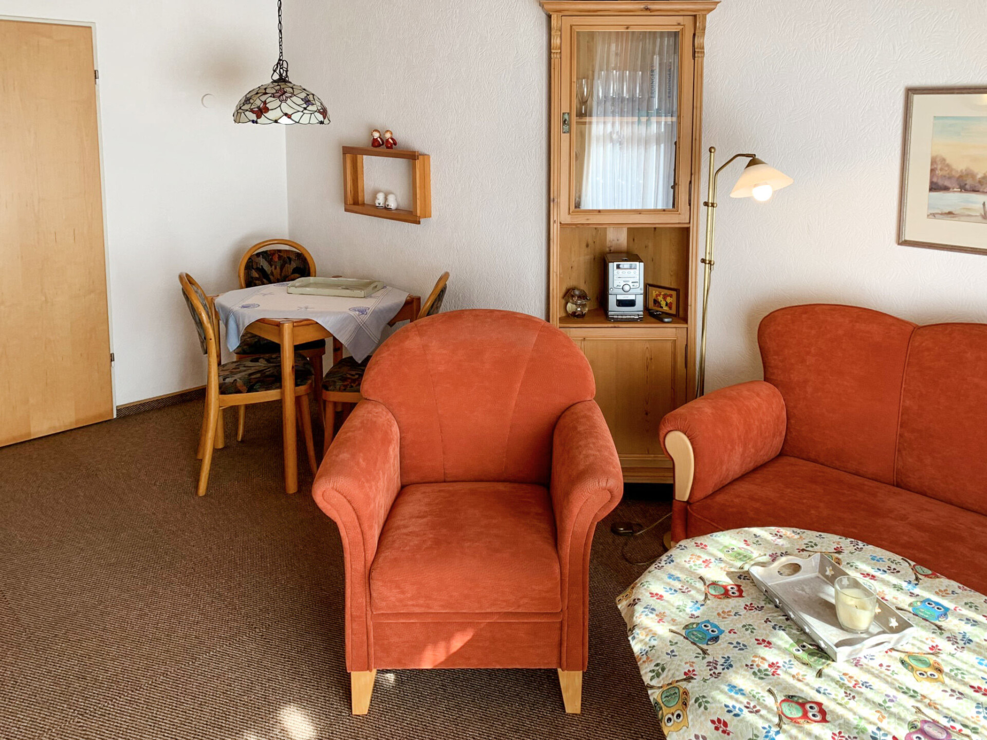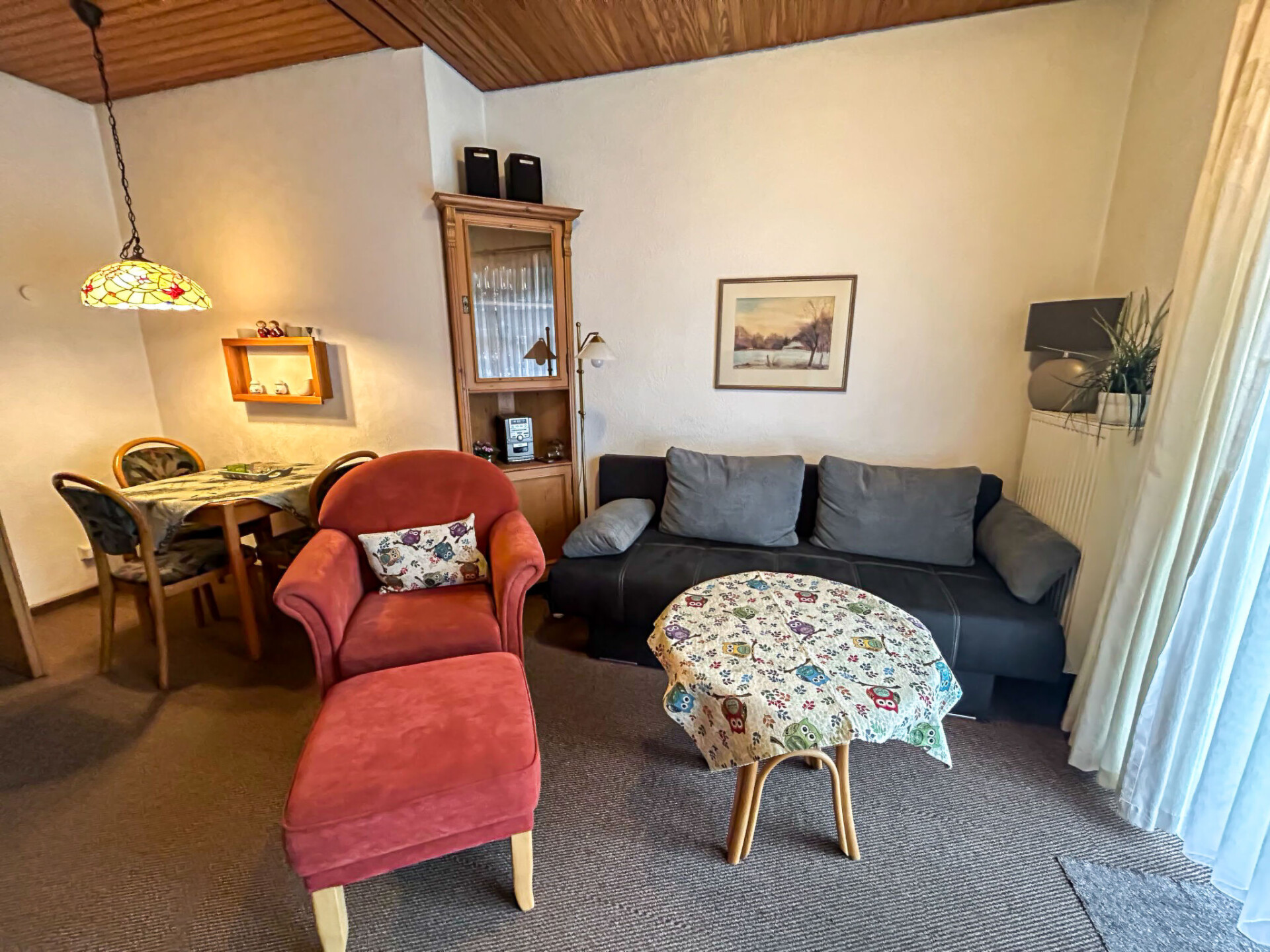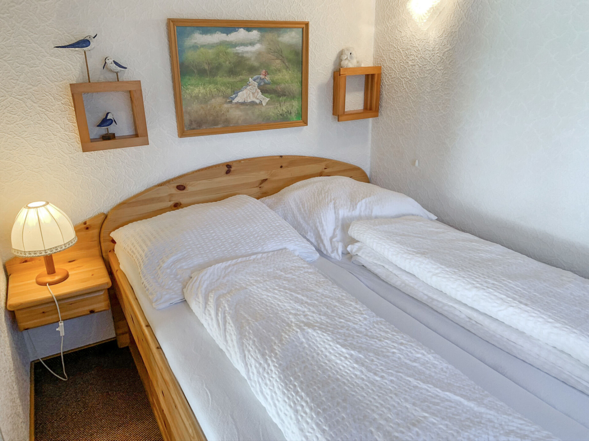 Appartement 2-kamers 35 m2, op de begane grond. Gezellig ingericht: woon-/eetkamer 15 m2 met Digitale TV, Flatscreen TV en stereo-installatie. Uitgang naar het terras. 1 kamer 8 m2 met 1 2-pers bed (2 x 80 cm, lengte 200 cm). Kookhoek (2-pits kookplaat, broodrooster, waterkoker, magnetron, elektrische koffiemachine). Douche/WC. Terras. Terrasmeubelen. Ter beschikking: telefoon (extra), kinderstoel (extra), haardroger. Koelkast zonder vriesvak, niet rokers woning. Rookmelders.