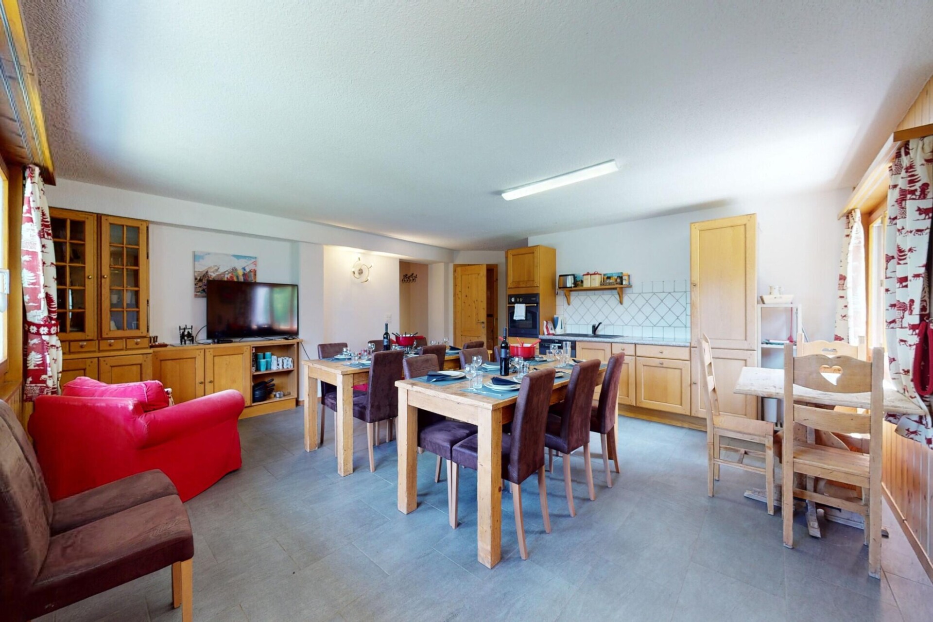 Binnen is de lichte woonkamer voorzien van wifi en een tv voor entertainment, terwijl de open keuken volledig is uitgerust met moderne apparatuur, waaronder een fonduepan, voor moeiteloos koken. Drie comfortabele slaapkamers met flexibele bedden zorgen voor een goede nachtrust. Huisdiervriendelijk en gunstig gelegen nabij winkels, met winterparkeergelegenheid bij de kabelbaan, combineert dit chalet perfect comfort, gemak en avontuur.