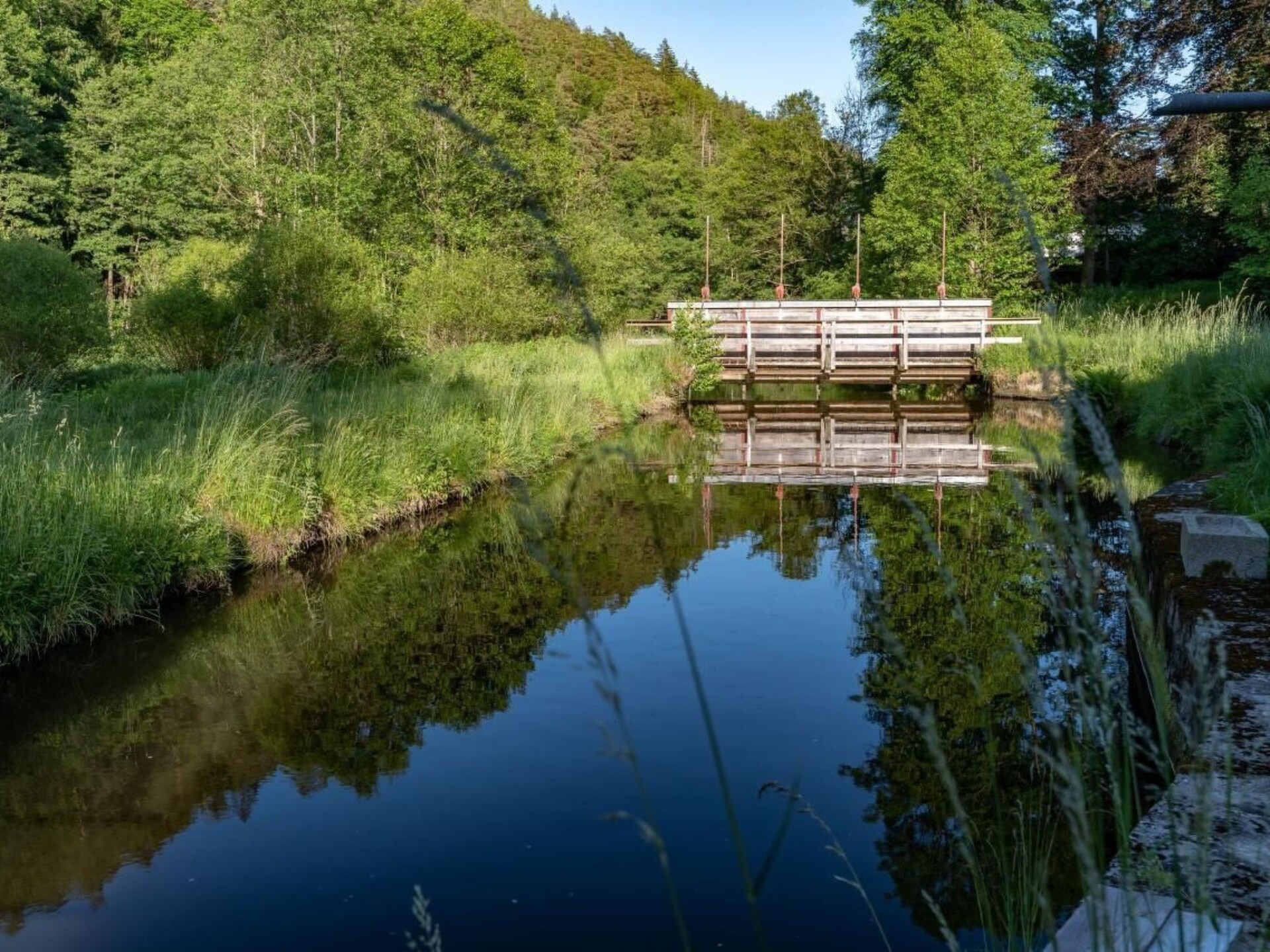Time out in Mittermurnthal - MODERN - MINIMALIST .... Guests at the Mittermurnthal holiday flat in the Upper Palatinate Forest Nature Park can expect an exciting setting of green parkland, industrial relics and minimalist design. The flat is surrounded by meadows and forests on the site of a former glass grinding and polishing works directly on the Schwarzach river in the wildly romantic Murnthal. The region used to be an important location for glass grinding, an industry that has long since died out. Today you can enjoy peace and nature here. Hikers, cyclists, anglers and nature lovers come here to enjoy their sporting activities. The listed property is a three-sided complex consisting of a residential building from 1913, a former glass warehouse and a former foreman's building. The 100 square metre holiday flat on the ground floor of the villa is accessed via a wooden staircase from the courtyard. The comfortable furnishings and the purist, straightforward interior design contrast with the morbid charm of the exterior. We have renovated a spacious, luxurious holiday flat for two people on the ground floor of the historic villa. The interior of the listed building has been furnished with modern design, while the exterior has retained its morbid charm.The holiday flat has 100 m², a high-quality kitchen with induction hob, microwave with grill and convection oven, dishwasher, coffee pod machine, WiFi, TV, bedroom with shower and WC, underfloor heating, ecological building materials, terrace, garden and much more.Large terrace, 1.5 ha garden with parkland and meadows, garden furniture, deckchairs. Neighbouring hiking trail and cycle pathWe offer psychotherapeutic walks and talks as individual or couple therapy for seekers and people seeking reflection or reorientation. Psychotherapeutic consultations with a medical psychotherapist - support for burnout holidaymakers - to be arranged on site - price on (private account)The world heritage city of Regensburg, historic Nuremberg, nearby Bohemia, Pilsen or Prague are popular destinations for excursions and discoveries.Sports activities in the surrounding area: fishing, mountain biking, cycling, hiking