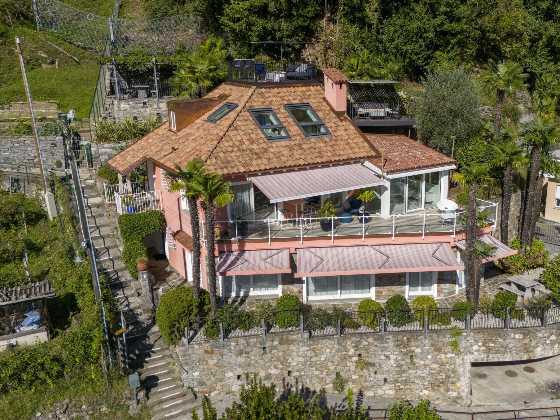 Locarno Solduno 2 km van Locarno: Mooi, comfortabel Huis met 2 woningen "Il Soldunese", 250 m boven zeeniveau, van 3 verdiepingen, vrijstaand, bouwjaar 1988, gerenoveerd in 2025, omgeven door bomen, velden en wijngaarden. In het centrum van Solduno Nucleo, rustige, zonnige ligging tegen een helling, gebied met weinig verkeer, 50 m van de bosrand, 3 km van het meer, te midden van groen, op het zuiden. Voor medegebruik: verzorgde tuin op verschillende niveaus, 400 m2 planten en bomen. Voor alleengebruik: buitendouche, patio, terras (40 m2), tuinmeubelen. In het huis: centrale verwarming, air-conditioning. Trappenweg (30 treden) naar het huis. Openbare parkeerplaatsen 500 m. Winkel, levensmiddelenwinkel 500 m, bushalte "Solduno (Linie 7)" 500 m, treinstation "Solduno (Linie Centovalli Bahn)" 500 m, zandstrand "Lido di Ascona" 3 km kiezelstrand 1 km, stenenstrand "Maggia", thermaalbad "Termali & Salini, Locarno" 3 km. Jachthaven 3 km, golfterrein (18 holes) 2 km. Laden en lossen van de baggage is mogelijk bij het huis. Eigenaar woont in apart huisgedeelte.