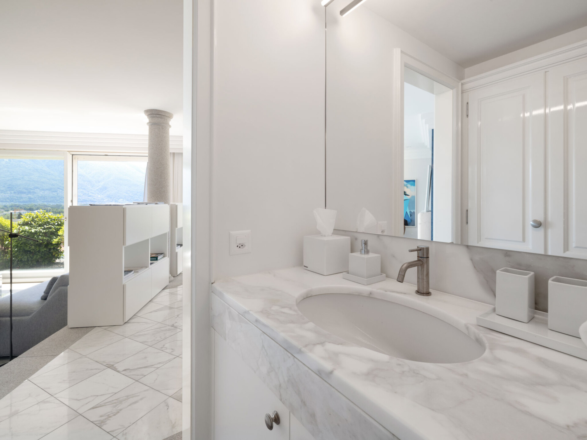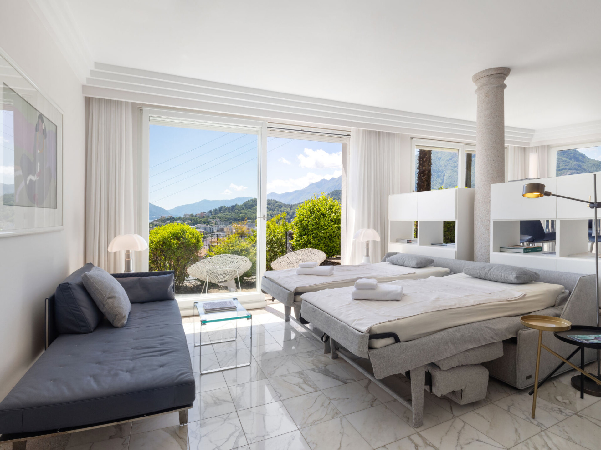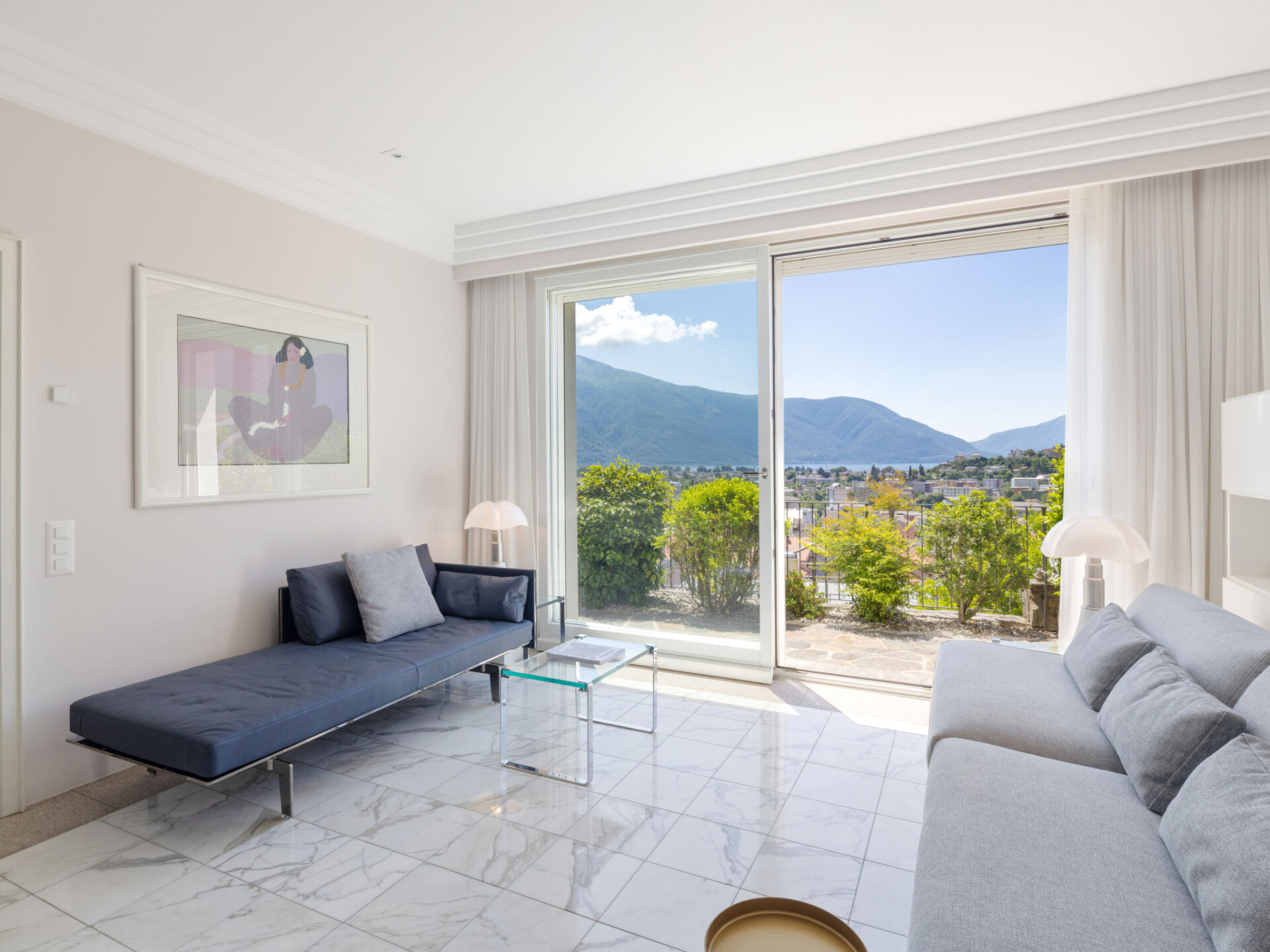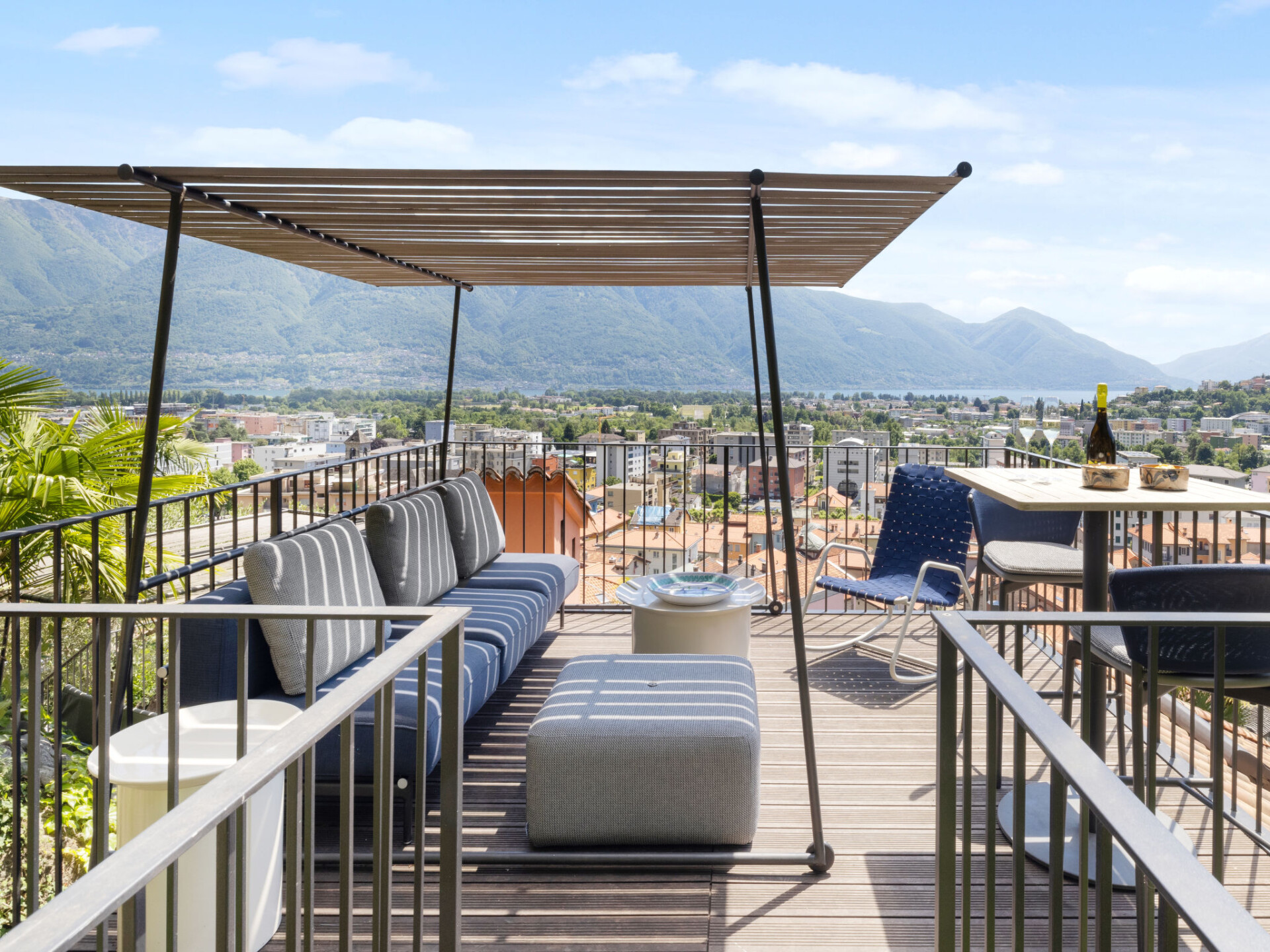 "Designer Ferienwohnung Il Soldunese", appartement 3-kamers 70 m2, op verhoogde begane grond, op het zuiden gelegen. Het objekt is geschikt voor 2 volwassenen + 2 kinderen. Licht, volledig gerenoveerd in 2025, comfortabel en luxueus ingericht: open woon-/eetkamer met 1 2-pers divanbed (2 x 90 cm, lengte 200 cm), internationale TV-zenders en Flatscreen TV. Uitgang naar het terras, naar de zitplaats in de tuin. 1 kamer met 1 2-pers bed (2 x 90 cm, lengte 200 cm). Uitgang naar het terras, op het zuiden. Open keuken (oven, afwasmachine, 4 keramische glas kookplaten, broodrooster, waterkoker, elektrische koffiemachine, pads voor de koffiemachine (Nespresso) extra). Uitgang naar het terras. Douche/WC, douche/bidet/WC. Air-conditioning, vloerverwarming. Verwarming alleen beschikbaar van 01.10. tot 30.04. Natuurstenen vloeren. Groot terras 40 m2, op het zuiden gelegen. Terrasmeubelen, balkonmeubilair. Mooi panoramazicht op het meer, het landschap en de plaats. Ter beschikking: wasmachine, kinderbed tot 2 jaar (extra), haardroger. Internet (WiFi, gratis, Bandbreedte: 200 Mbit/s). Niet rokers woning. NL-00012453