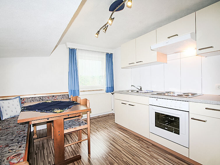 Appartement 3-kamers 65 m2 op de 2e verdieping. Afgeschuinde daken, rustiek en gezellig ingericht: hal met afgeschuinde daken, hoogte van het plafond 175 - 220 cm. 1 2-pers. kamer. 1 kamer met 1 bed en 1 2-pers bed. Woonkeuken (4-pits kookplaat, oven, magnetron, elektrische koffiemachine) met eethoek en Sat-TV. Douche/WC. Uitzicht op het landschap. Ter beschikking: haardroger. Niet rokers woning. Rookmelders. Eerste verdieping, balkon voor medegebruik.