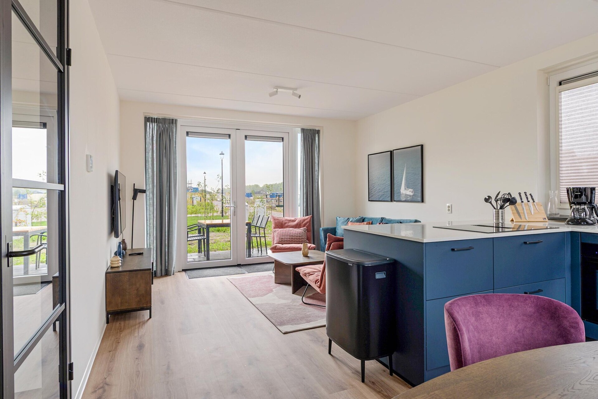 Binnen vindt u een lichte woonkamer met een smart-tv om te streamen, een comfortabele zithoek en een eetgedeelte, perfect voor gezamenlijke maaltijden. De luxe open keuken is van alle gemakken voorzien, waaronder een combi-oven, vaatwasser, filterkoffiezetapparaat, capsulekoffiezetapparaat en een koelkast met vriesvak. De ruimte nodigt uit tot ontspanning en culinaire creativiteit.