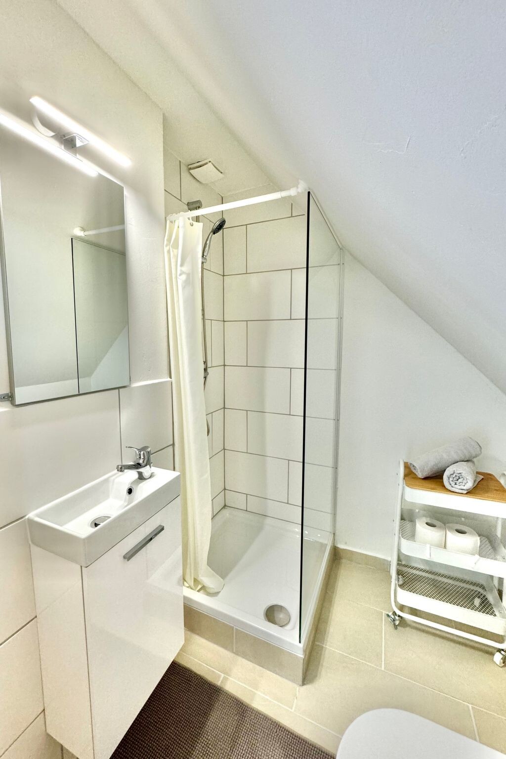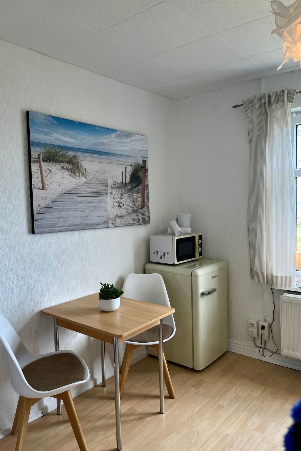Welcome to our accommodation "Haus Nordstern Ferienwohungen", which is located directly behind the dyke in California/Schönberg on the Baltic Sea. You will be delighted with the location of this accommodation, as the 14 km long sandy beach is right on the doorstep.Our accommodation offers you direct access to one of the most beautiful beaches on the Baltic Sea. You can enjoy the fresh sea air, relax in the sun, swim in the clear water or take long walks along the beach. The long sandy beach invites you to enjoy cosy picnics, build sandcastles or simply relax.The location behind the dyke not only offers you a spectacular view of the sea, but also a quiet and relaxed atmosphere. Here you can listen to the sound of the waves and enjoy the beauty of nature to the full.Right next door is a row of shops where you can find all the essentials for your stay. There is a regional bakery, a fish snack bar, a snack bar, an ice cream café and a souvenir shop. So you can easily stock up on tasty snacks, fresh baked goods and regional specialities or take a souvenir or two home with you.California/Schönberg and the surrounding region offer a wide range of leisure activities. You can go on bike tours along the coast, take trips to nearby nature reserves or explore the charming coastal towns. There are also various restaurants, cafés and shops where you can sample regional specialities.Our accommodation is designed to offer you a pleasant and unforgettable stay. The holiday apartments are newly renovated in 2023 and individually furnished.We look forward to welcoming you as our guests and offering you an unforgettable stay in our accommodation directly behind the dyke in California/Schönberg on the Baltic Sea. Please do not hesitate to contact us with any questions or to make your booking.Welcome to our cosy room "Koje" on the 1st floor with sea view. This small but charming room offers you a wonderful atmosphere and a breathtaking view of the Baltic Sea. It is the perfect place to relax and enjoy the beauty of the surroundings.The room is tastefully decorated and has a comfortable seating area so you can sit back and enjoy the view of the sea in peace. A television is also available if you like to be entertained.For your culinary needs, there is a fridge in which you can store food and drinks. A microwave and kettle allow you to prepare small meals or make yourself a cup of tea or coffee whenever you like.The separate WC offers you privacy and comfort. It is conveniently accessible directly from the room and ensures that you have your own toilet that is only used by you.The shower is located in the corridor and is for your exclusive use. Although it is not directly in the room, it is only a short walk away and offers you the opportunity to freshen up and shower.This accommodation has its own car parking space, WLAN access and a lockable bicycle room.