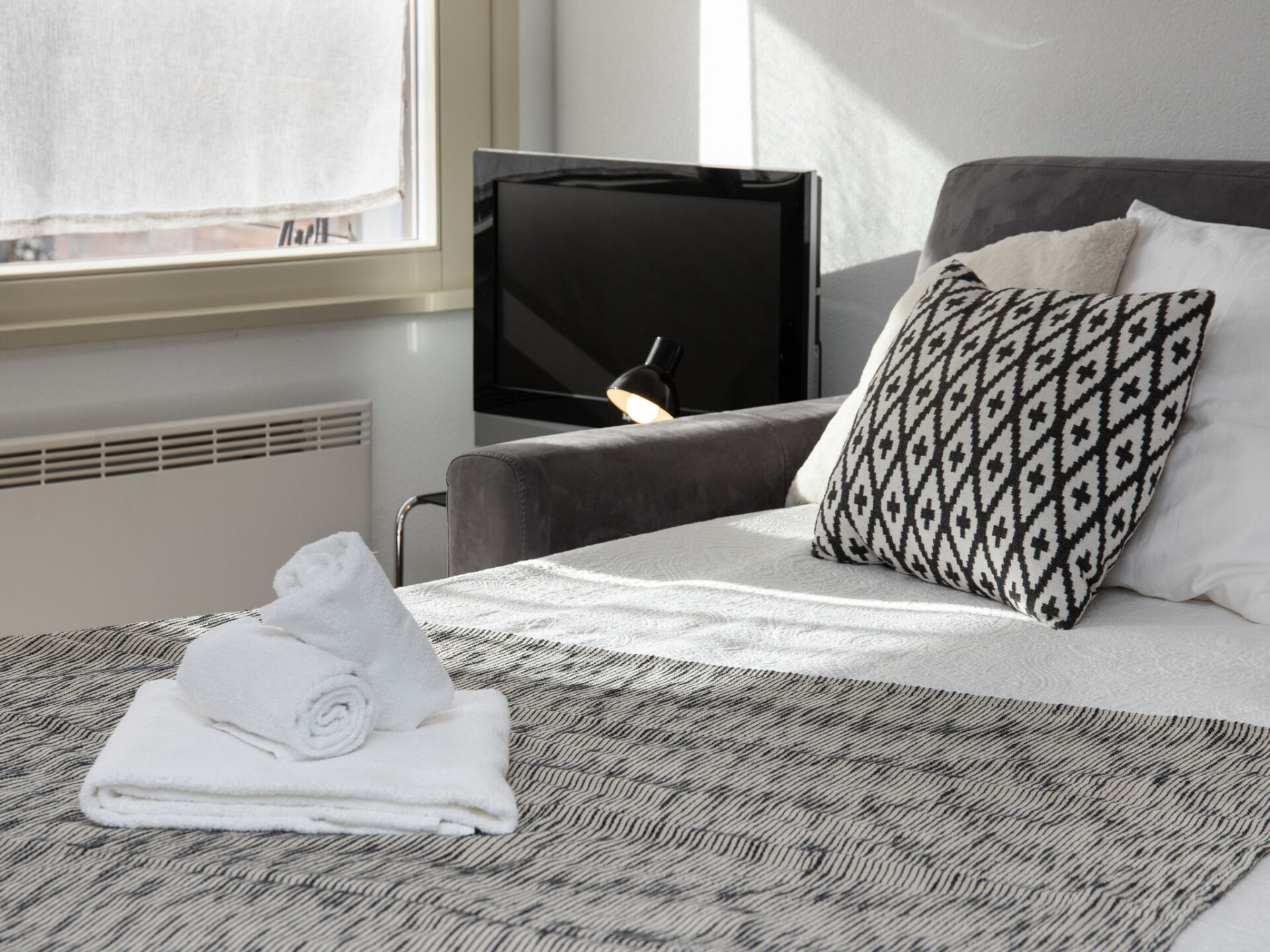 "Diure 0113", studio 1-kamer 30 m2, op de begane grond. Volledig gerenoveerd in 2017, comfortabel en mooi ingericht: woon-/eetkamer met 1 2-pers divanbed (1 x 160 cm, lengte 200 cm), Kabel-TV en elektrische verwarming. Uitgang naar de tuin. Kookhoek (afwasmachine, 4 keramische glas kookplaten, broodrooster, waterkoker, magnetron, elektrische koffiemachine, fondue Set (kaas)). Badkamer. Groot terras, gazon. Terrasmeubelen. Zeer mooi uitzicht op de bergen. Ter beschikking: haardroger. Internet (WiFi, gratis). Niet rokers woning, geen parkeerplaats. Maximaal 1 huisdier/hond toegestaan.