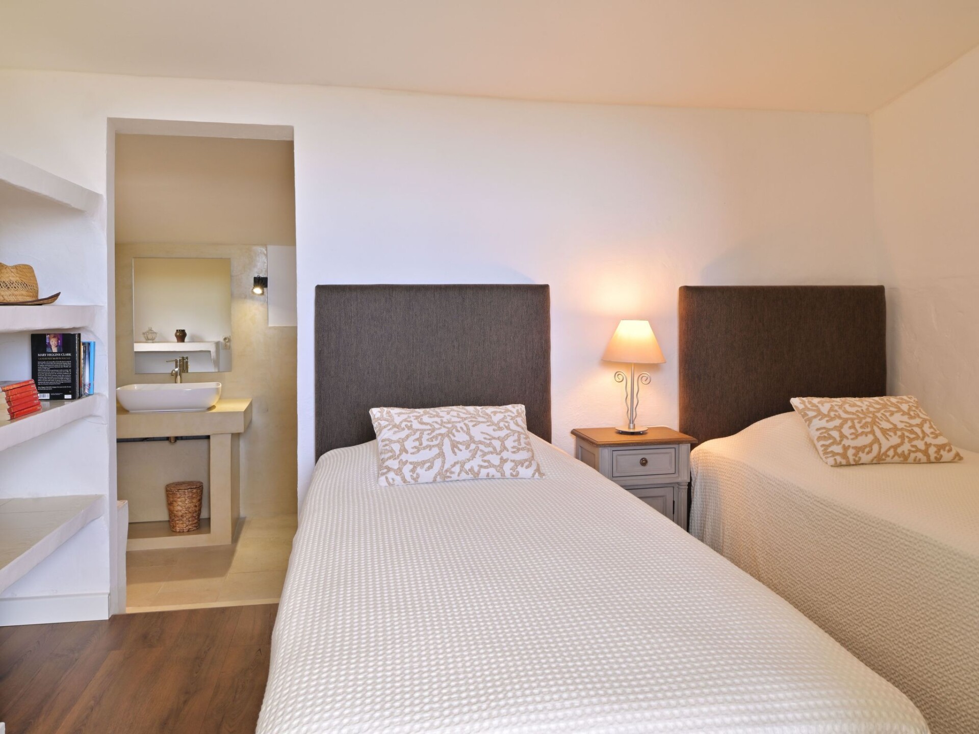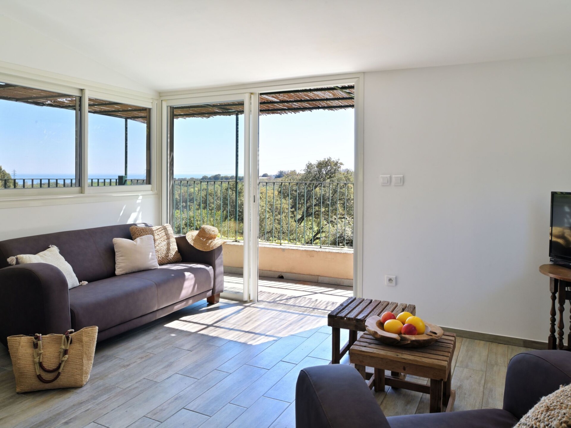 Maximaal 2 huisdieren/honden toegestaan. Welcome to the Punta della Guardia estateImmerse yourself in a unique estate on the Costa Verde, where each house offers not only comfort and privacy but also a breathtaking view of the sea and the Tyrrhenian islands. Set in the heart of nature, close to the historic village of Cervione, these beautiful, comfortable homes promise an enchanting stay, backed by over 40 years of excellent service. The family-run estate ensures that all visitors find a peaceful and perfect place for a holiday with family or friends, away from the hustle and bustle of everyday life.This light-filled, partially air-conditioned 70m2 house is designed for maximum comfort. The interior features a first bedroom with its own entrance from the covered terrace overlooking the sea, a double bed (140cm) and a private shower room/WC with washing machine and wardrobe. The second and third bedrooms have two beds (90*200) that can be twinned on request, and direct access to their own shower rooms. The modern open-plan kitchen is fully equipped, while the living/dining room offers a convivial space with satellite TV, sofa and table for six, all opening onto a main terrace that invites you to gaze out over the garden and mountains.Outside, the partially covered terraces feature garden furniture, sun loungers and a barbecue, providing the ideal setting for al fresco dining or relaxing in the sun while enjoying views of the garden, surrounding countryside and sea. The closeness to nature is palpable, with trees, olive groves and maquis surrounding these magnificent residences, creating a serene and picturesque atmosphere.The environment of the estate, with its privileged position facing the Tyrrhenian islands and close to charming Cervione, offers a multitude of activities and sites to explore. Whether it's a walk in the maquis, a cultural visit or a swim in the crystal-clear waters of the coast, this region promises unforgettable memories for all its visitors.Choosing these residences for your holiday means opting for a unique experience combining luxury, comfort and immersion in the natural beauty of the Costa Verde. Every effort is made to guarantee an unforgettable stay, whether you want to recharge your batteries in complete tranquillity or share precious moments with loved ones. Come and experience an exceptional escape under the stars, in lush greenery and facing the sea. FRA2024COR