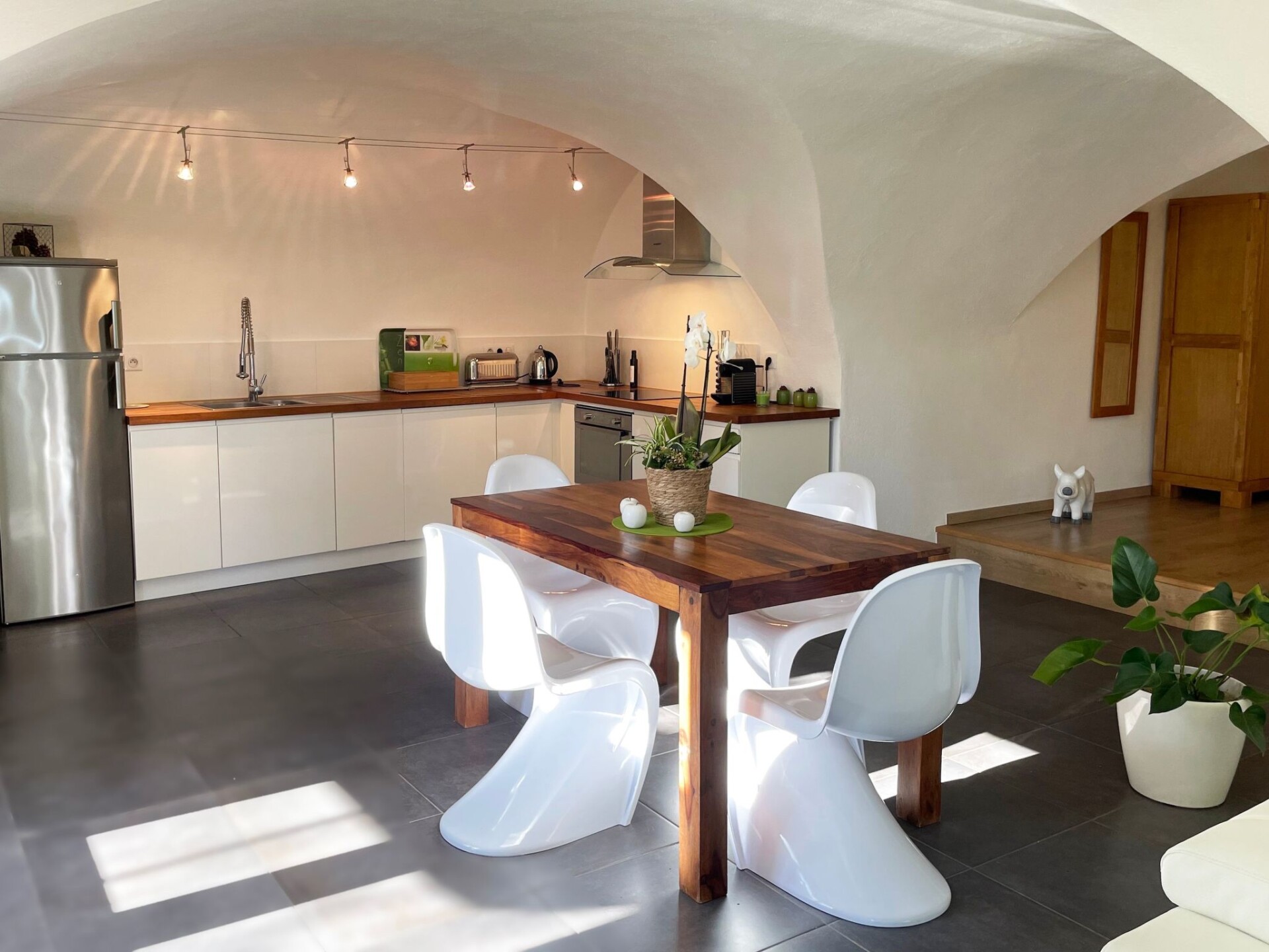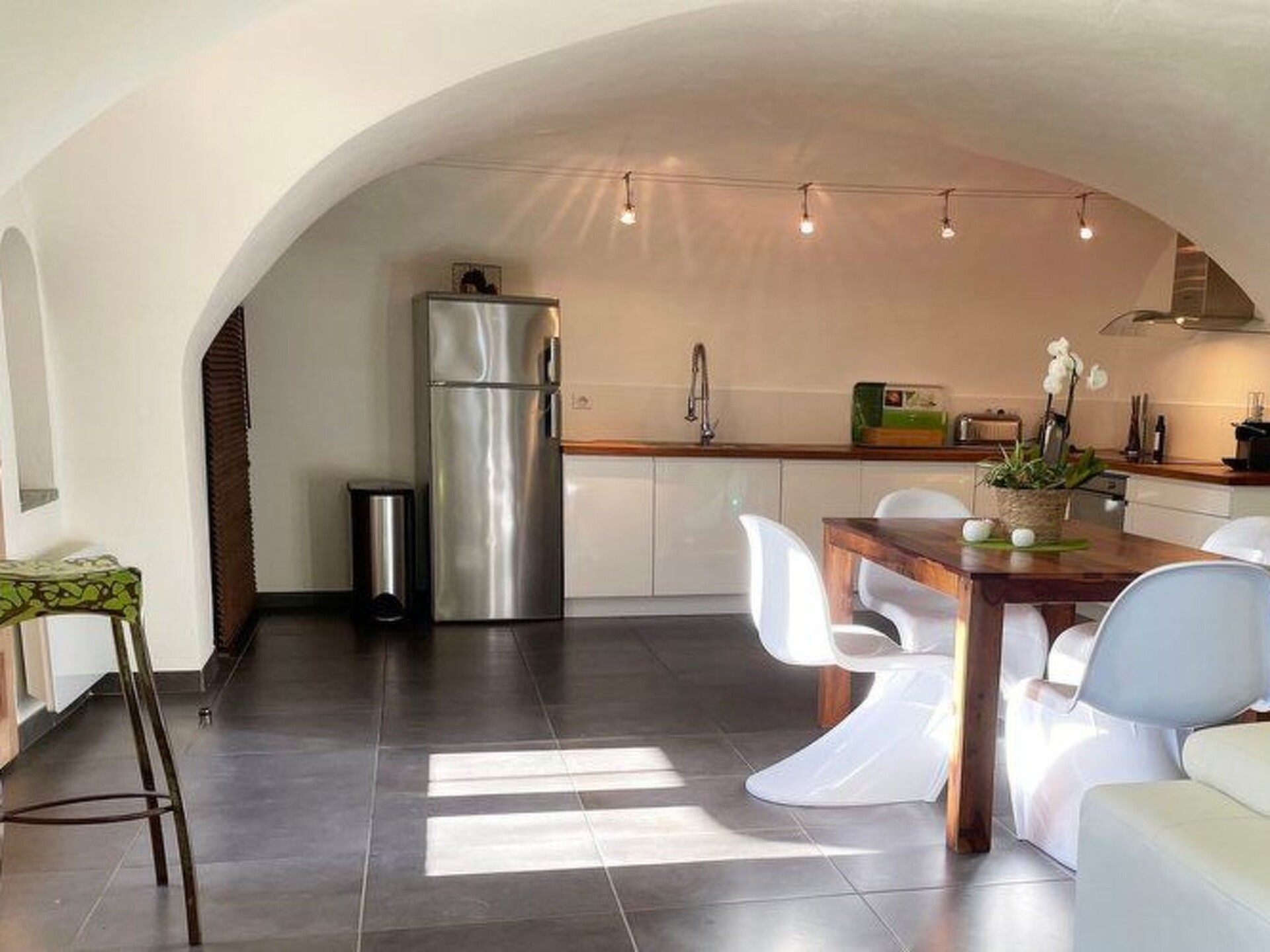 In the heavenly setting of Domaine de Monteils, a former priory that has been completely renovated, this 105 m2 loft-style flat has a lovely view over the estate's grounds. The estate and its grounds are located in Carnas, between Nîmes and Montpellier near Sommières, surrounded by vineyards in a heavenly setting.Entire accommodation: 1 bedroom with round queen-size bed, fully-equipped kitchen, bathroom with shower + bath, separate toilet, bright living room. Superb terrace with private spa and views over the park.A huge pool area shared by all 7 Domaine de Monteils flats.Le Rêve d'Evan is part of a small private hamlet: Le Domaine de Monteils, comprising 7 gites, all for 2 people. It's a very old 9th-century priory that has been completely renovated and converted into top-of-the-range designer tourist accommodation.The Domaine is nestled in a 5-hectare Mediterranean park, in absolute peace and quiet, and the atmosphere is always very Zen. Ideal for a romantic holiday for two. DE19-1630