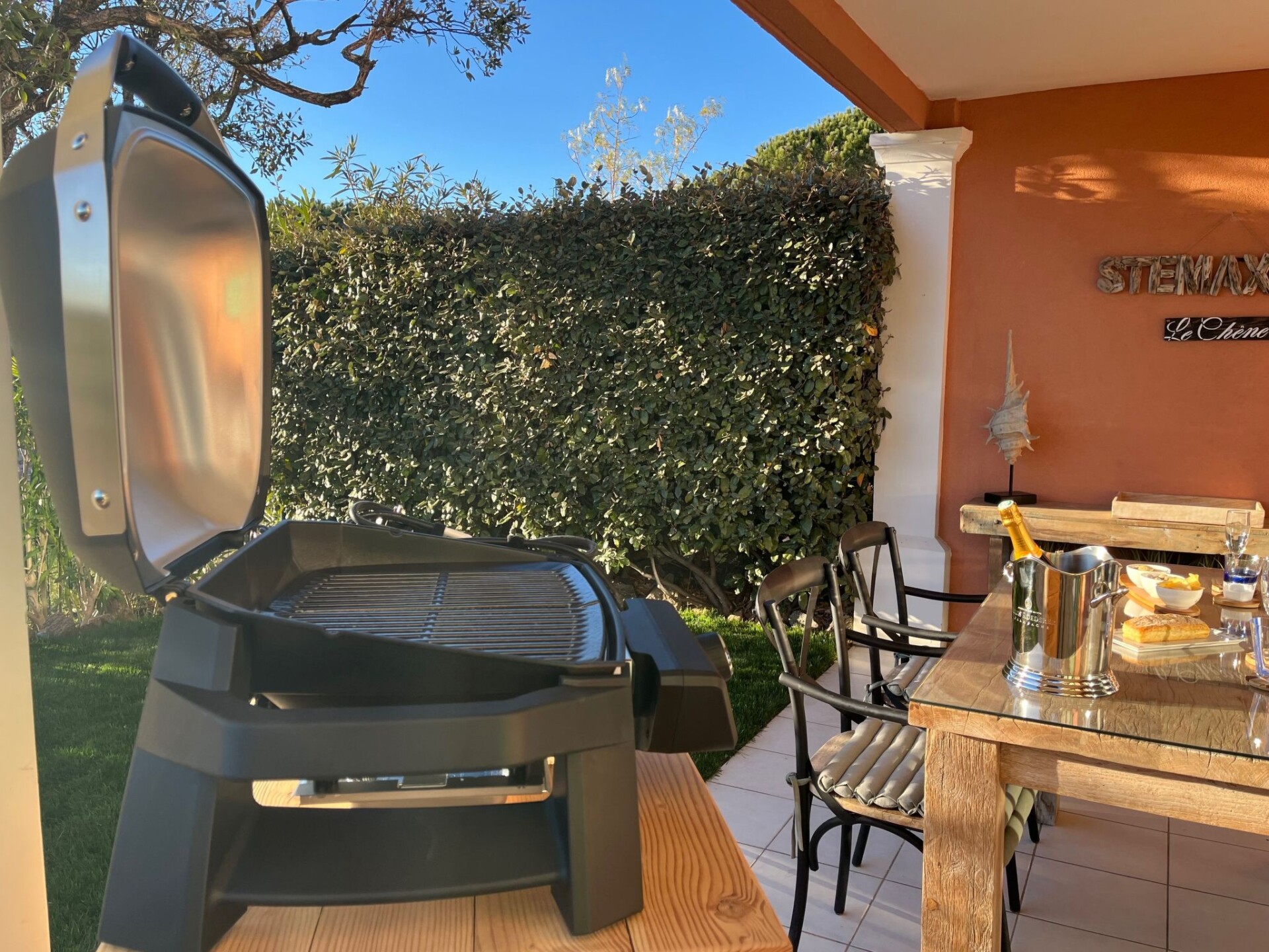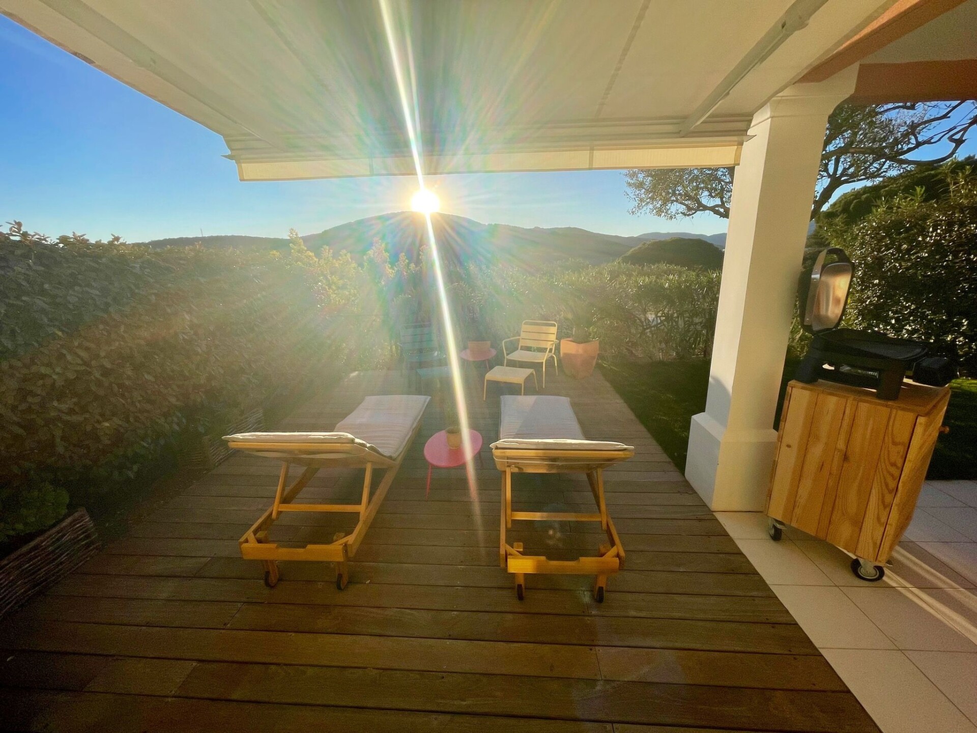 Superb 4-star flat, 45 m², south-facing, unoverlooked, in a secure luxury residence (non-touristy), 5 minutes from the town centre/beaches.🏡 2 terraces (shaded + sunny), enclosed garden, magnificent view of the Massif des Maures.🛏️ Bedroom bed 160 cm + sofa bed 140 cm.🍴 Fitted kitchen (dishwasher, Nespresso, washing machine dryer...).🛜 Unlimited WiFi, TV, mosquito nets, air conditioning in every room.🚘 Private parking, beach/city shuttle, communal swimming pool, electric bikes for hire.📍 Quiet, close to amenities: bakery (150 m), supermarket (400 m), cinema, Aqualand...✅ Ideal for a comfortable, peaceful holiday, close to everything! 83115000660AK