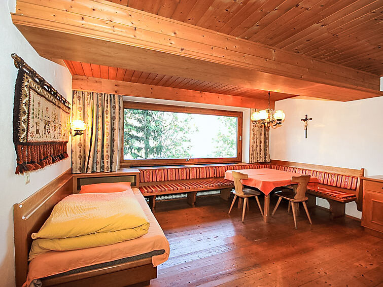 Appartement 3-kamers 60 m2, op de begane grond. Ruim, eenvoudig ingericht: hal. 1 2-pers. kamer. 1 kamer met 2 bedden. Woonkamer met 1 divanbed, eethoek en Sat-TV. Kookhoek (4-pits kookplaat, oven, afwasmachine). Badkamer, aparte WC. Zithoek in de tuin. Zeer mooi uitzicht op de bergen en het dal. Ter beschikking: Internet (Internet (WiFi), gratis). Niet rokers woning. Maximaal 2 huisdieren/honden toegestaan. Privé ingang. Door de ligging is het appartement koel in de zomer. Huisdieren zijn alleen in de zomer toegestaan. Geen huisdieren in de winter.