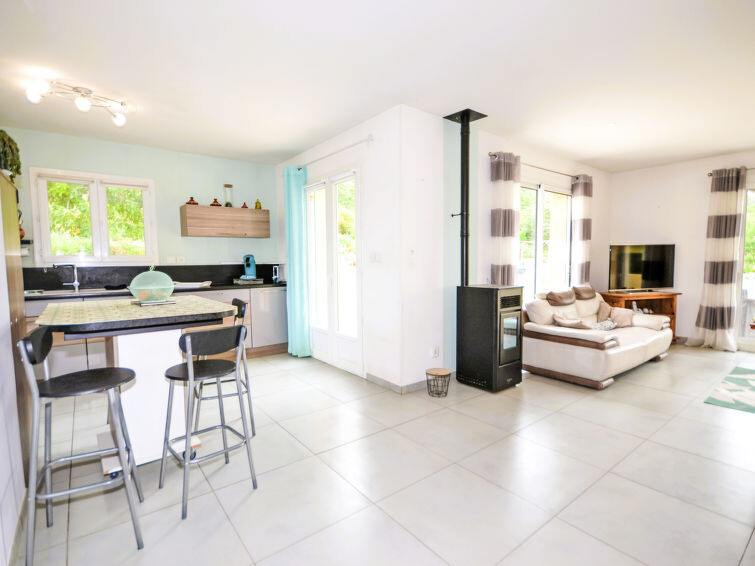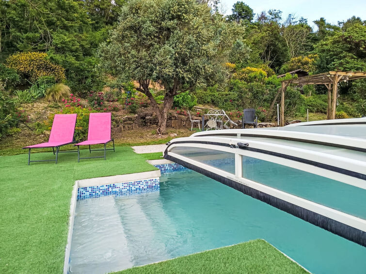 Huis in een rij 3-kamers 105 m2. Mooi ingericht: woon-/eetkamer 25 m2 met zwedenkachel en TV (Flatscreen TV), air-conditioning en elektrische rolluiken. 1 kamer met 1 2-pers bed (160 cm, lengte 200 cm), elektrische rolluiken. 1 kamer met 1 2-pers divanbed (140 cm, lengte 190 cm), 1 2-pers bed (140 cm, lengte 190 cm), elektrische rolluiken. Open keuken (oven, afwasmachine, 3 inductiekookplaten, broodrooster, waterkoker, magnetron, elektrische koffiemachine, pads voor de koffiemachine (Senséo) extra). Bad/douche, aparte WC. Elektrische verwarming. Terras 40 m2 gedeeltelijk overdekt, op het zuiden gelegen. Terrasmeubelen, ligstoelen (4). Zeer mooi uitzicht. Ter beschikking: wasmachine, droger, strijkijzer, klamboe. Internet (WiFi, gratis). Rookvrij huis. Maximaal 1 huisdier/hond toegestaan. Rookmelders. Aanbod door een particulier volgens art. 155, IV van CGI.