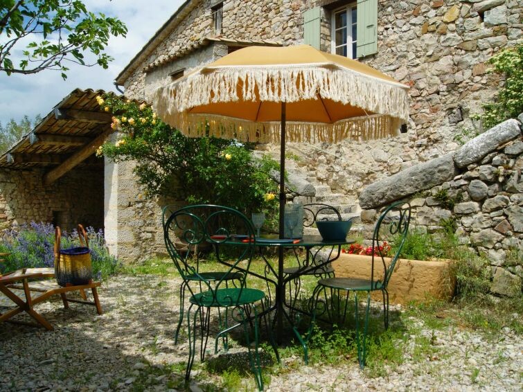 Besignan 11 km van Buis les Baronnies: Het stenen rijtjeshuis "La maison du Brun" ligt in een gehucht met 4 huizen en is omgeven door bomen. Rijtjeshuis "Du Brun", omgeven door bomen. In een gehucht met 4 huizen, buiten de plaats, 5 km van het centrum, geïsoleerde, rustige ligging, te midden van groen. Voor alleengebruik: verzorgde tuin met planten en bloemen, parkeerplaats op het terrein. Winkel 11 km, levensmiddelenwinkel 5 km, supermarkt 11 km, restaurant 5 km, bushalte "Mirabel-aux-Baronnies Mairie" 29 km, openluchtzwembad 11 km. Manege 3 km. Attracties in de buurt: Via ferrata, Mont Ventoux 50 km. Wandelgebied le Lubéron. Auto noodzakelijk. Tegenover het huis is een schuur.