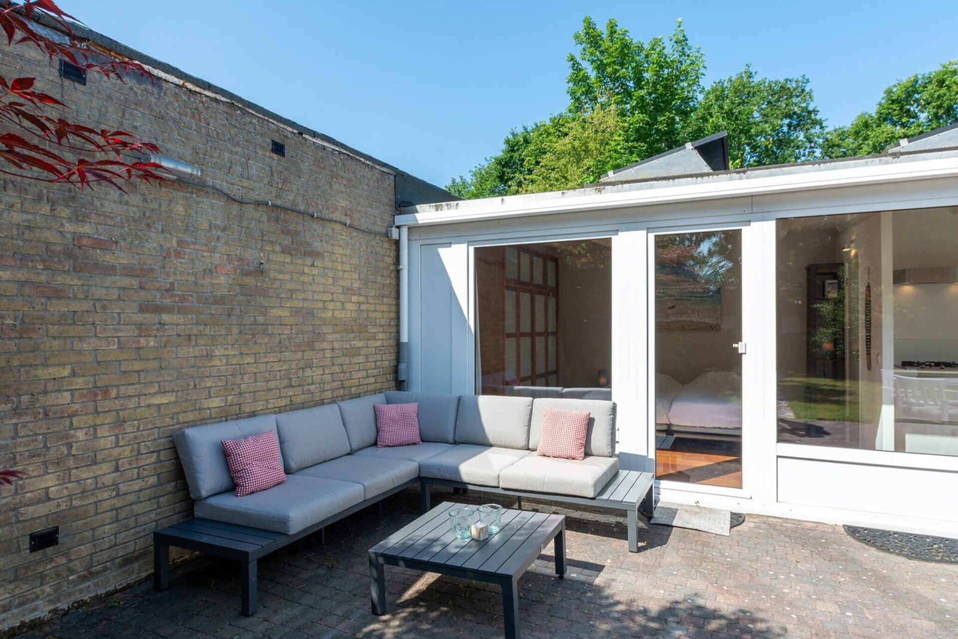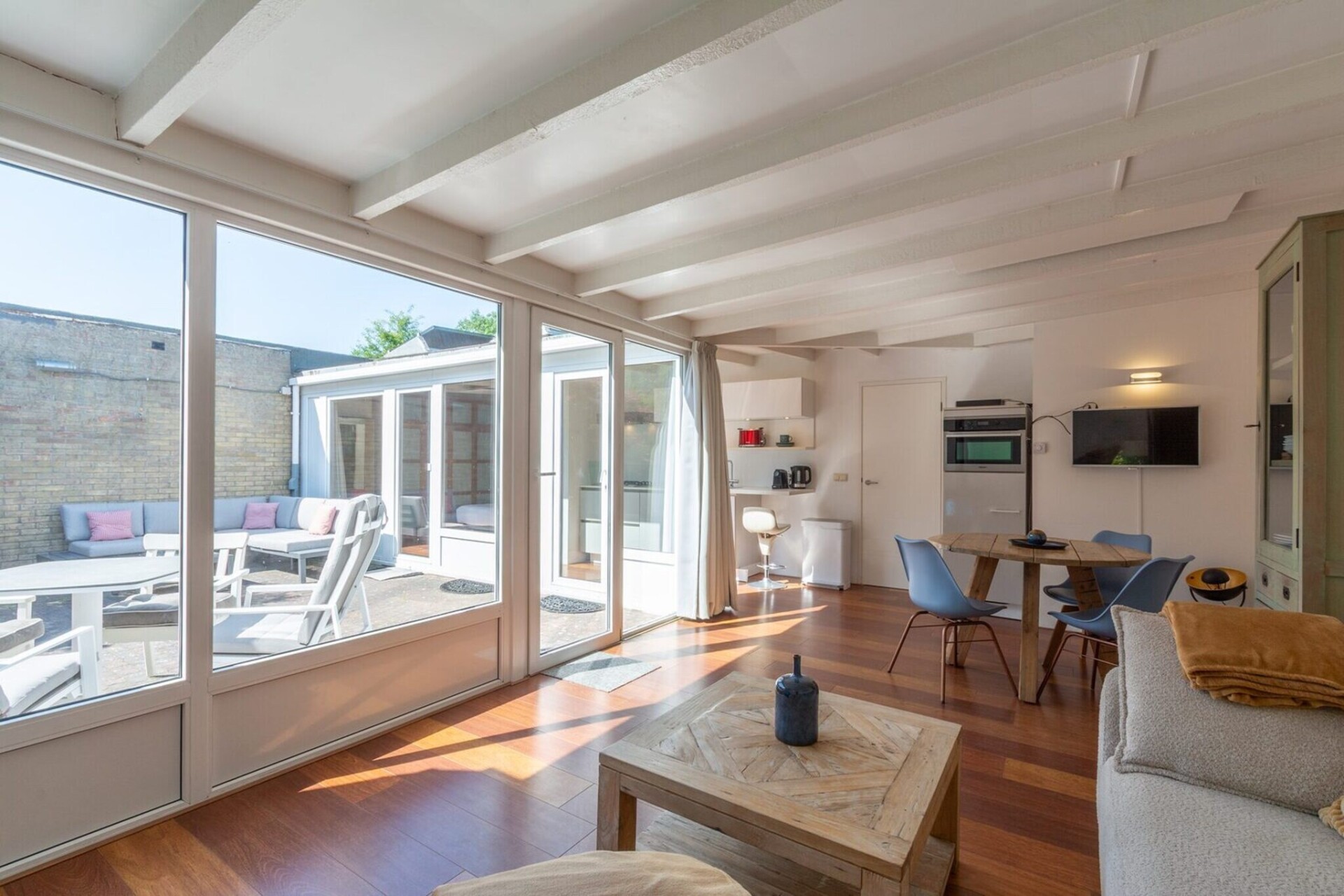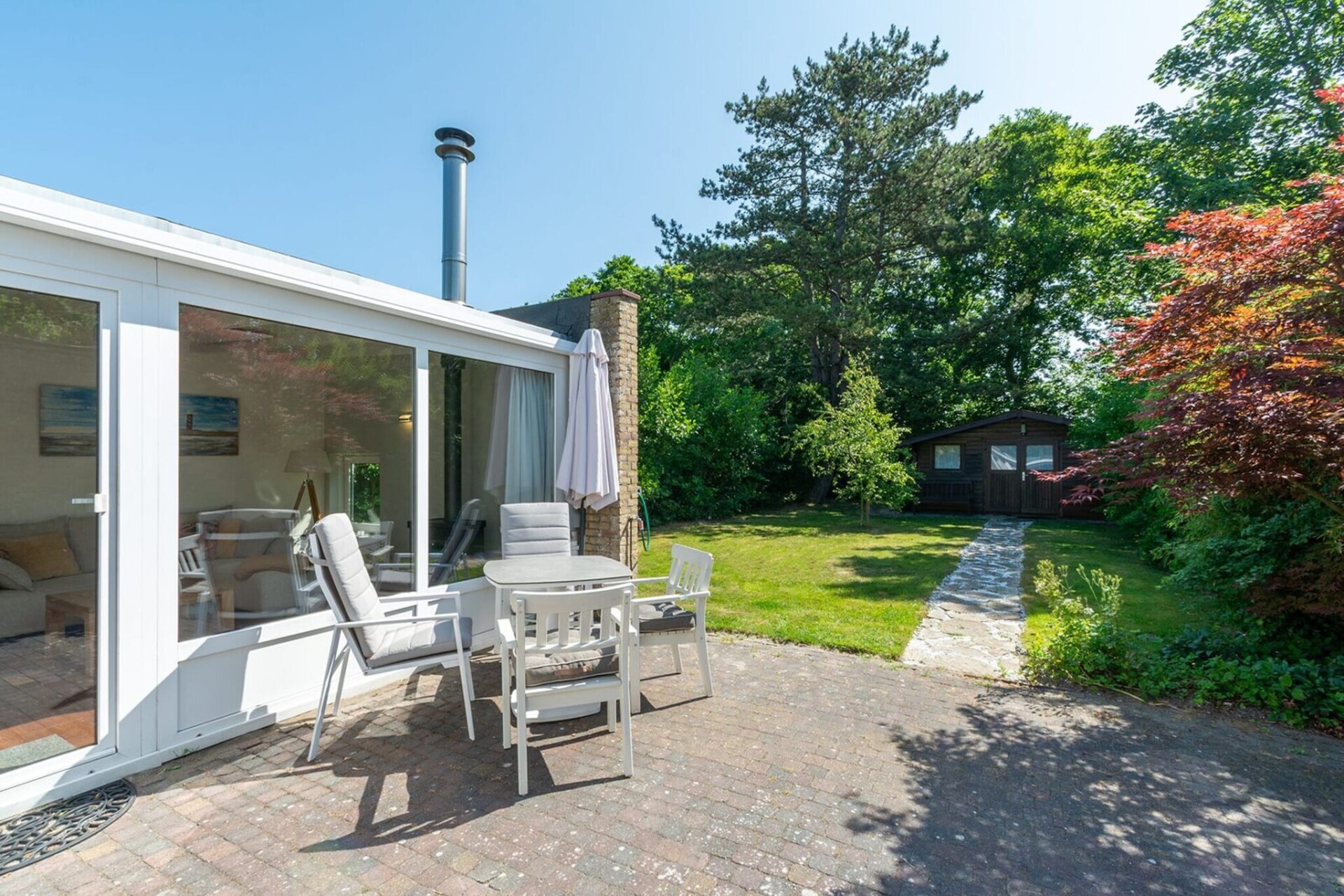 De grote tuin, met veel groen, heeft een heerlijk terras met een leuke houten tuinset. Achter in de tuin staat een schuur waar u uw fietsen kunt stallen. Wilt u uw hond meenemen? U kunt hier max. 2 honden welkom zijn!