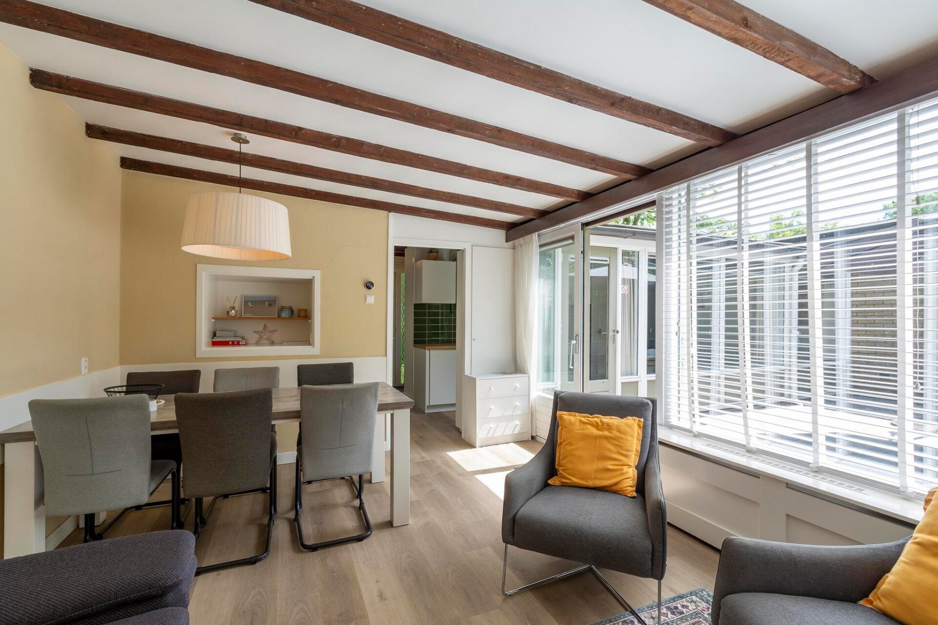 De vakantiebungalow Duinland 197 voor 6 personen is een leuk vakantiehuis voor een vakantie vlakbij de zee en het strand van Sint Maartenszee. In de groene deels omheinde tuin met beschut terras en veel privacy heb je alle ruimte om met 6 personen te genieten. De ruime, lichte woonkamer is voorzien van een gezellige zit- en eethoek. De keuken is volledig uitgerust.