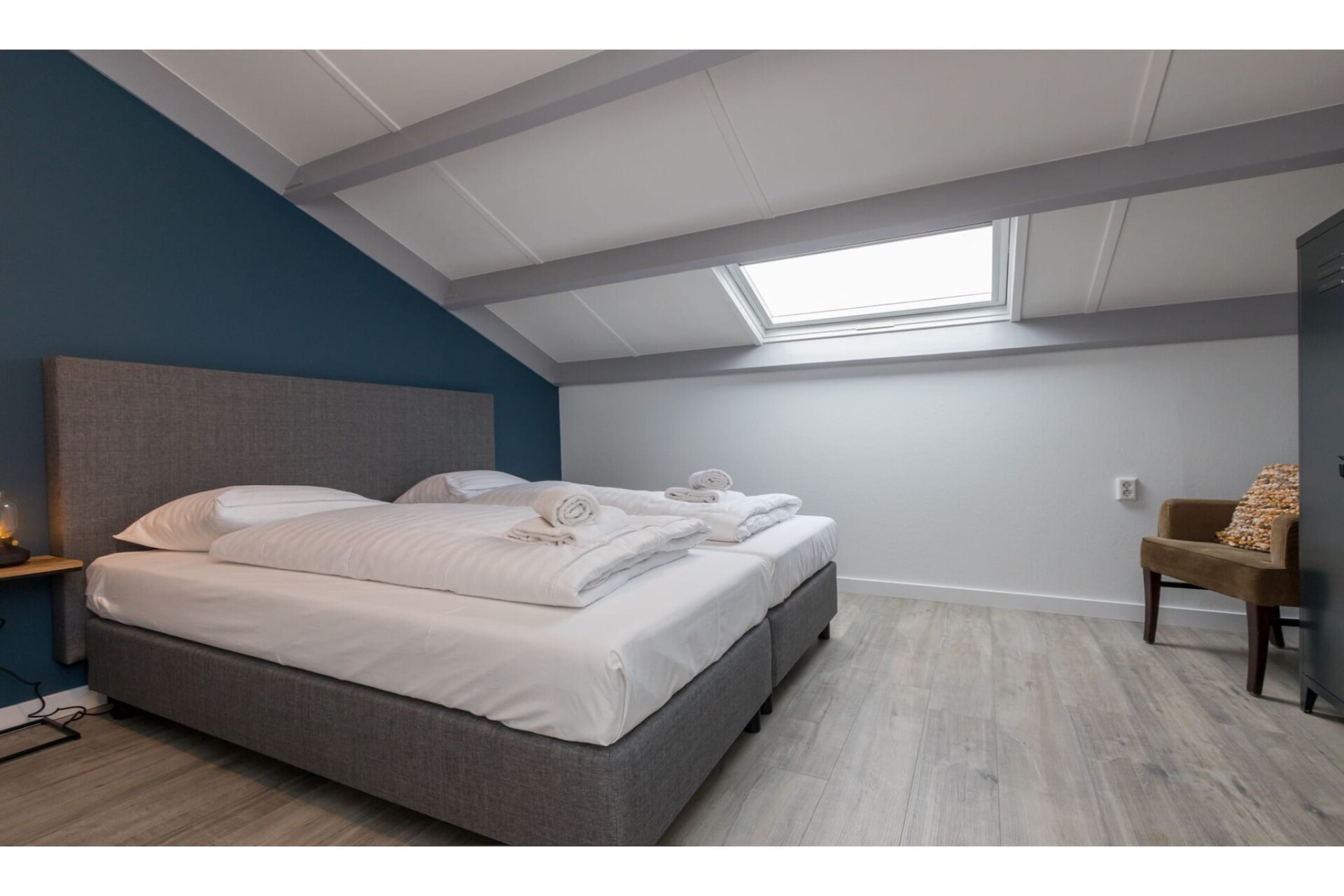 Eén slaapkamer, de slaapkamer op de eerste verdieping, beschikt over een tweepersoons boxspring (160 x 200 cm). In de andere twee slaapkamers boven staan twee losse boxsprings (80 x 200), deze kunnen tegen of los van elkaar geplaatst worden. Dit vakantie appartement is mede door de goede indeling van de slaapkamers niet alleen geschikt voor koppels en gezinnen maar zeker ook voor 6 volwassen. De vakantiewoning heeft één parkeerplaats beschikbaar en er is ook een berging aanwezig waar gebruik van kan worden gemaakt.