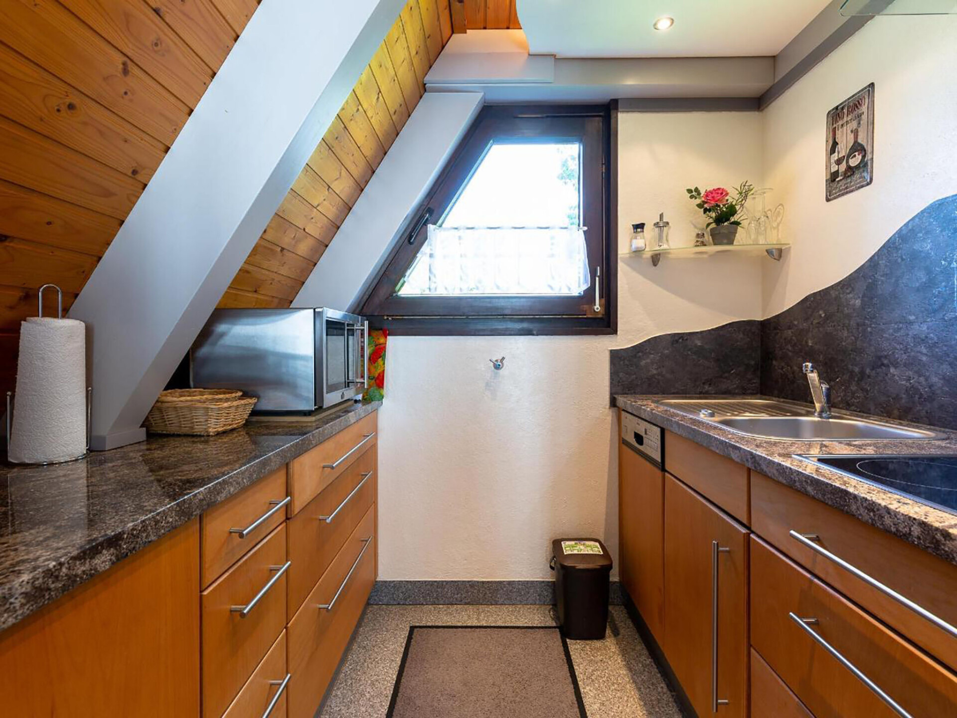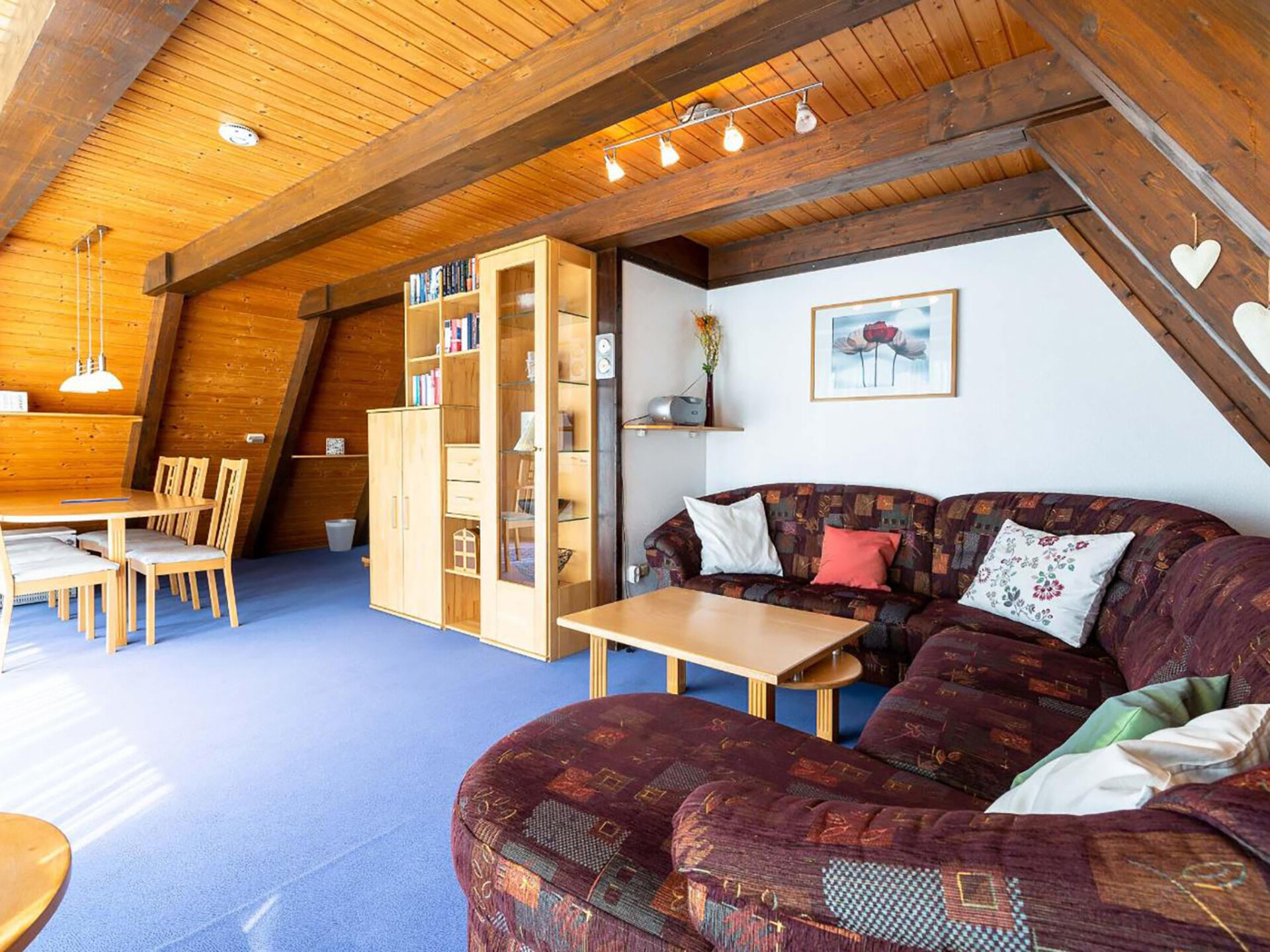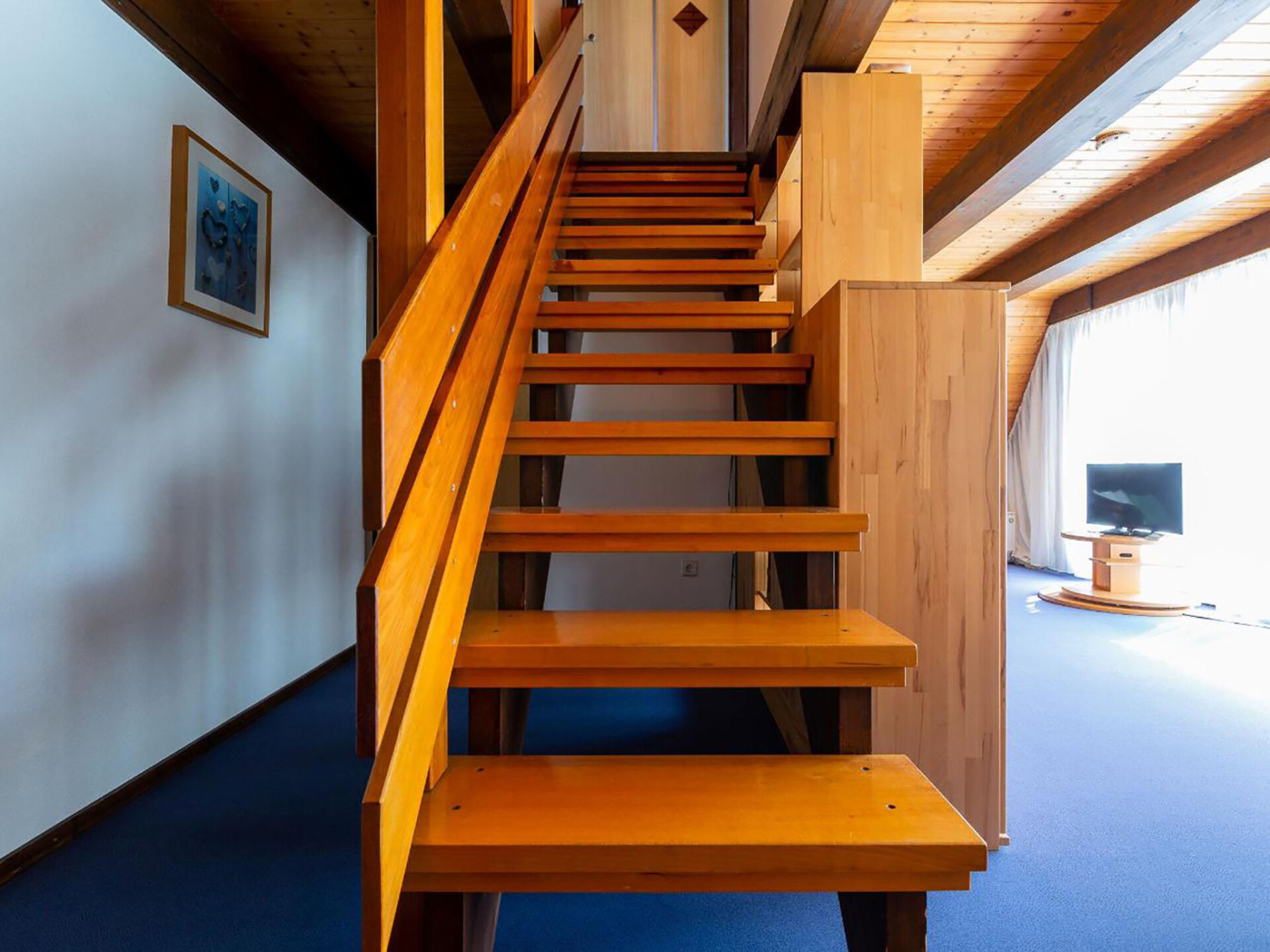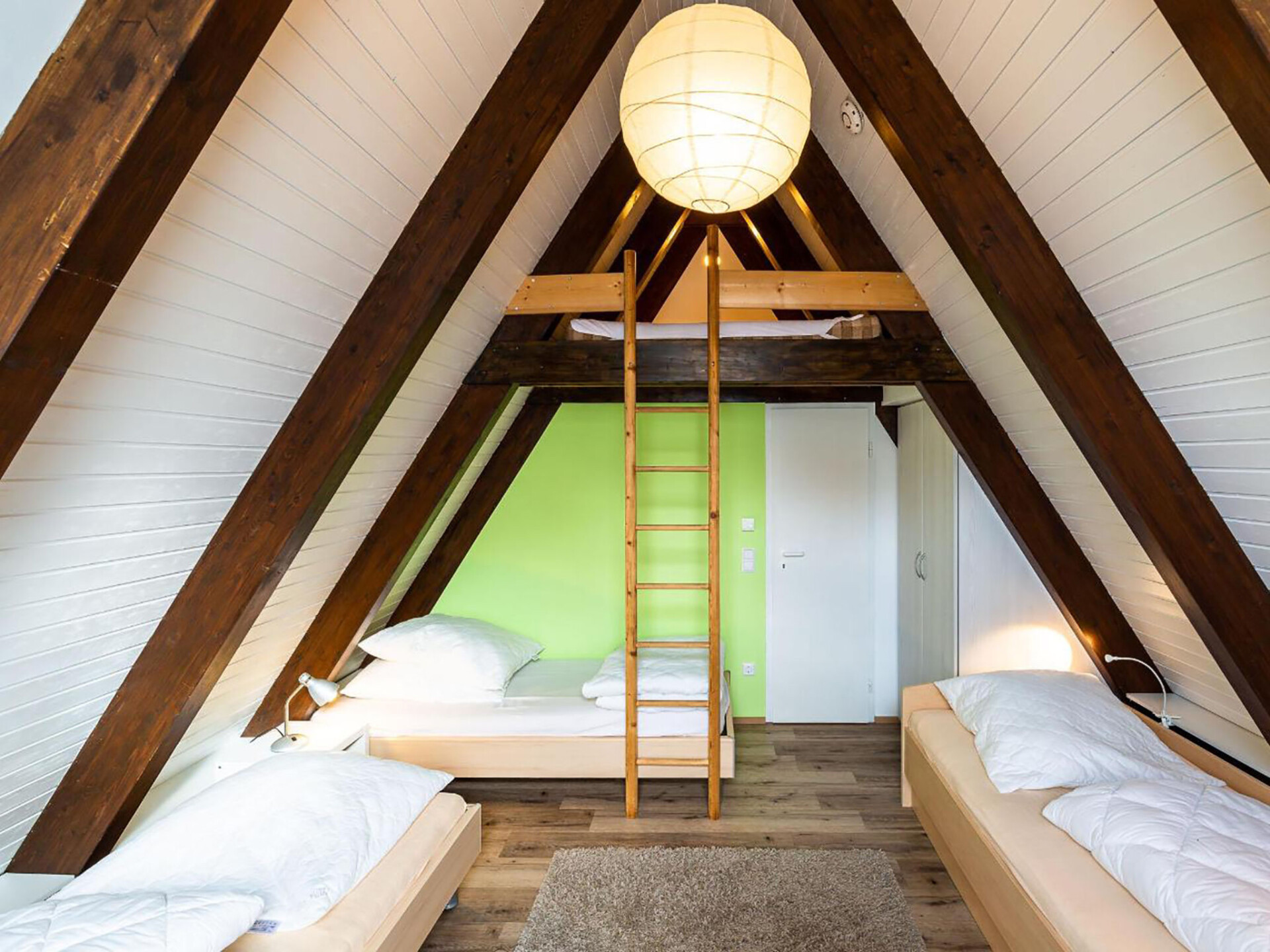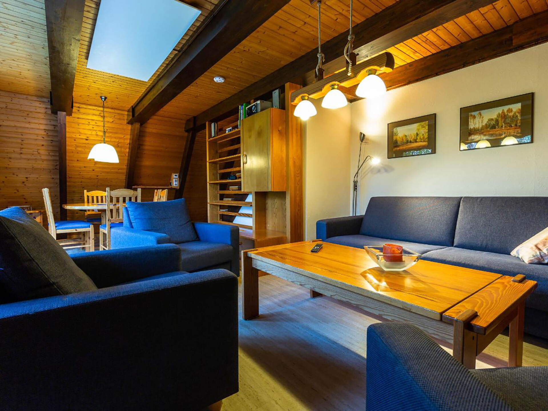 Huis 3-kamers 70 m2 op 2 verdiepingen. Afgeschuinde daken, eenvoudig en met veel hout ingericht: woon-/eetkamer met Sat-TV en radio. Uitgang naar de tuin, naar het terras. Met afgeschuinde daken, open keuken (4-pits kookplaat, elektrische koffiemachine). Douche/WC. Zolderverdieping: 1 kamer met afgeschuinde daken met 3 bedden. 1 2-pers. kamer met afgeschuinde daken. Elektrische verwarming. Terras. Terrasmeubelen, bergruimte. Ter beschikking: Internet (Internet (WiFi), gratis). Parkeerplaats op 500 m. Rookvrij huis. Maximaal 1 klein huisdier/hond toegestaan. Sommige keukens zijn voorzien van een bakoven. Houten huis met aflopend dak tot aan de grond (A-huis).