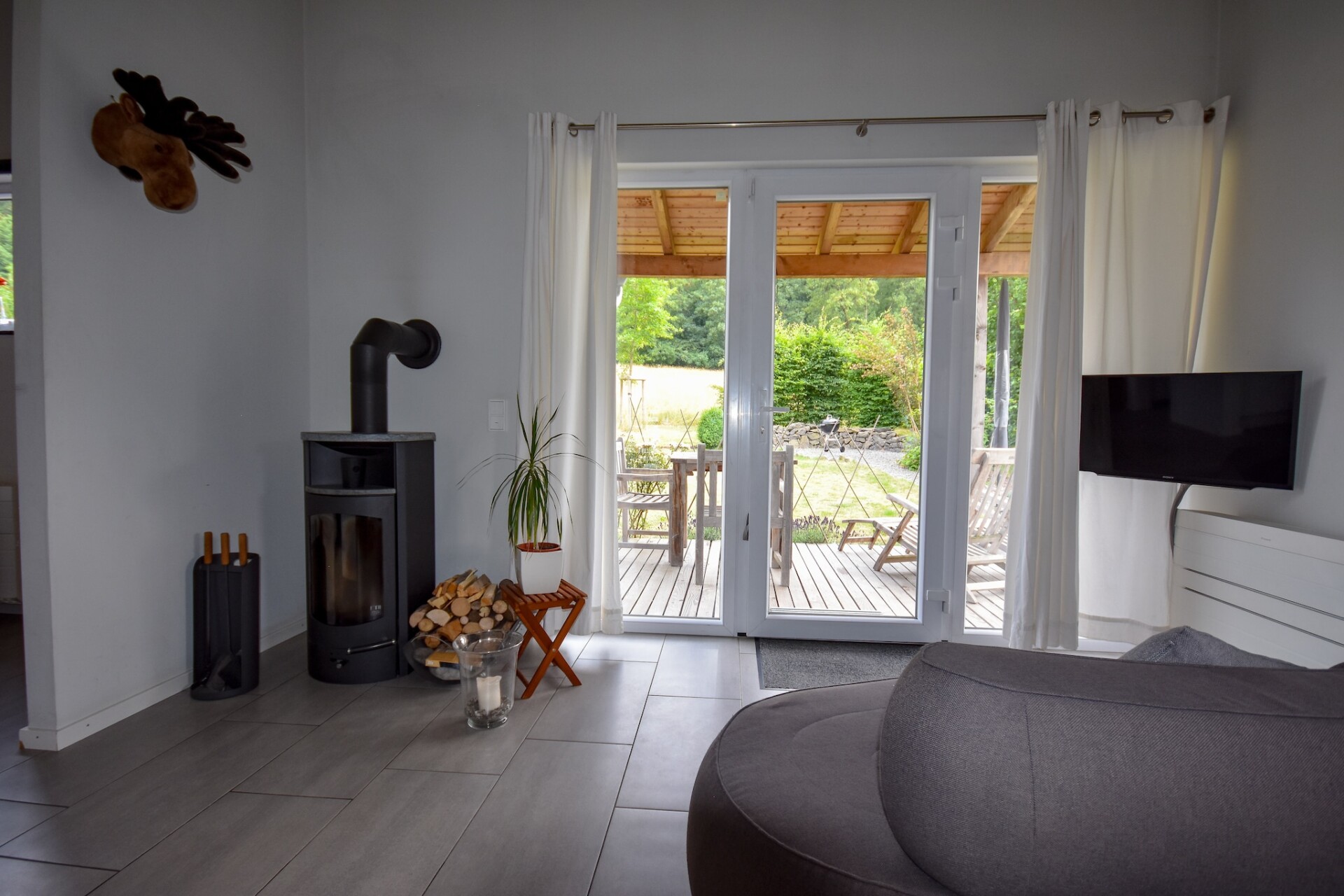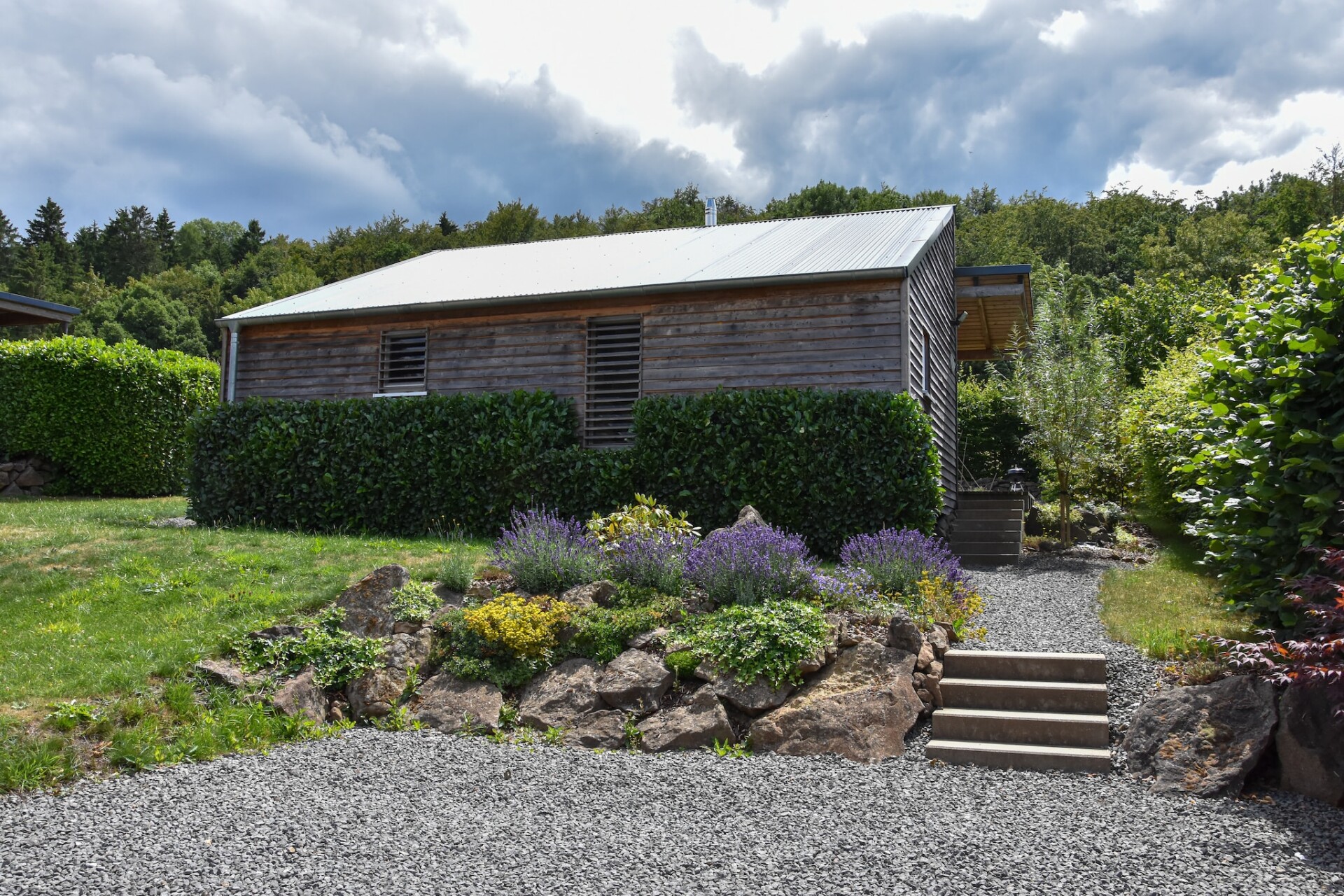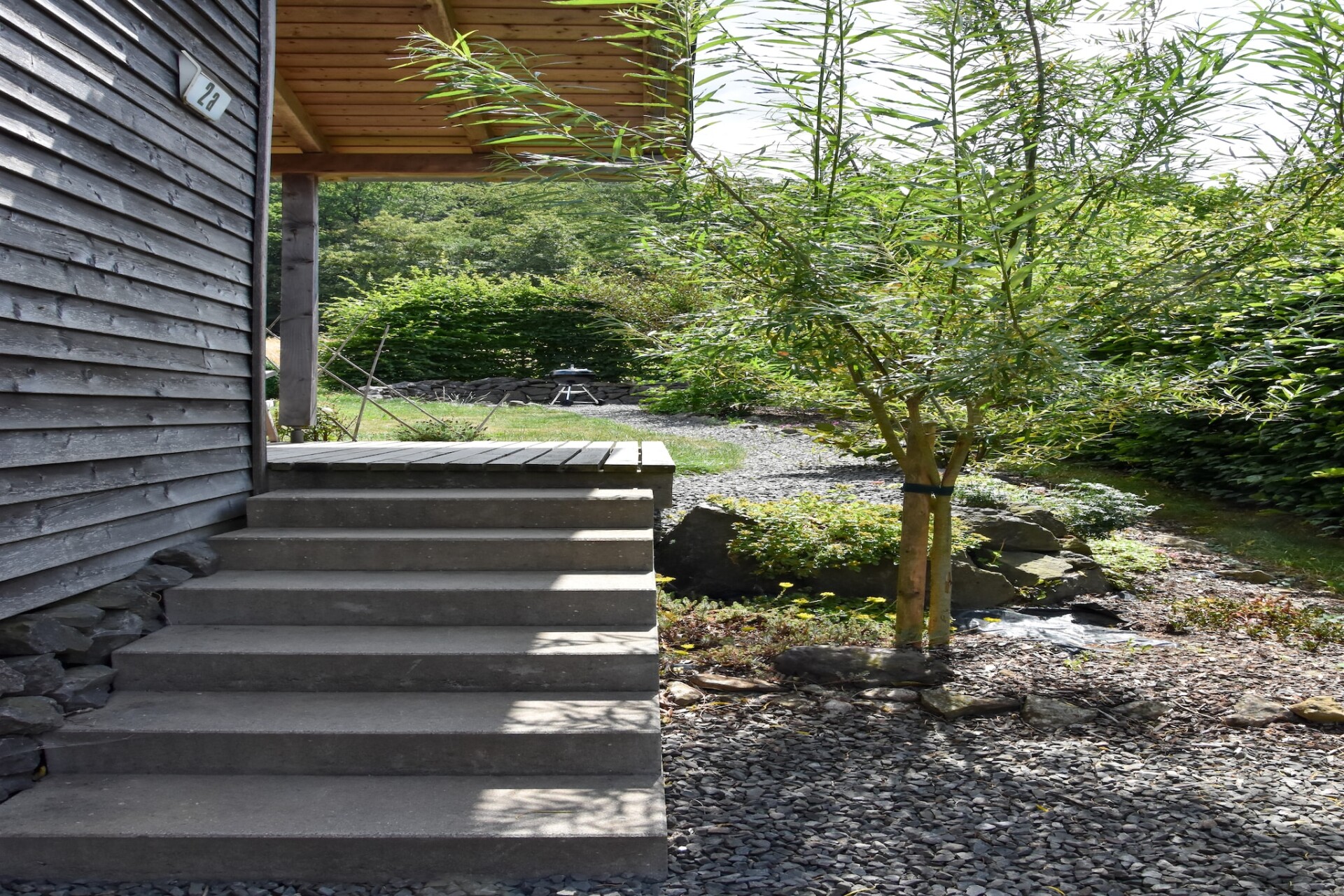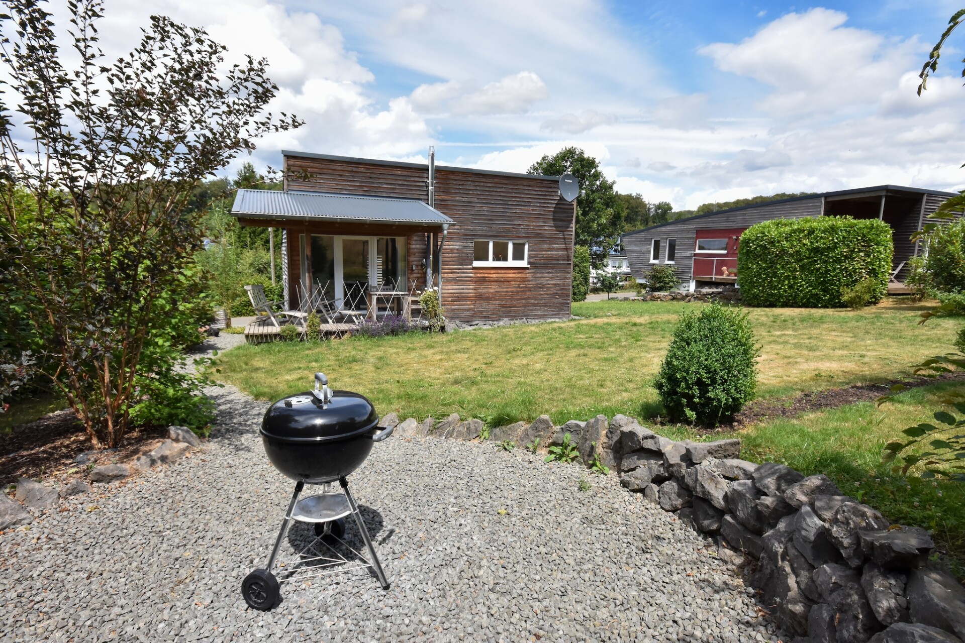 Het vakantiehuis is gebouwd in 2016 en is een ca. 45 m² groot en trendy tweekamerhuis met een overdekt zonneterras met houten vlonders en een mooie inrichting. Het huis is gelegen in een absoluut rustige boslocatie. U kunt heerlijk ontbijten op het terras met directe toegang tot de tuin. Tuinmeubelen en een barbecue zijn beschikbaar.