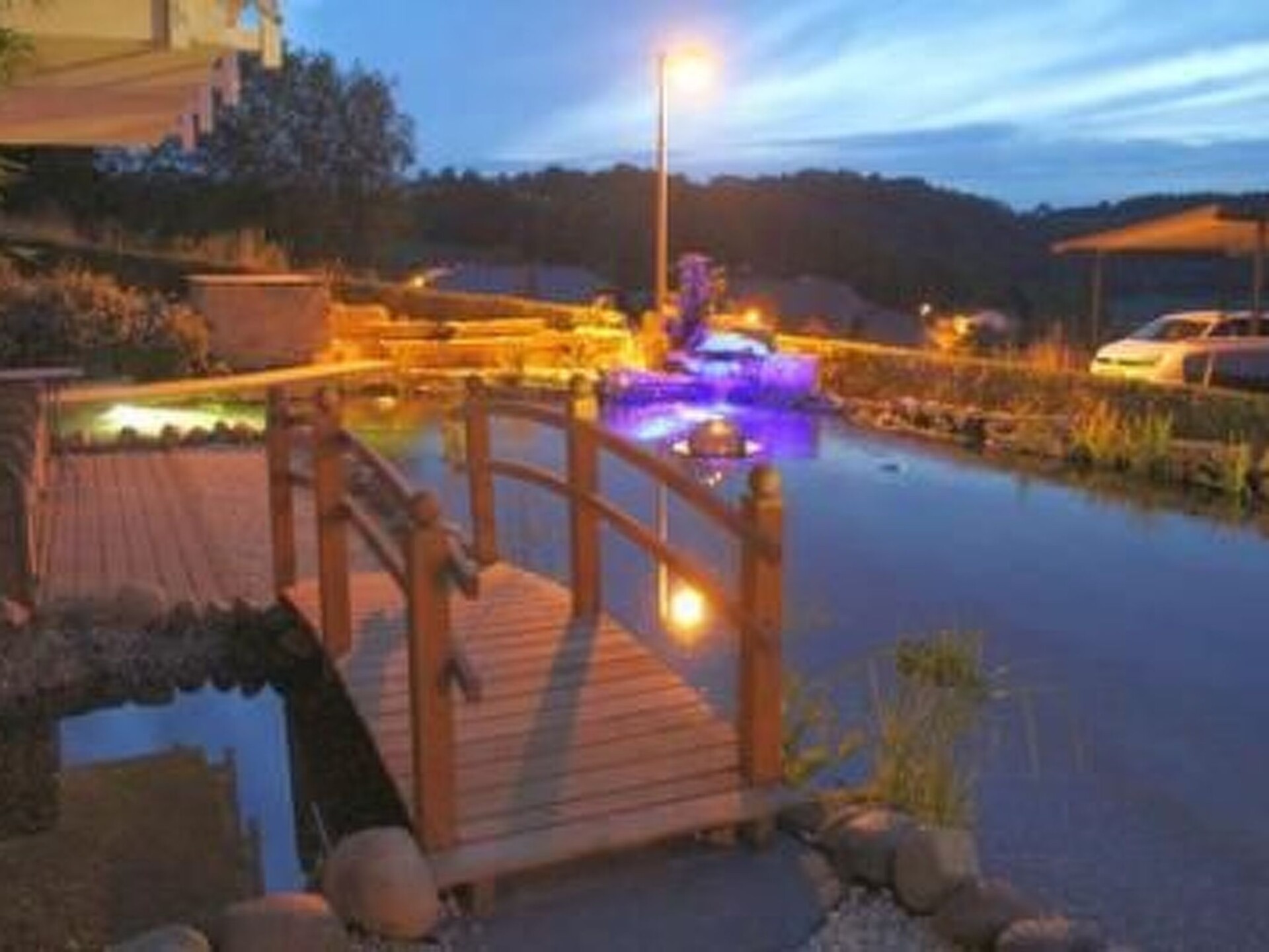Maximaal 3 huisdieren/honden toegestaan. Maarberg Resort, Maaridyll holiday flat Stylish holiday flat in the "Maarberg Resort" apartment complex in Schalkenmehren am See, with steam shower! New: 2-person jacuzzi (whirlpool) in the sauna room can be used free of chargeThe "Maarberg Resort" apartment complex has been completely renovated and refurbished. It is beautifully situated on the outskirts of Schalkenmehren am See, on a hillside at the edge of the forest. The lake and village centre are only about 400m away. You can enjoy the beautiful view of the lake from many of the holiday flats in the Maarberg Resort. Each flat has WLAN/WIFI internet access (free of charge). House with new sauna (also for private use) New: 2-person Jacuzzi (whirlpool) in the sauna room can be used free of charge! The beautiful outdoor facilities with ornamental ponds and waterfalls will delight you! Holiday flat Maaridyll in the Maarberg ResortElegant, completely newly furnished holiday flat for 2 to 6 people. Approx. 54 m² living space, balcony facing the lake and lower ornamental pond with a wonderful panoramic view of the lake, the two ornamental ponds, the waterfalls, streams and the ornamental gravel area.the Maaridyll holiday flat is on the ground floor (no stairs). In the beautiful living room you will find a new sofa set with bed function and a large 127 cm HD/3D TV. Large selection of TV and radio stations in many languages from 4 different satellites. There is also a 3D Blueray player and DVD player. There is also a music system with radio, CD etc. There is free internet access with WIFI (Wlan). The bright and friendly furnished flat conveys a natural flair with lots of wood and stone. In addition, the electric fireplace and an elegant ceiling fan create a special, cosy atmosphere. So you get a special holiday atmosphere even on cold and wet days.it is a non-smoking flat (smokers please use the balcony or outdoor area)The new fitted kitchen has a 4 plate cooker (ceramic hob) and oven, dishwasher, fridge with freezer compartment, microwave, 2 coffee machines (filter and pad machine, Bosch-Tassimo). Toaster, kettle etc. Pots and pans as well as cutlery and crockery for the maximum possible number of people are of course available. A cot and high chair can be provided free of charge and the dining area is suitable for up to 6 people. The holiday flat has 2 separate bedrooms with high-quality box-spring beds (180 cm x 200 cm and 140 cm x 200 cm). So nothing stands in the way of a good night's sleep. There are also full-length mirrors in the bedrooms and a new double sofa bed in the living room as an additional sleeping option. The bathroom has a modern steam shower and the bright bathroom has a modern steam shower. Pamper yourself with light therapy and many other functions. The steam shower is equipped with a rain shower, side massage jets, foot massage and LED's. The blue illuminated floor LED's throughout the bathroom provide a great atmosphere. A large, illuminated mirror, a hotel hairdryer and bathroom scales are available. Modern, chrome heating with towel warmer. The flat has a lovely balcony with lounge chairs and a cocktail or coffee table. New: Large sliding windows to the balcony New: Hanging chair facing the lake on the balcony If you would like to eat really well on the balcony, you will find another dining table as a folding table ready to take away on each floor. The flat has central heating and of course a separate entrance. In the house: entrance hall with reception. You will find the new sauna in the basement of the "Maarberg Resort". You can also use the new sauna on your own (lockable). New: 2-person Jacuzzi (whirlpool) in the sauna room can be used free of charge! Also in the basement a room with washing machine, tumble dryer, iron and ironing board. In the reception hall you will find hiking maps, postcards and free information material on the many excursion destinations and leisure activities in the region. There is also a drinks fridge in the reception hall with drinks to take away on a trust basis. Large aquarium in the entrance area / reception. The outdoor area will inspire you! Two beautifully and elaborately designed ornamental ponds with koi and other fish, 2 waterfalls, 2 streams and a well-kept ornamental gravel area are part of the complex. The outdoor facilities are romantically illuminated in the evening. There are also turtles in the ponds. Sit comfortably with a coffee or a cocktail on the balcony or terrace and watch the fish and turtles. Or gaze down into the valley over the lake and find plenty of parking spaces and a bicycle storage area outside. There is a barbecue area with a view of the lake behind the house. There are good restaurants, cafés and a shopping centre in the village. In the district town of Daun, 5 km away, you will also find many shopping facilities and supermarkets.Brief descriptionOther : Non-smoking houseShort description 1Number of kitchens : 1Bedroom 1Other bedroom furnishings : Box spring bed 1.80 m wideBedroom 2Other bedroom furnishings : Box spring bed 1.40 m wideKitchen 1Other kitchen furnishings : 2 coffee machines, pad and filter, dishwasher, all newly furnishedSurroundingsLeisure facilities : Car hire, boat hire, bicycle hireSports facilities in the surrounding area : Fishing, football pitch, ice skating, golf course, hunting, canoeing, climbing, mountain biking, paragliding, bicycle tours, riding stables (guests), riding hall, riding arena / riding possibilities, tobogganing, rowing, skiing (cross-country), skiing (alpine), sports centre, squash, surfing, tennisSurroundings 1Location description : Description of the holiday resort, the holiday region and the surroundingsSchalkenmehren is a very beautiful and well-known tourist resort with approx. 600 inhabitants at an altitude of approx. 450 metres, situated directly on the Schalkenmehrener Maar (crater lake).in addition to the many water sports facilities, swimming, fishing, boatin