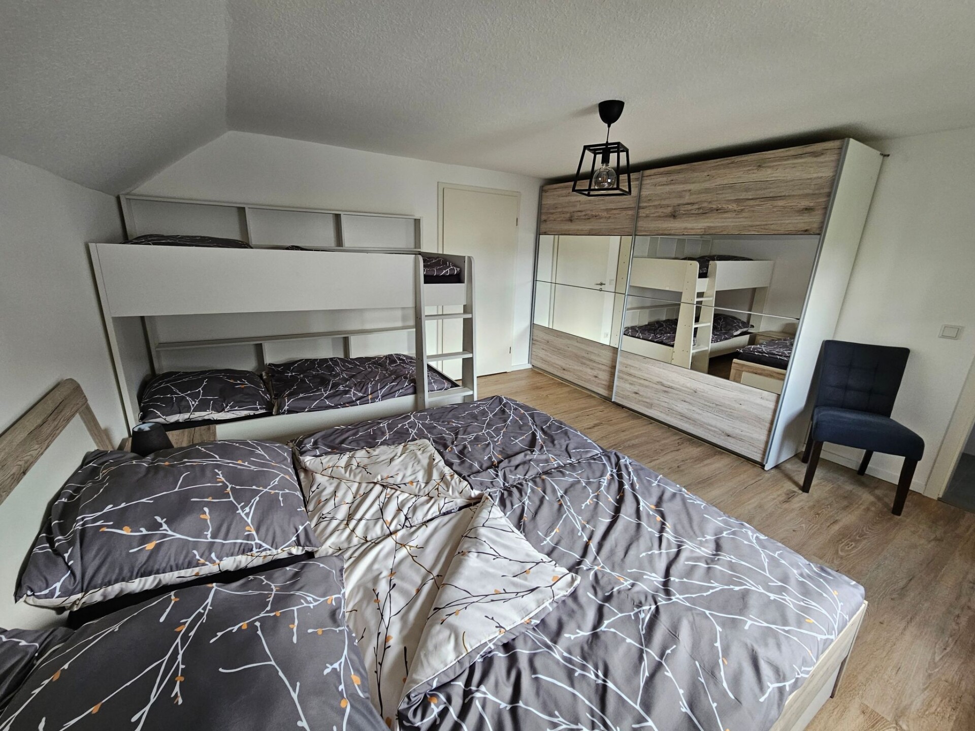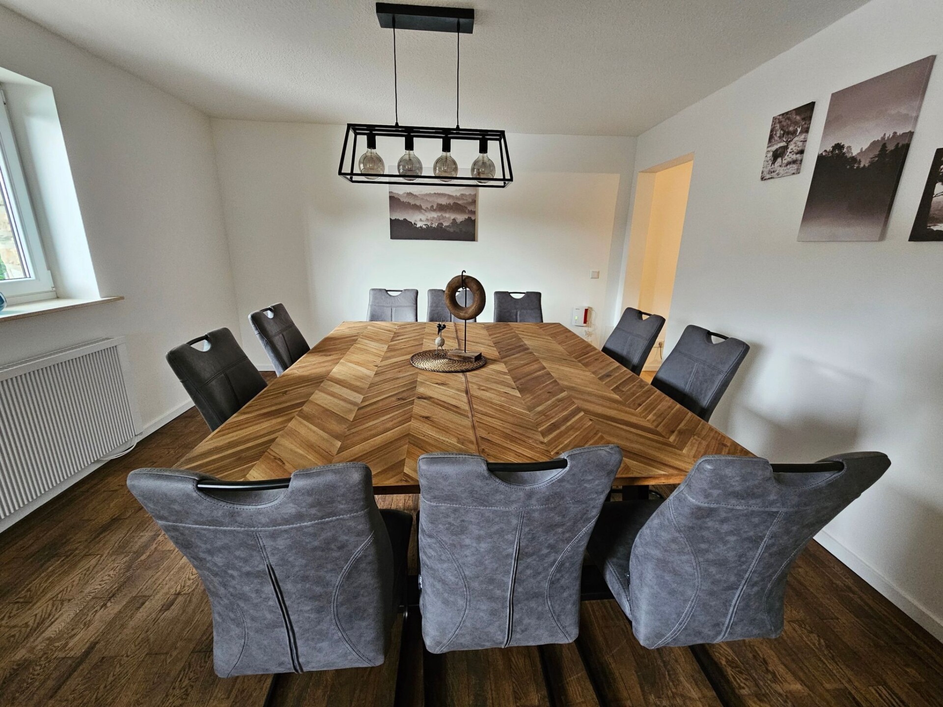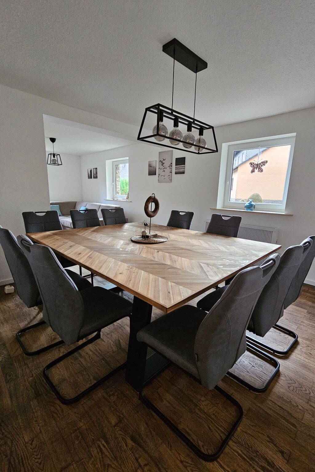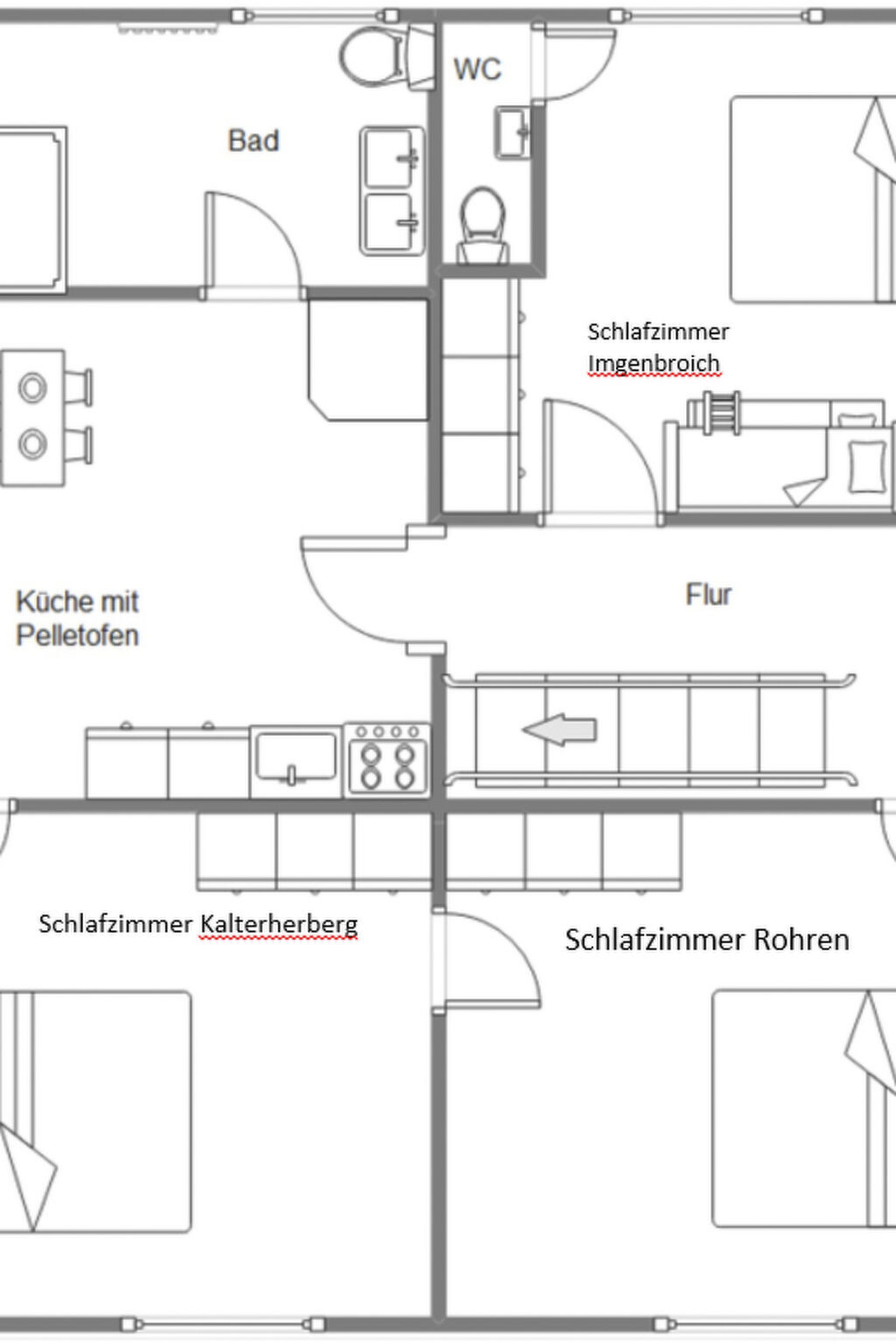 Experience unforgettable moments in our charming holiday home, idyllically situated in Höfen, in the heart of the Eifel National Park. Freshly renovated at the end of 2023 and beginning of 2024, you can expect tasteful and lovingly designed accommodation that offers the perfect retreat for nature enthusiasts and those seeking relaxation.The house has two floors with spacious rooms that can comfortably accommodate up to 10 people. There are a total of four separate bedrooms - three double rooms and one quadruple room - and a bathroom with shower and WC on each floor, as well as an additional WC next to the quadruple room. Two fully equipped kitchens on both floors offer all the necessary household appliances as well as sufficient cutlery and china for 10 people. The living and dining area with a large table and ample seating as well as a cosy wood-burning stove invite you to spend time together.A beautiful, large garden with a decked terrace offers plenty of space for outdoor relaxation. Here you can enjoy relaxing hours in nature. Free parking is available right next to the house, and for added convenience, two garages can be booked for an extra charge, ideal for guests who want to store their bikes safely.Our holiday home is located in the immediate vicinity of numerous hiking and cycling trails, making it the ideal starting point for exploring the Eifel National Park, the historic old town of Monschau, Lake Rursee and the High Fens. The nearest shopping facilities are in the neighbouring village of Imgenbroich. In Höfen itself and in the surrounding area you will find restaurants, a snack bar and a petrol station. For those interested in culture, the famous Monschau Christmas market is easy to reach by shuttle bus from a nearby bus stop.Enjoy the peaceful, natural surroundings of our holiday home and make your stay a special experience. Whether for relaxing days in nature or as a starting point for a variety of activities in the region - here you will find the ideal place for your group trips or family excursions. We look forward to welcoming you soon to our lovingly furnished holiday home in Höfen.Quiet timesIn the spirit of good neighbourliness, we ask you to respect the public quiet times such assuch as midday, night and Sunday rest. Also in the holiday home itselfshould also be kept quiet between 22:00 and 6:00 out of consideration.If you intend to bring your bicycles with you, we would ask you to book the lockable garage. It is not permitted to leave bicycles in the house.
